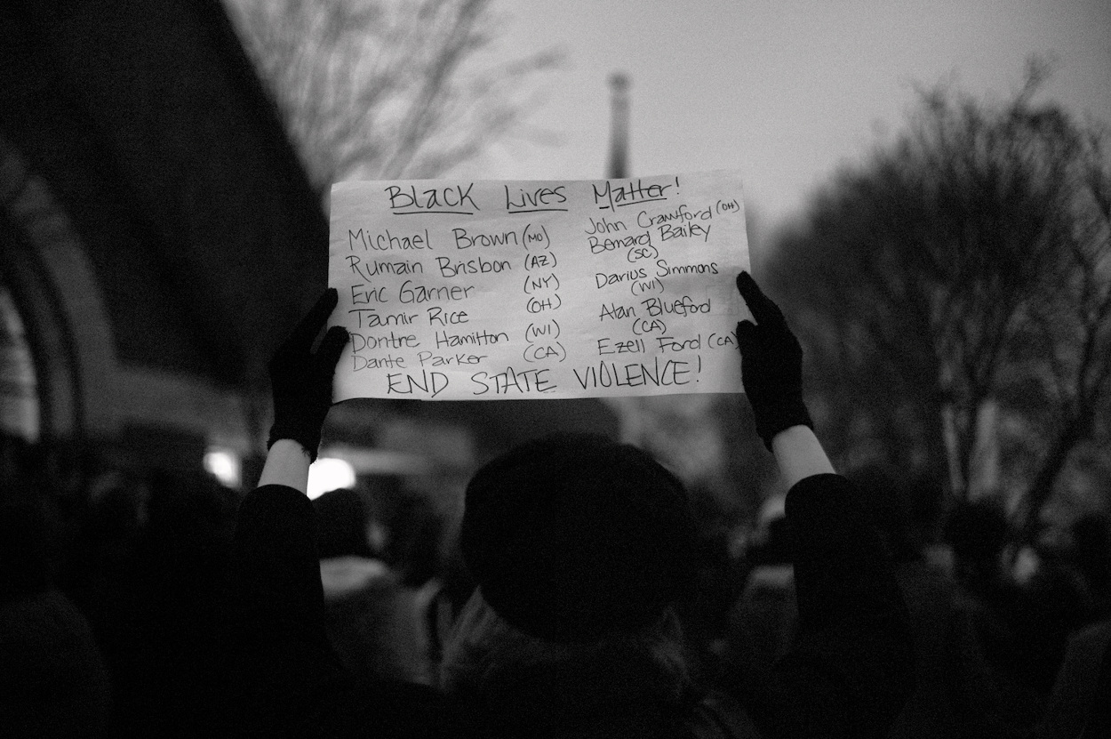 On November 24th 2014, a grand jury in Missouri decided not to indict Darren Wilson for killing unarmed Michael Brown. Just over a week later another white police officer, Daniel Pantaleo, was not charged for the death of Eric Garner.