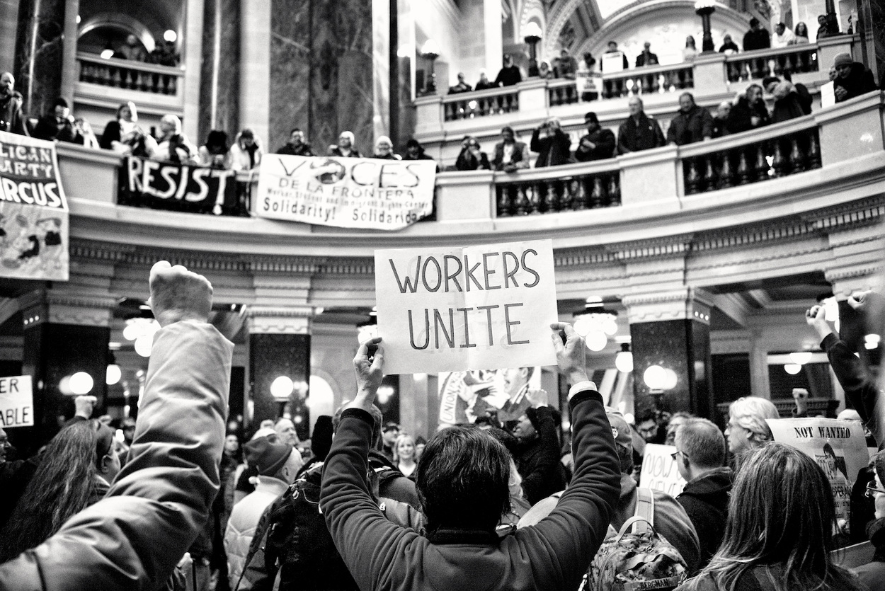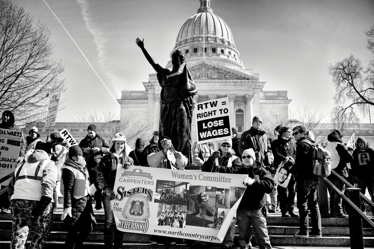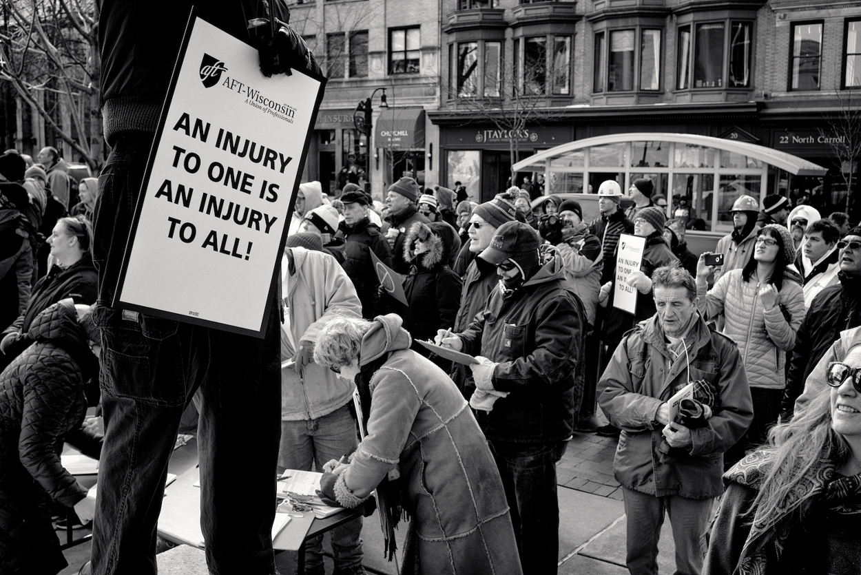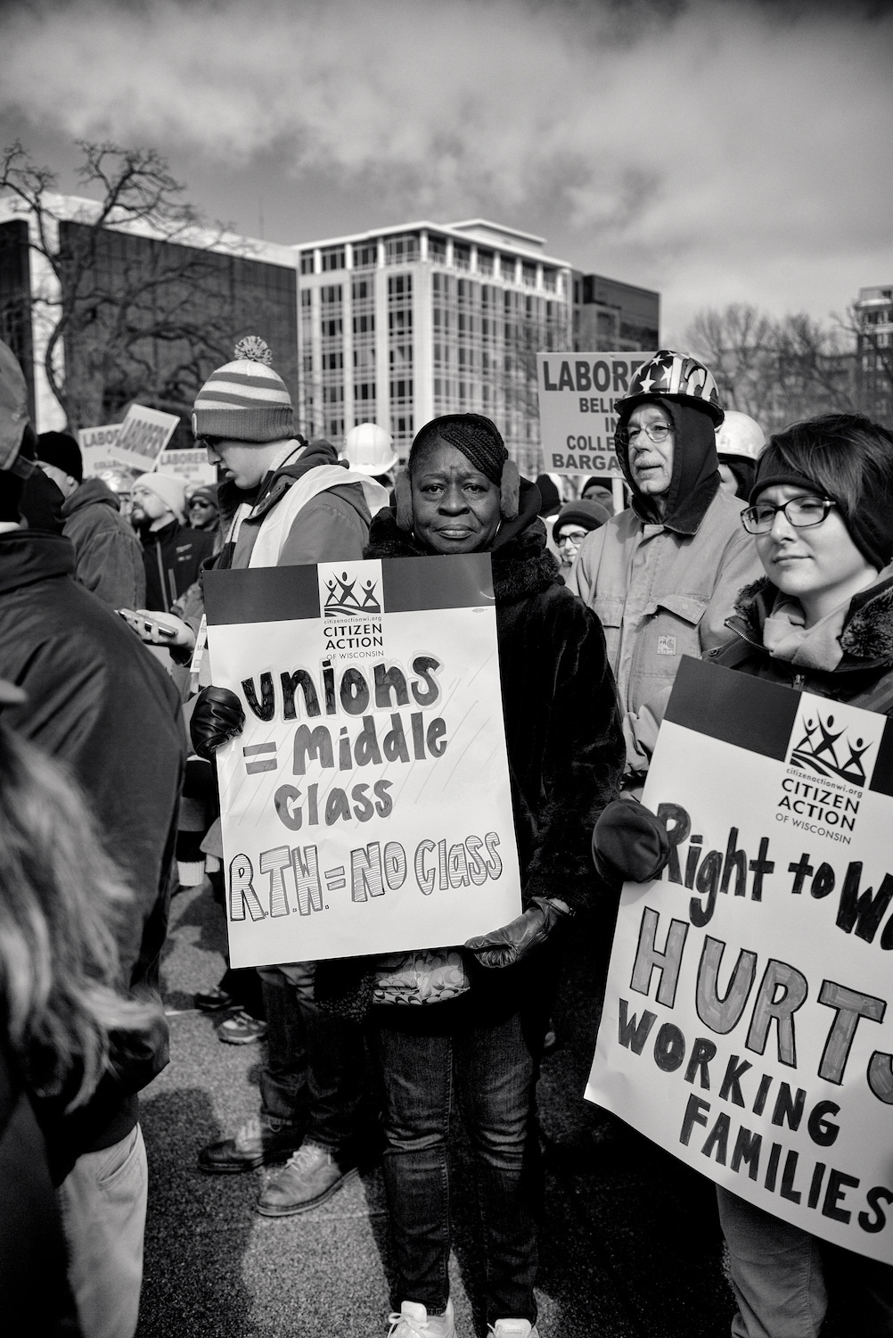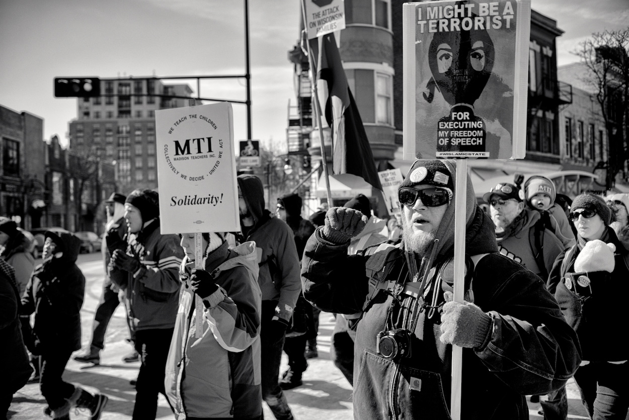 As the republican controlled Wisconsin State Legislature prepares to ram through a vote to make Wisconsin a “Right to Work” state, thousands gathered once more at the Capital to let their voices be heard, despite being shut out of the hearings and the democratic process. S O L I D A R I T Y!!!