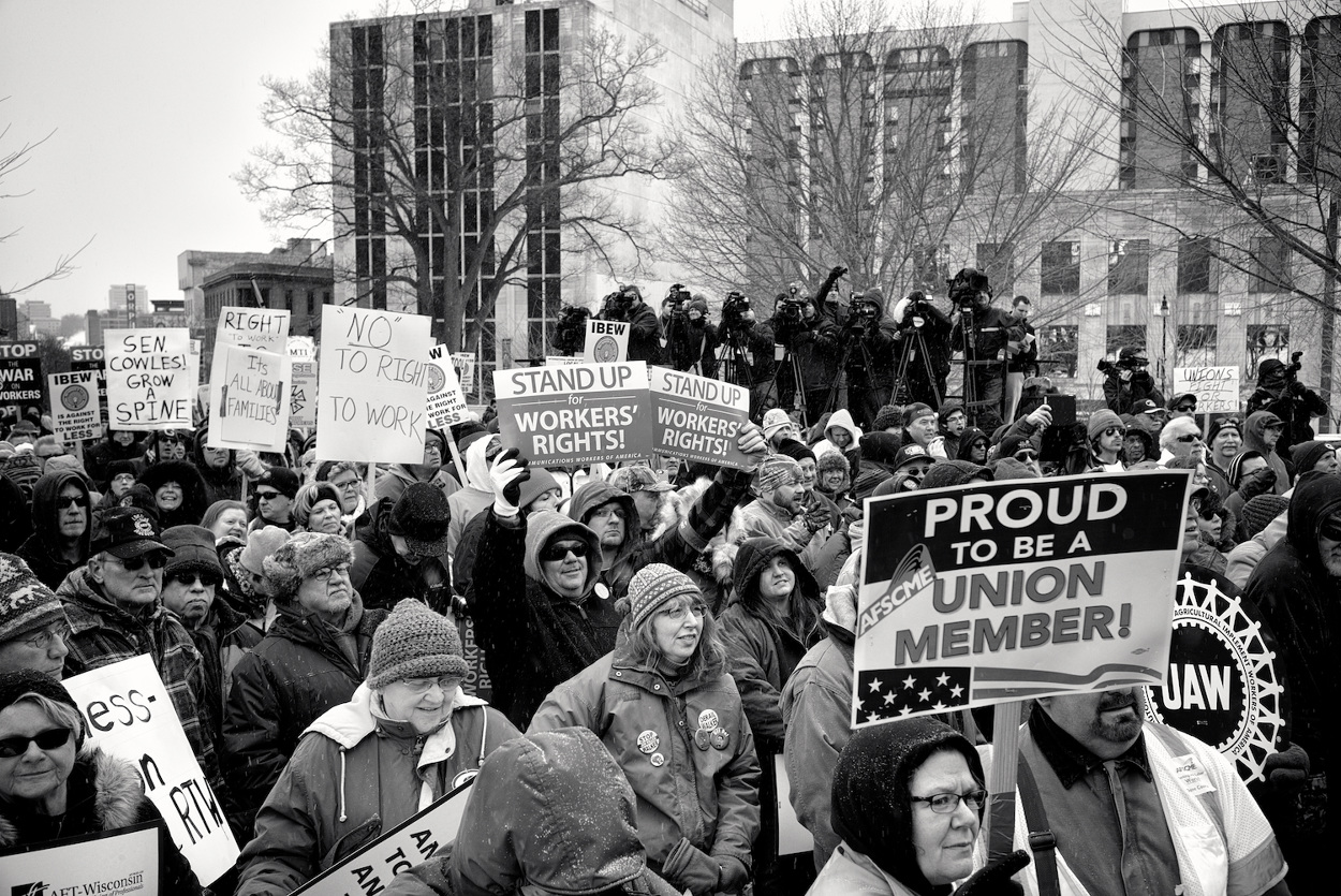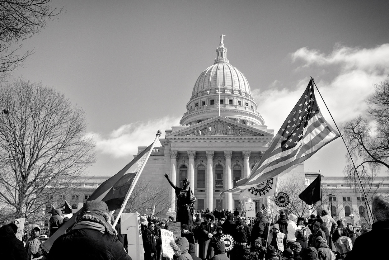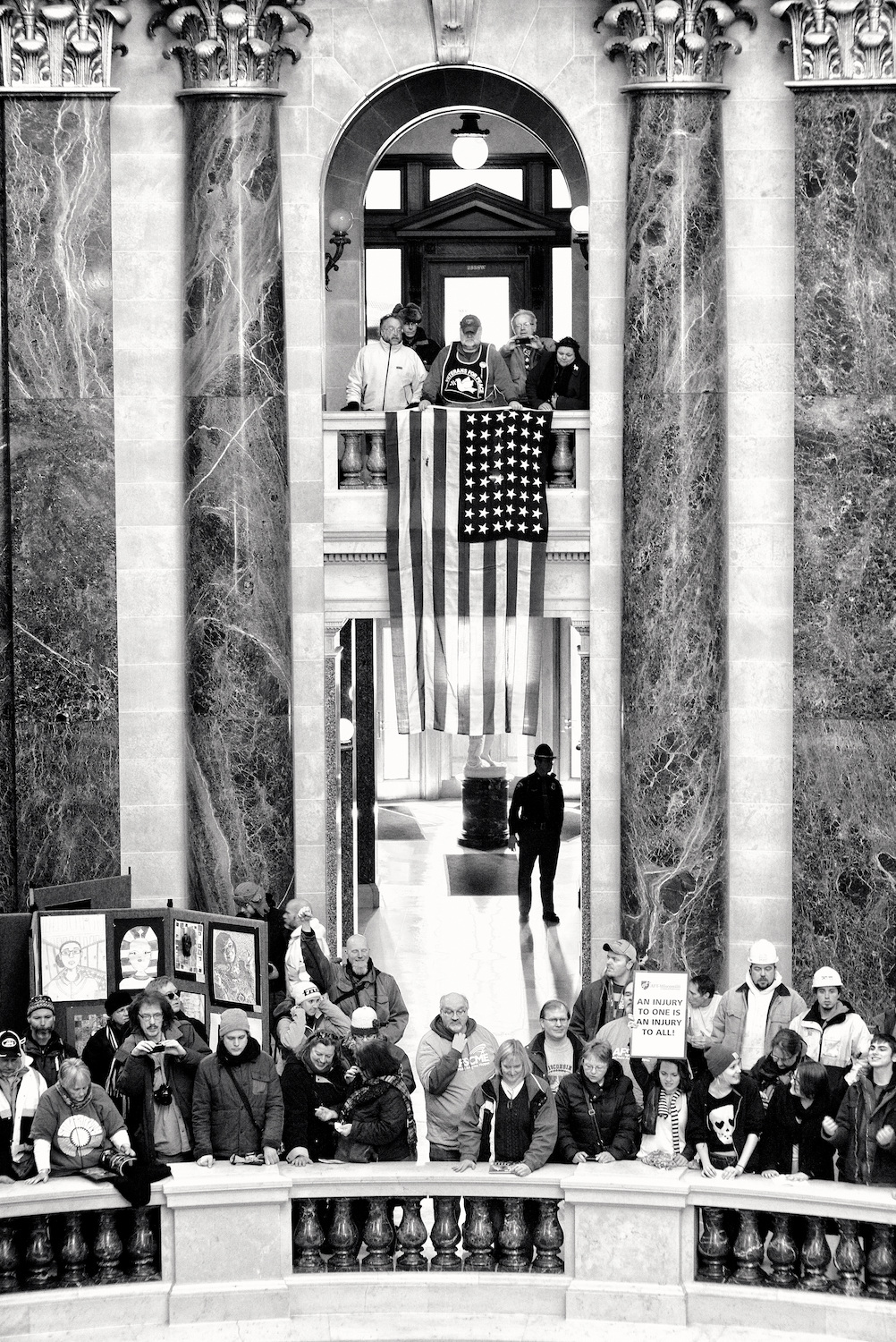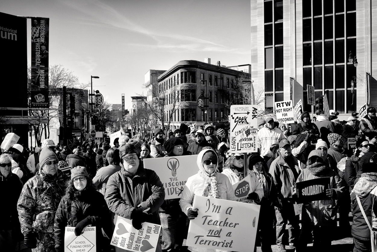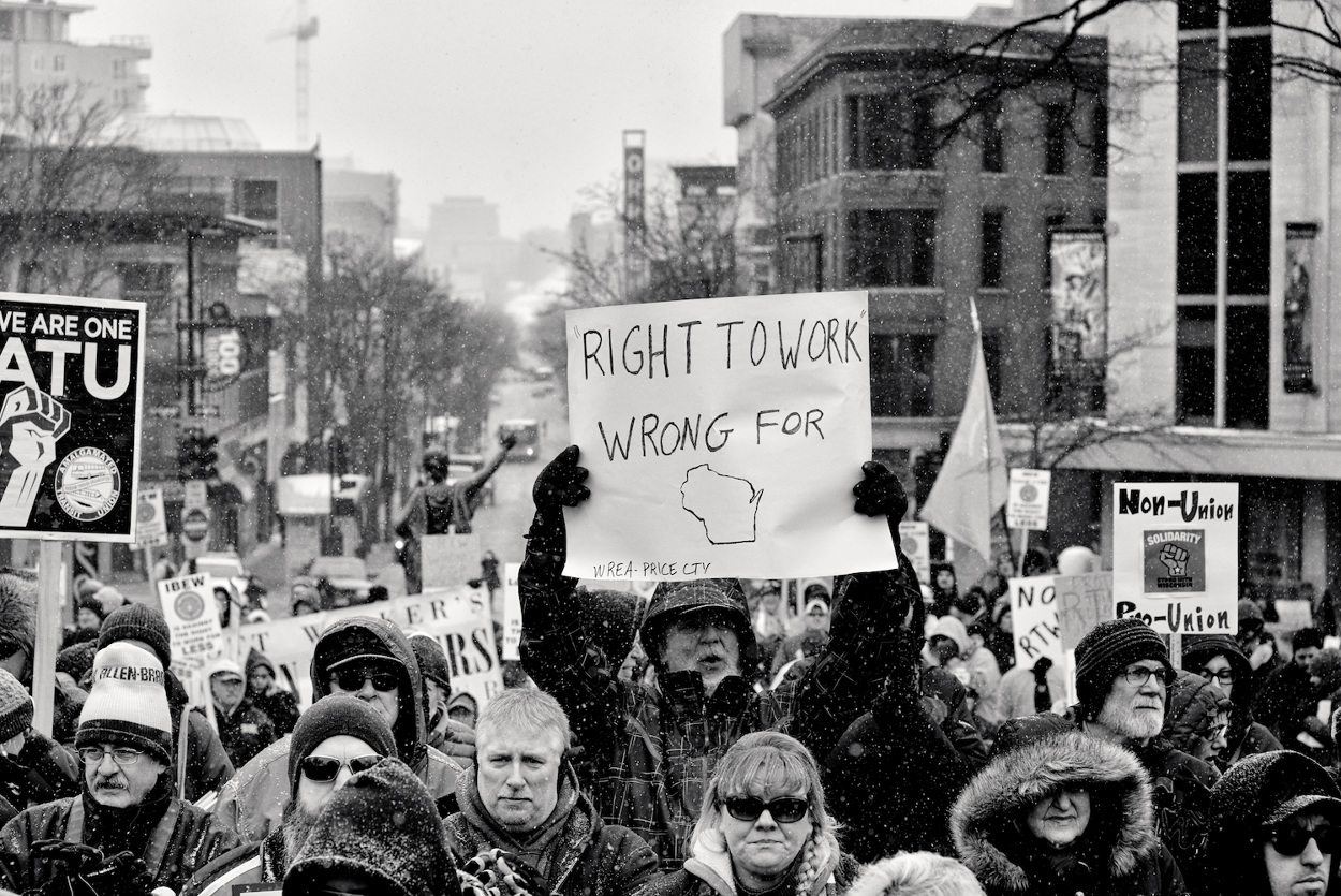 As the republican controlled Wisconsin State Legislature prepares to ram through a vote to make Wisconsin a “Right to Work” state, thousands gathered once more at the Capital to let their voices be heard, despite being shut out of the hearings and the democratic process. S O L I D A R I T Y!!!