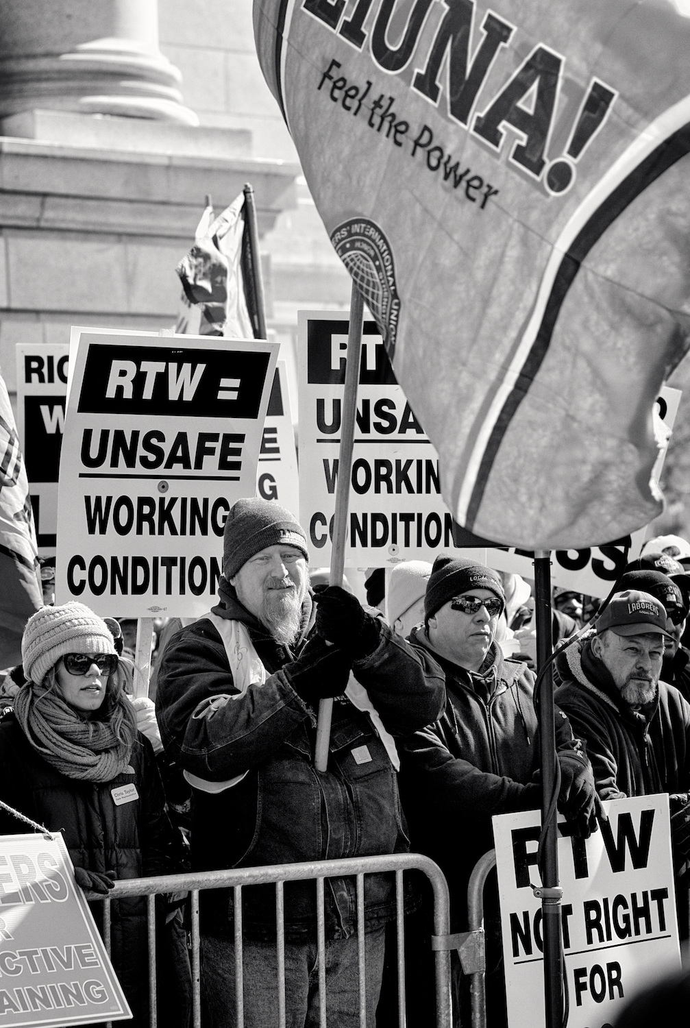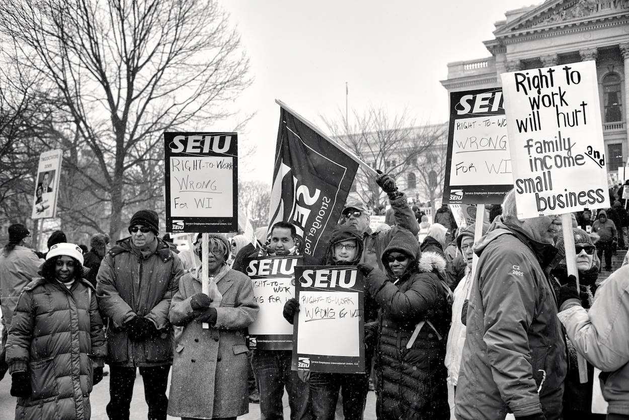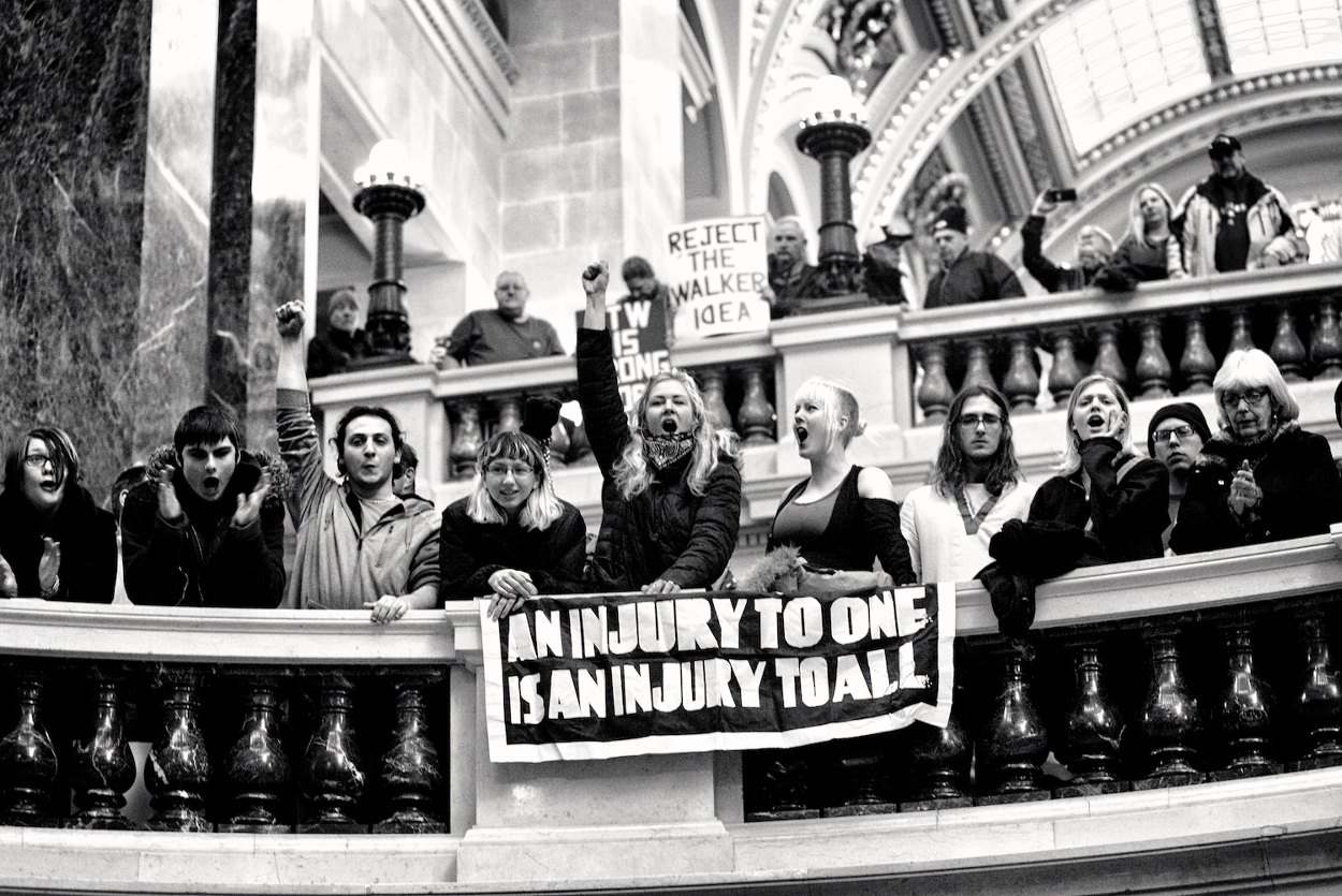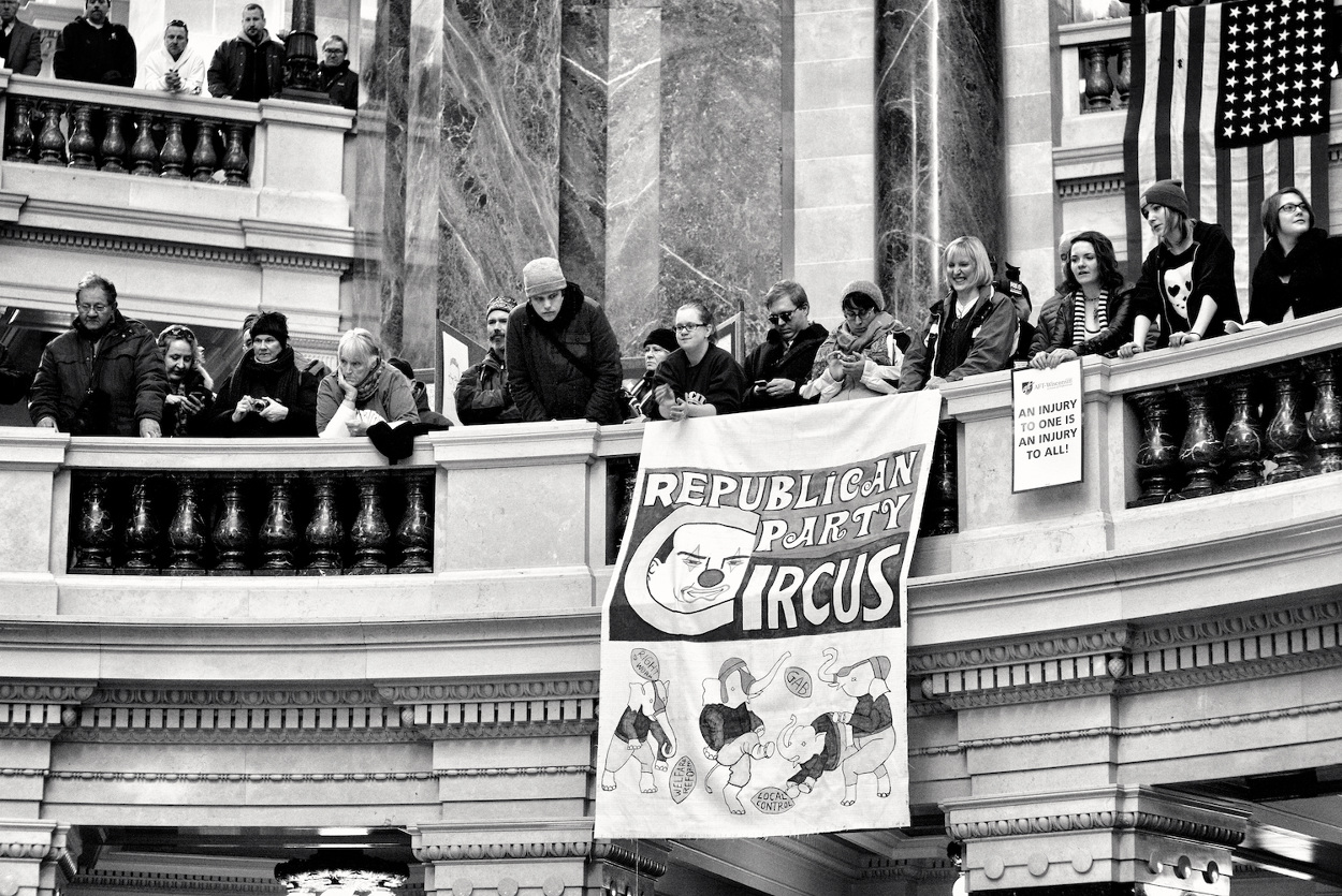 As the republican controlled Wisconsin State Legislature prepares to ram through a vote to make Wisconsin a “Right to Work” state, thousands gathered once more at the Capital to let their voices be heard, despite being shut out of the hearings and the democratic process. S O L I D A R I T Y!!!