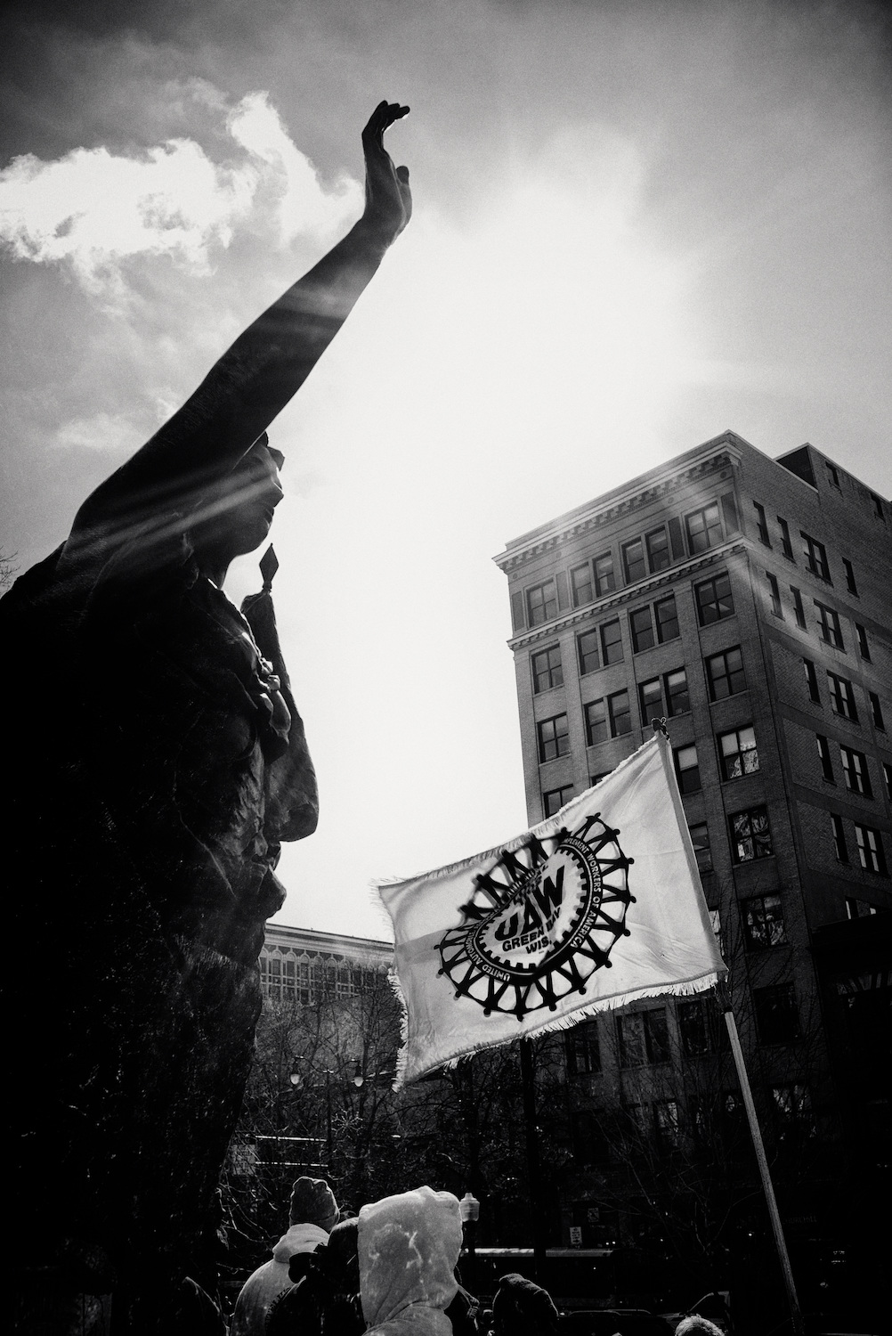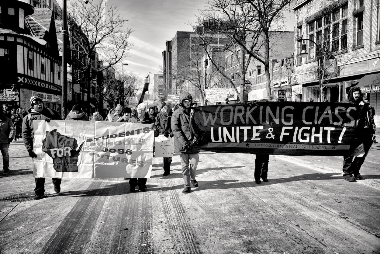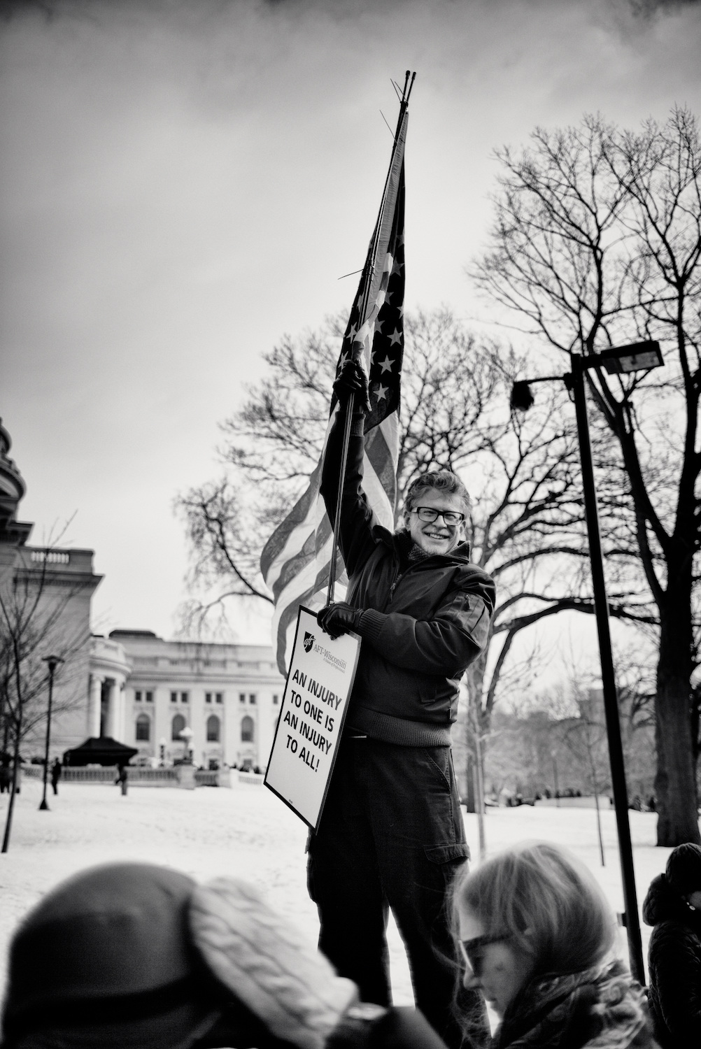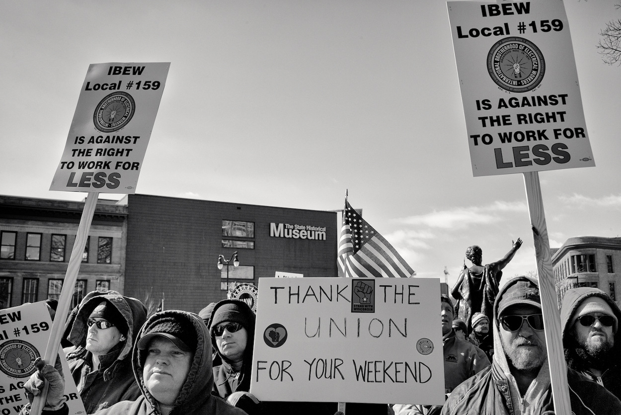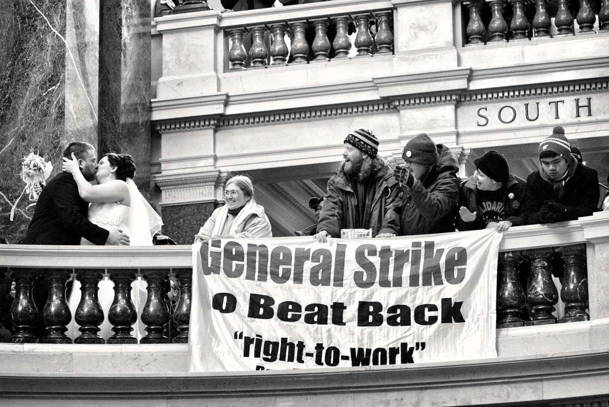 As the republican controlled Wisconsin State Legislature prepares to ram through a vote to make Wisconsin a “Right to Work” state, thousands gathered once more at the Capital to let their voices be heard, despite being shut out of the hearings and the democratic process. S O L I D A R I T Y!!!