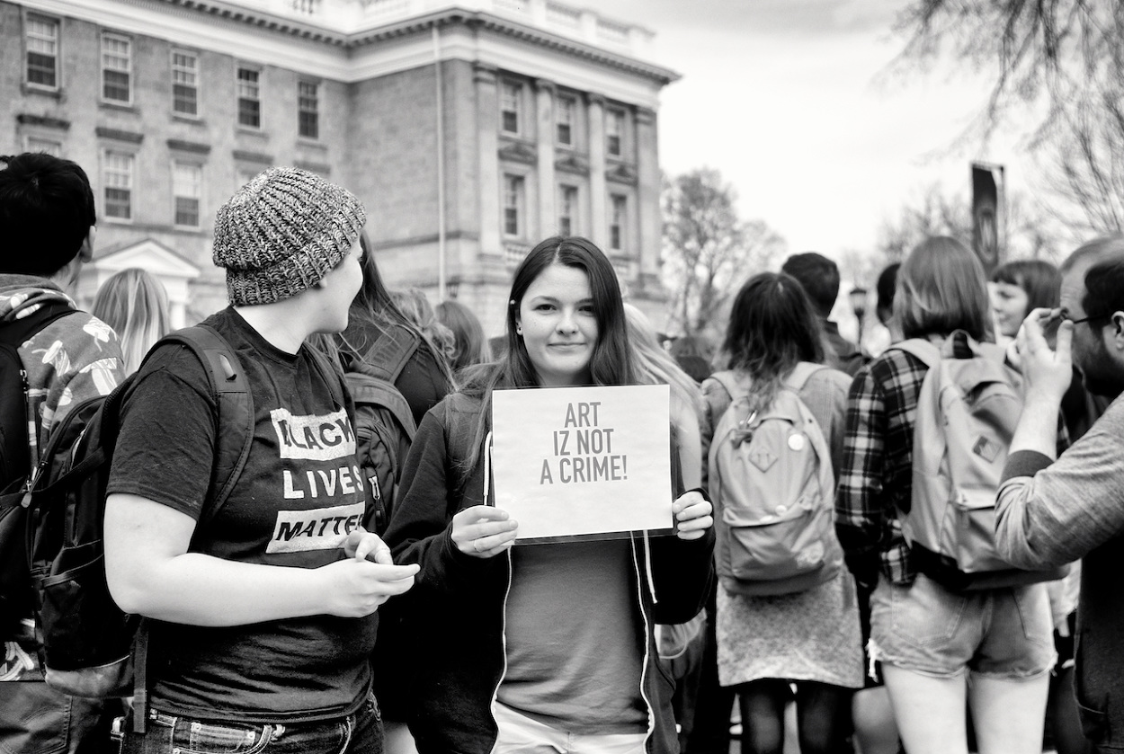 Images from a rally against racism on the University of Wisconsin Madison campus.
