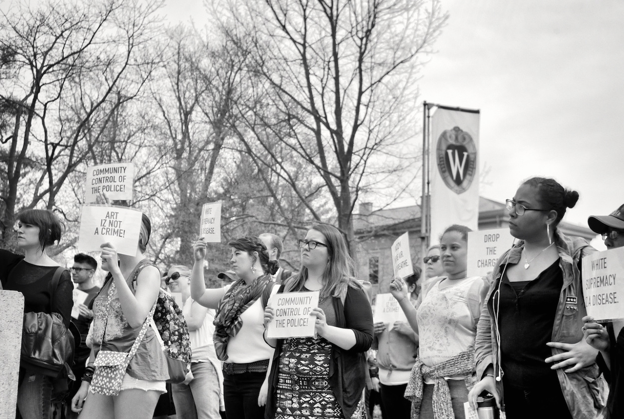 “At the same time King was taken out of his classroom by UWPD (11:30am), we will be walking out of our classrooms to stand in solidarity with him and to organize against the anti-Black racism that has plagued our campus historically and contemporarily. We will be delivering our demands to the Chancellor and UWPD and need student support. We have to let them know that there are consequences for perpetuating white supremacy.”