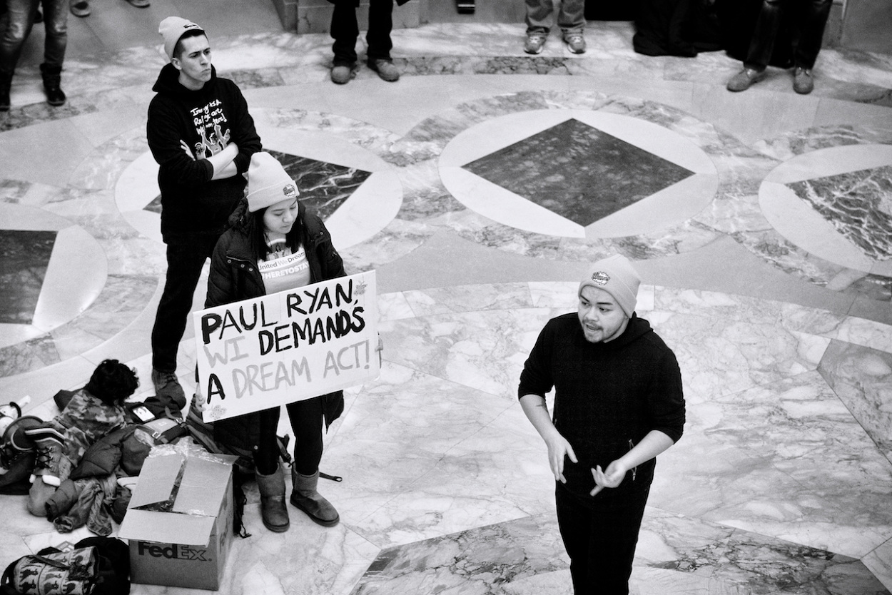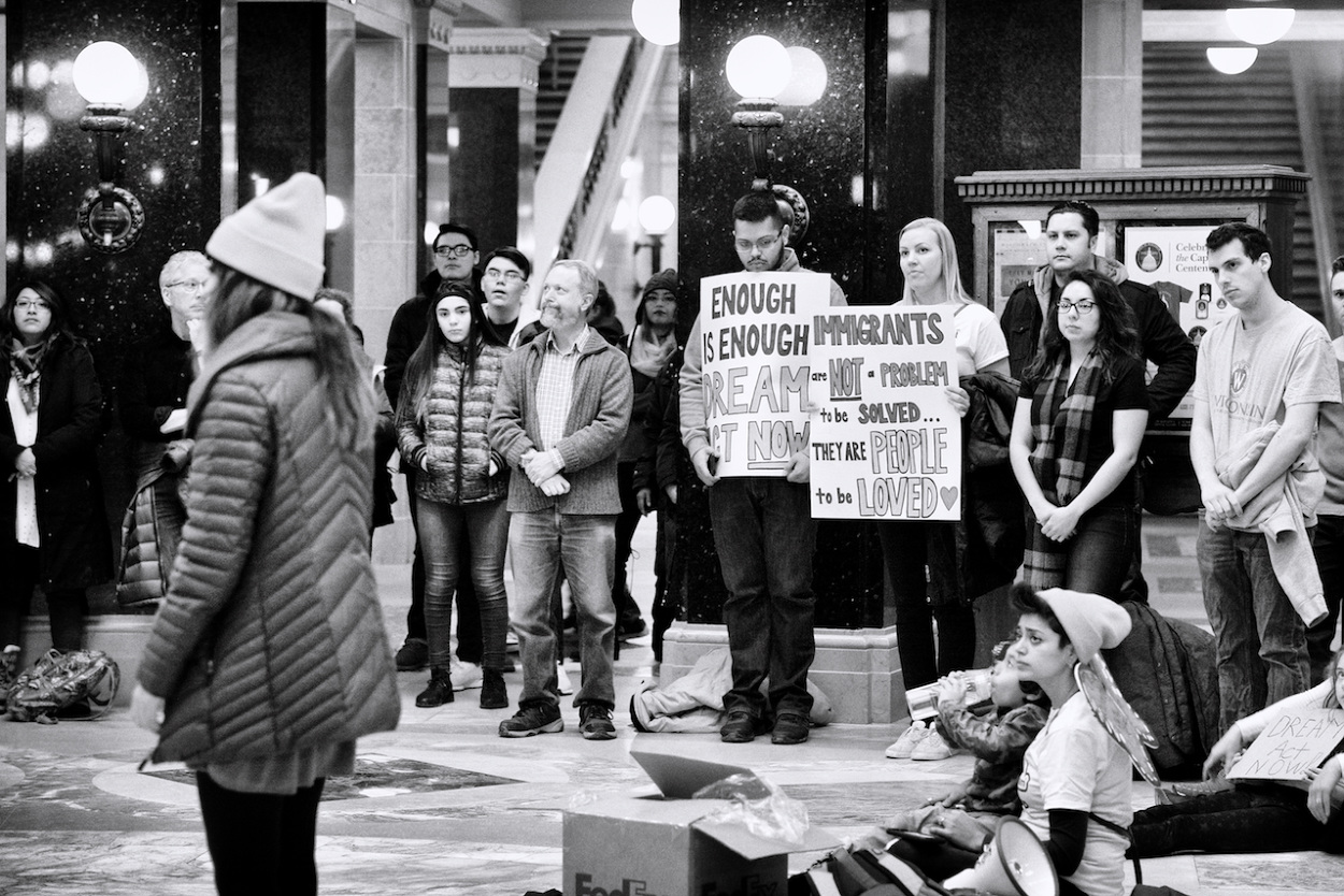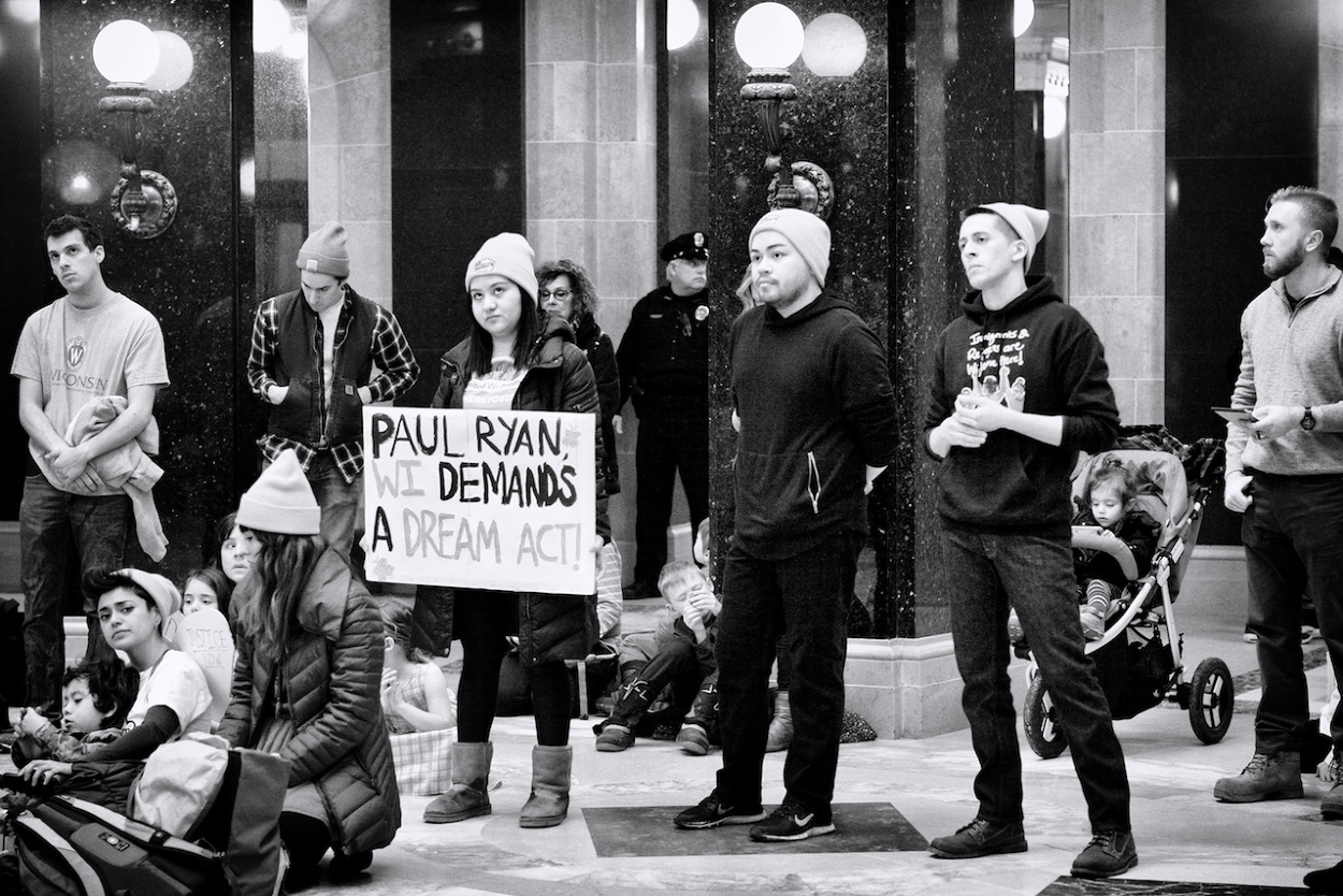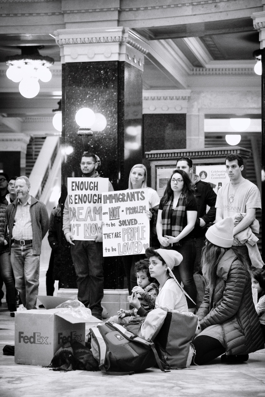 A set of images from a rally on January 19th, 2018 at the Wisconsin State Capital to support DACA and demand action regarding the Dream Act.