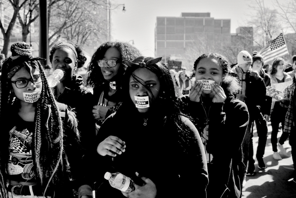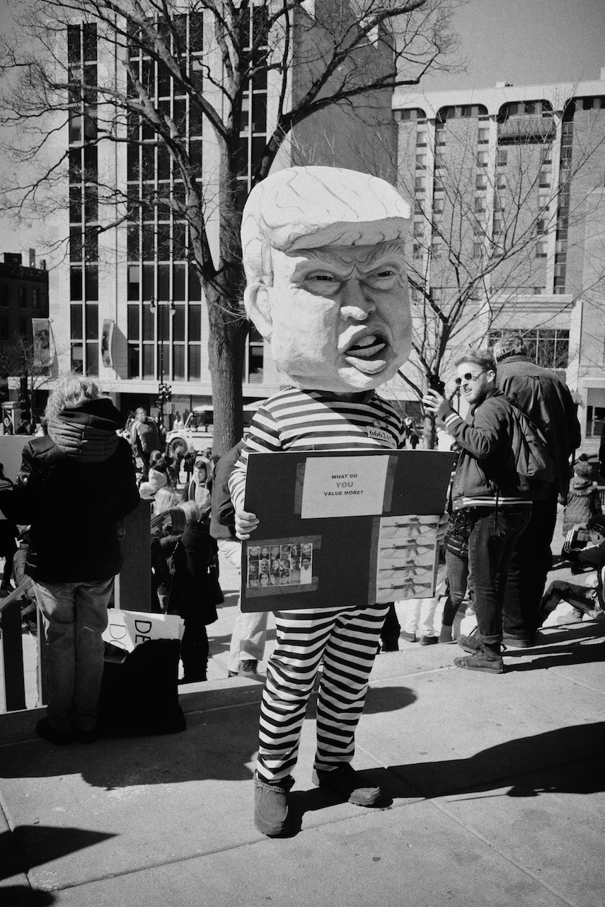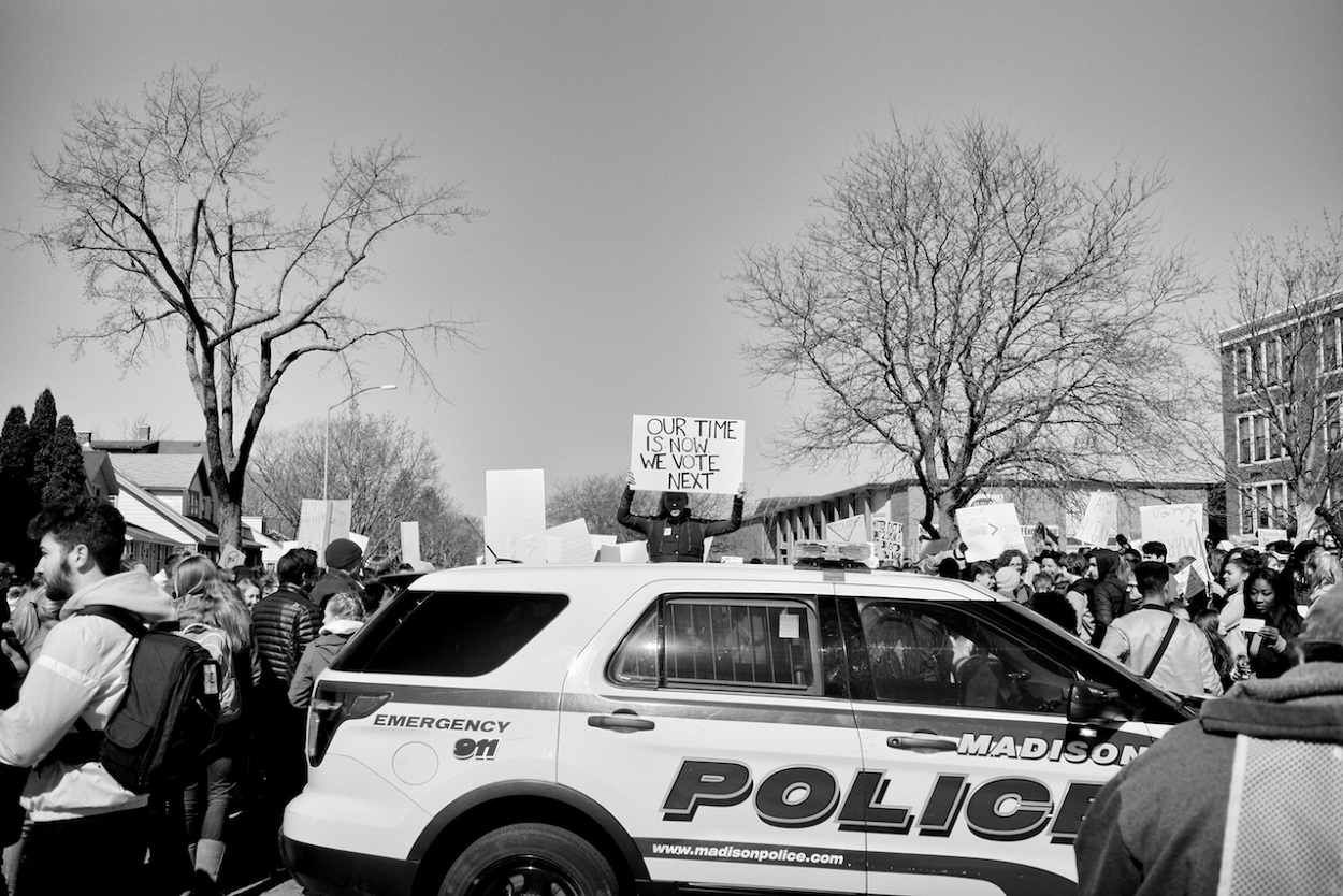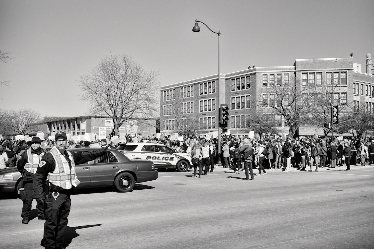 On the bus I talked with a student from Memorial High School. She estimated 70% of her school would be attending the march. I asked if she remembered the 2011 protests. Vaguely she said. I told her the students marched then as well. She smiled and went back to talking with her friends. As I looked out the window of the bus I saw a minivan packed with high schoolers. The driver was their dad I imagine. He was driving them to protest as if he were driving them to soccer practice.