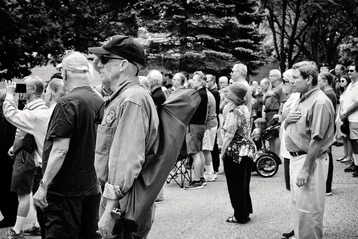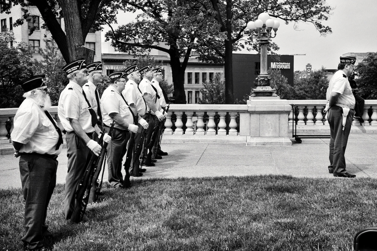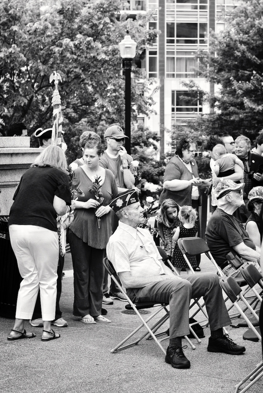 Spring had sprung. Summer was fast approaching. And it was Memorial Day: a day of national observance of those who died in wars and conflicts, protecting the United States and her interests. It was a day celebrating the might of men and their ability to conquer and slaughter evil (real or imagined). As summer came and now is slowly going, it’s late-August and I’ve finally gotten to a place mentally to say something about the photos I took and my experience attending three Memorial Day events this year. Each was very different in how they honored the fallen and glorify, or not, war. By the end of the day I was emotionally drained.