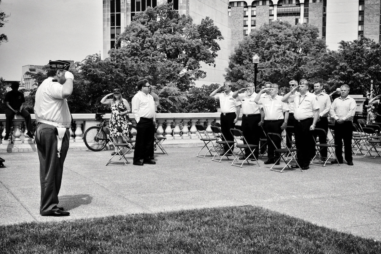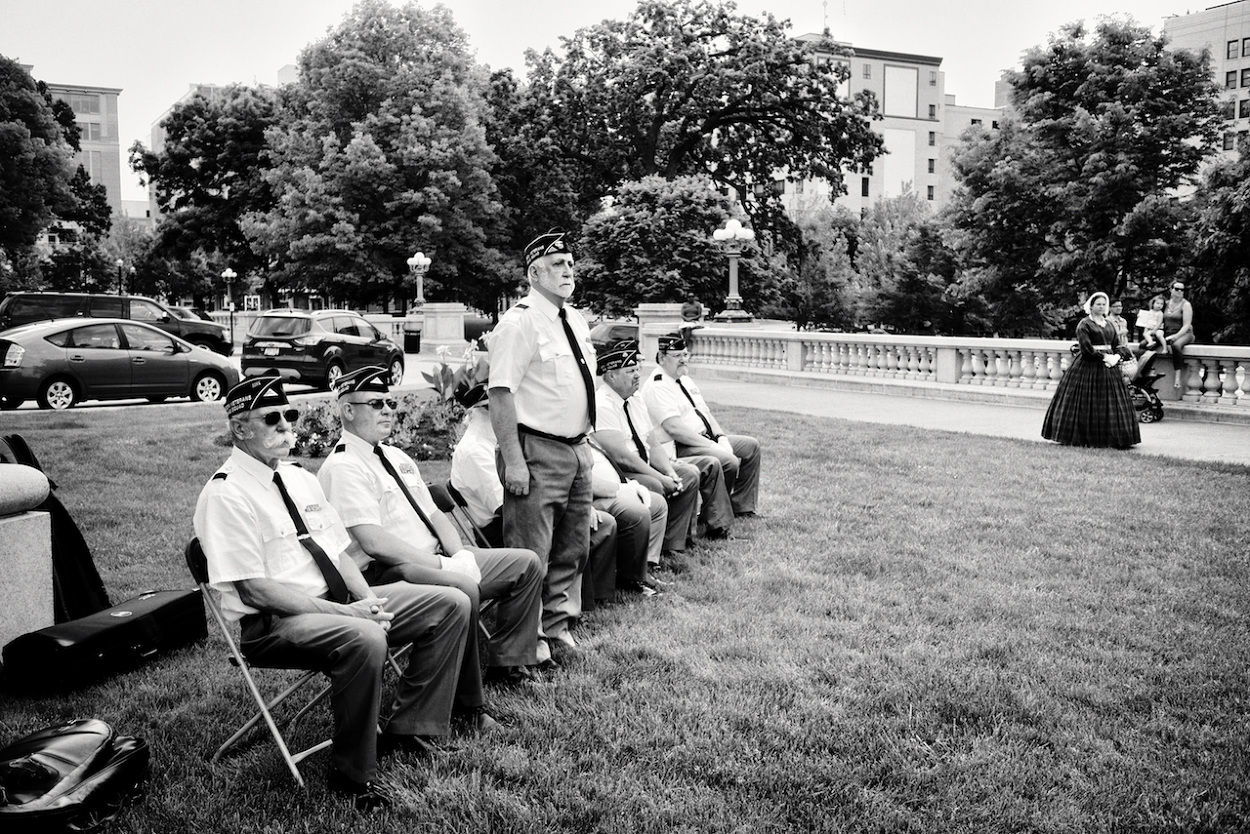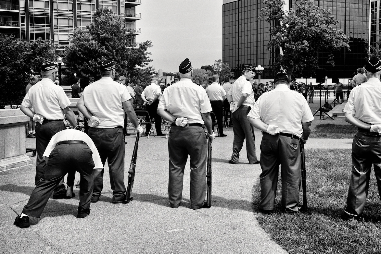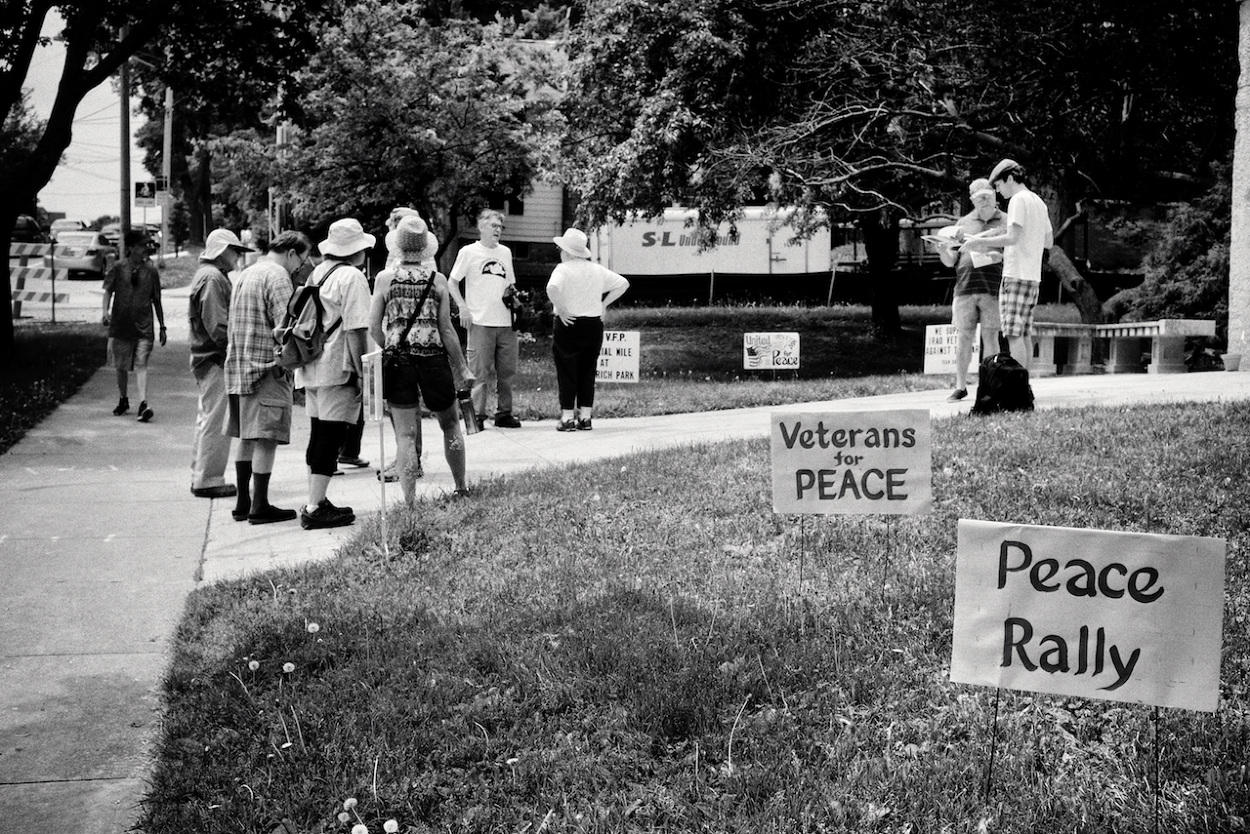 Spring had sprung. Summer was fast approaching. And it was Memorial Day: a day of national observance of those who died in wars and conflicts, protecting the United States and her interests. It was a day celebrating the might of men and their ability to conquer and slaughter evil (real or imagined). As summer came and now is slowly going, it’s late-August and I’ve finally gotten to a place mentally to say something about the photos I took and my experience attending three Memorial Day events this year. Each was very different in how they honored the fallen and glorify, or not, war. By the end of the day I was emotionally drained.