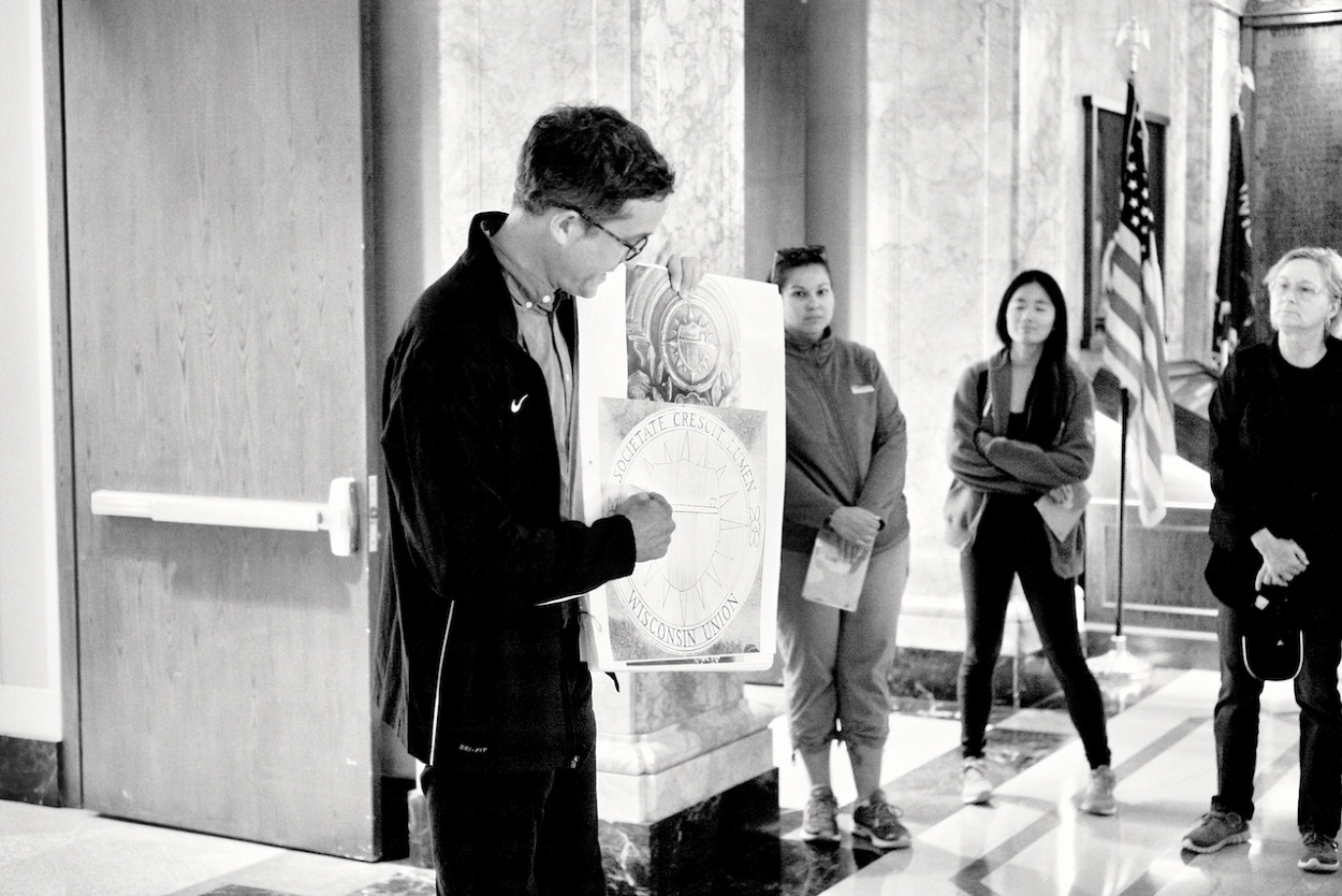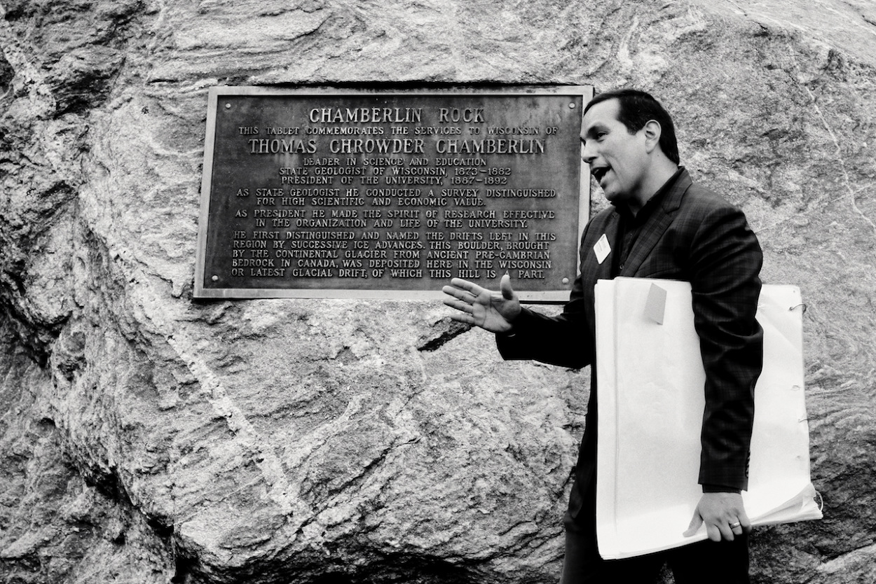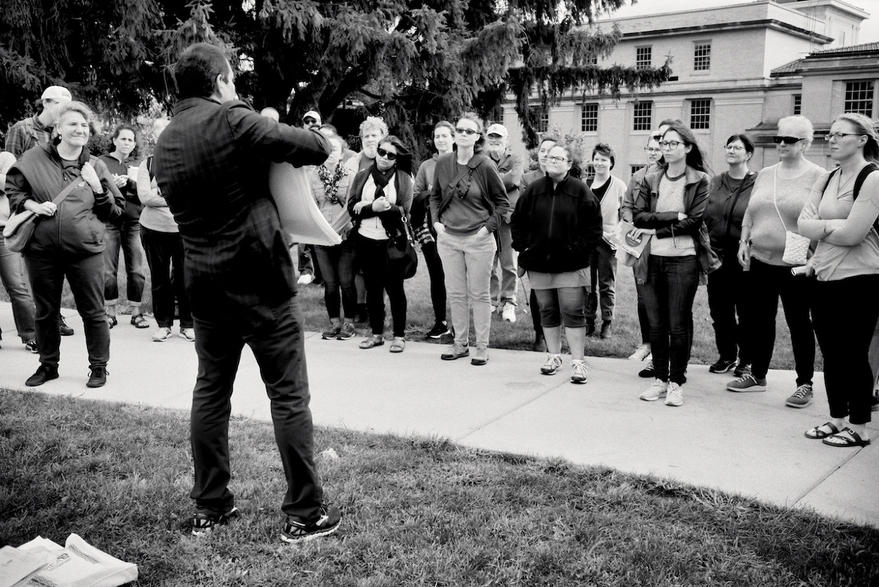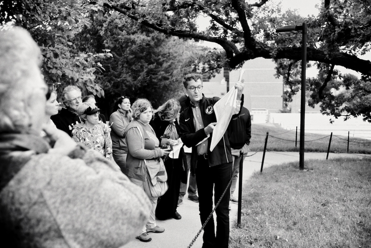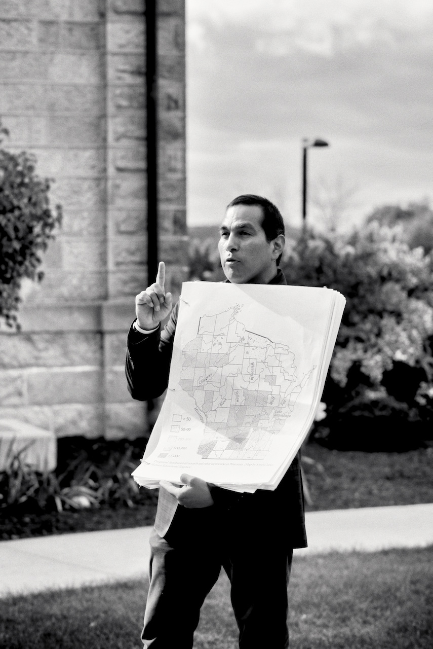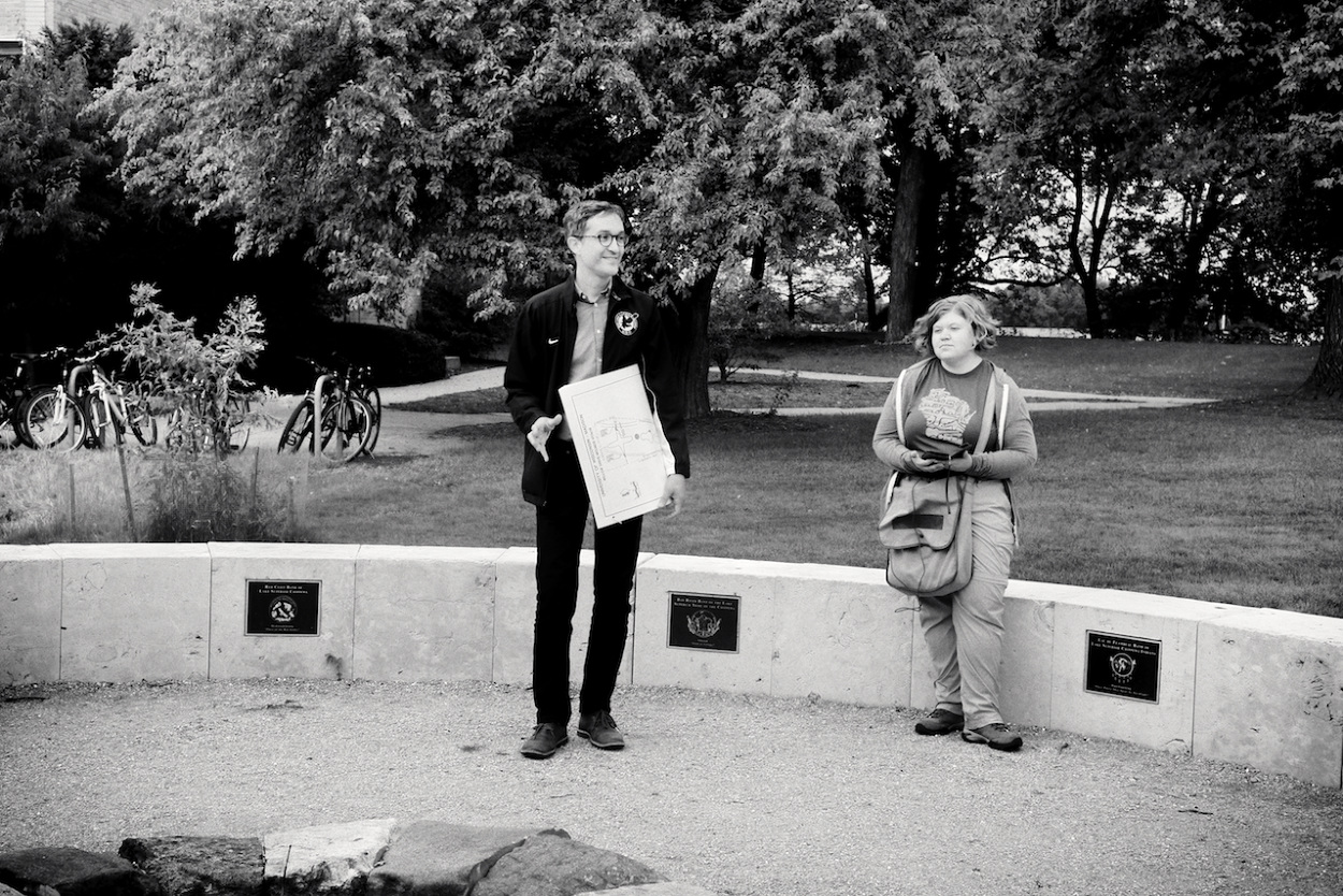 Photos of Aaron Bird Bear and Omar Poler as they lead a UW-Madison First Nations Cultural Landscape Tour.