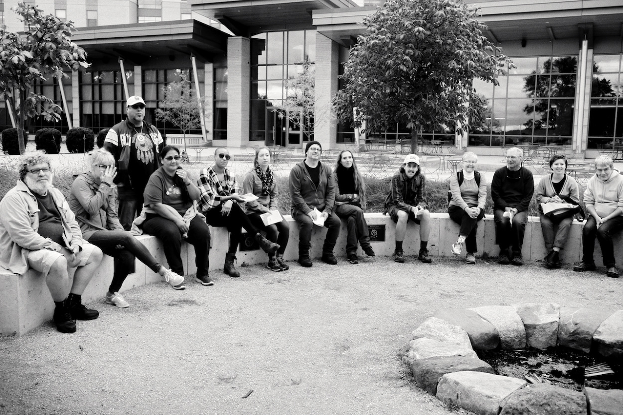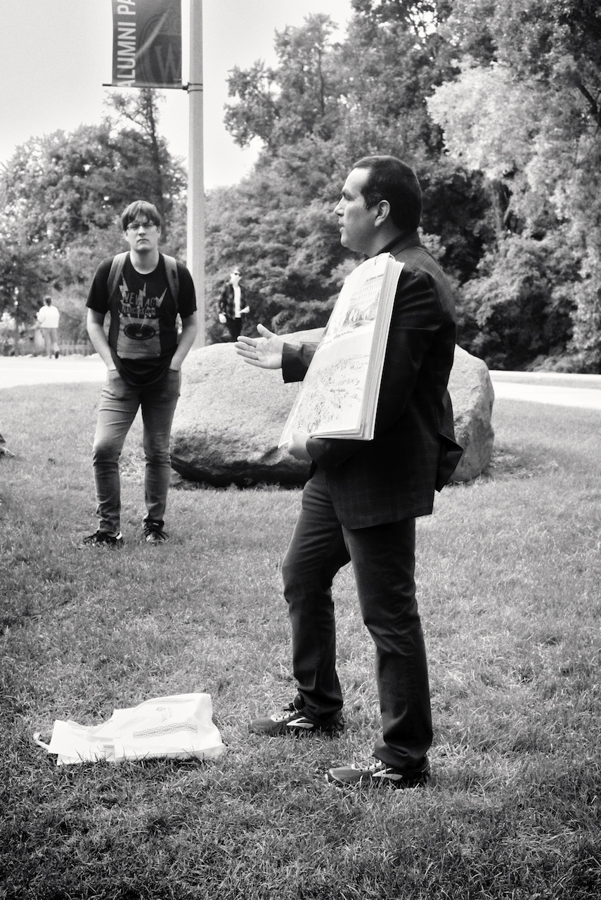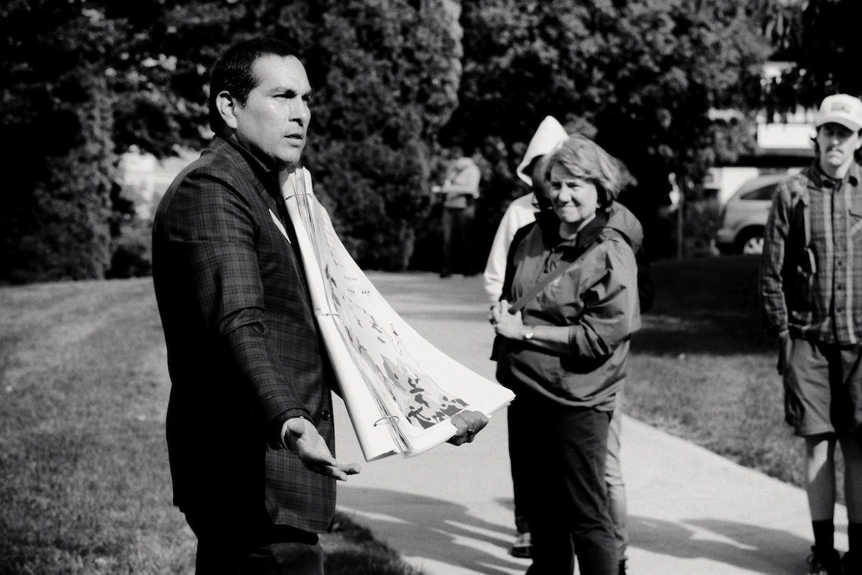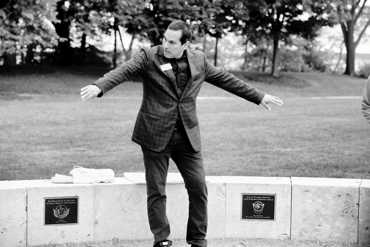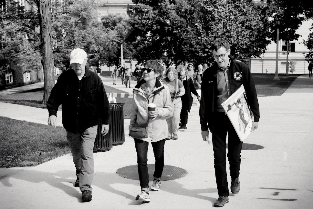 Photos of Aaron Bird Bear and Omar Poler as they lead a UW-Madison First Nations Cultural Landscape Tour.