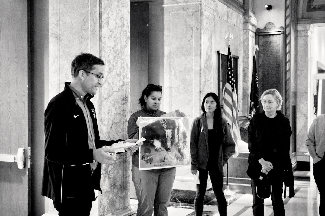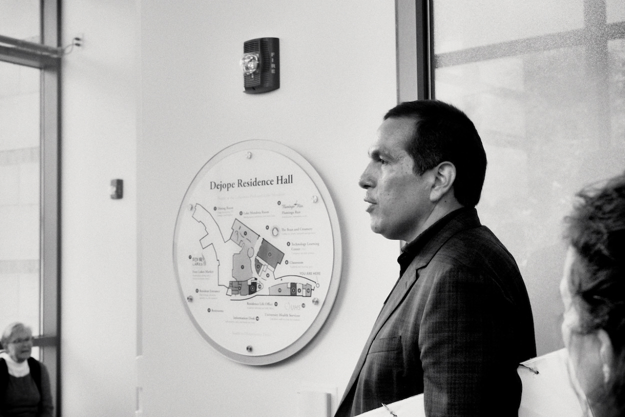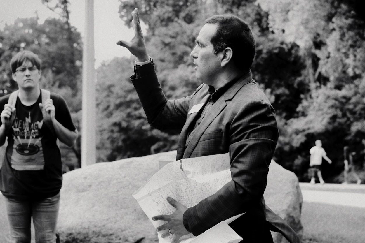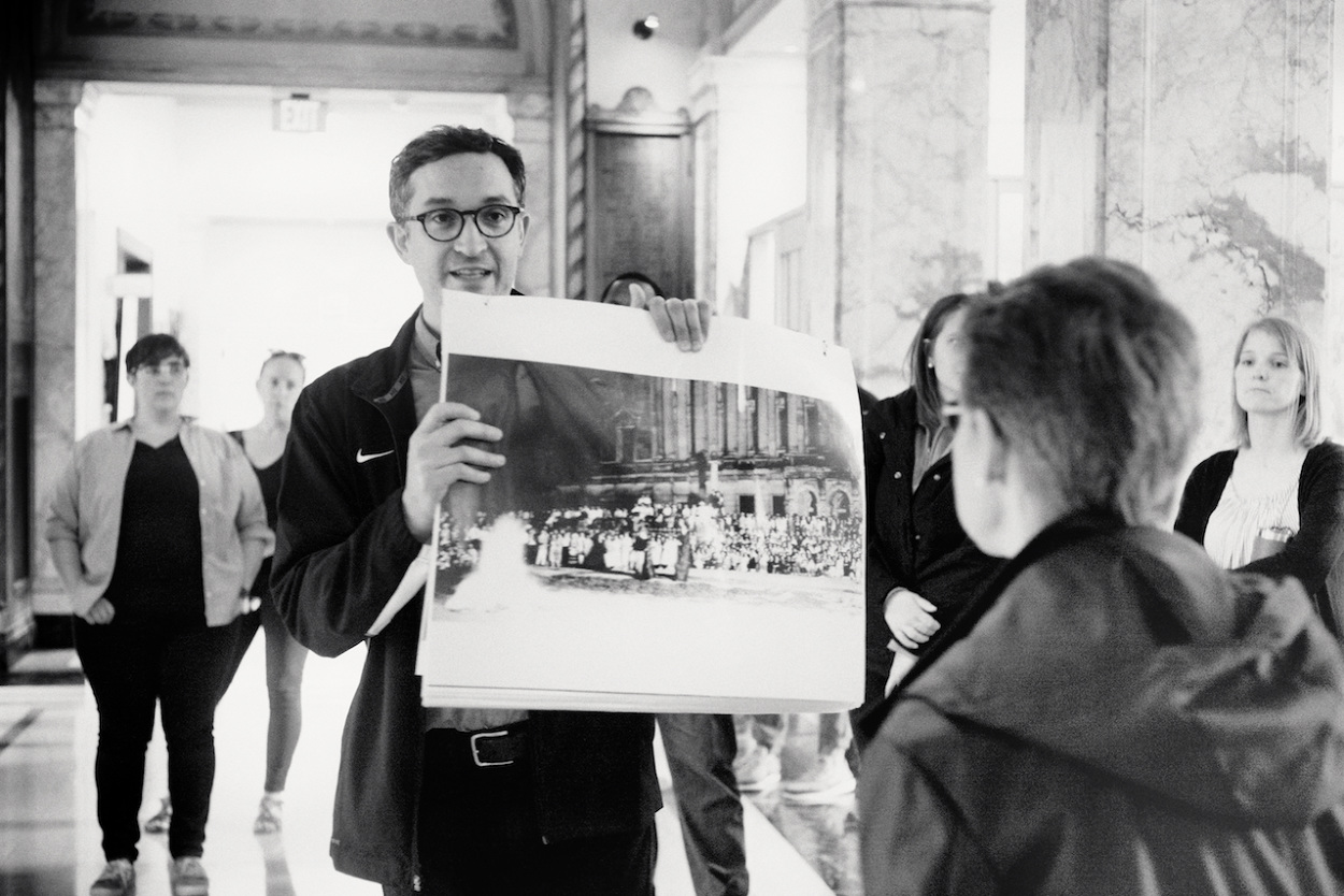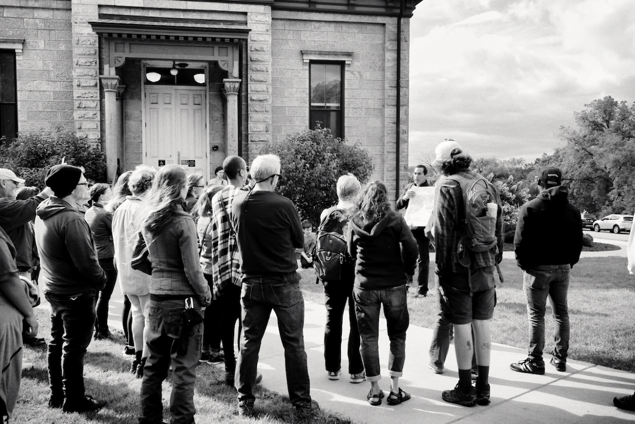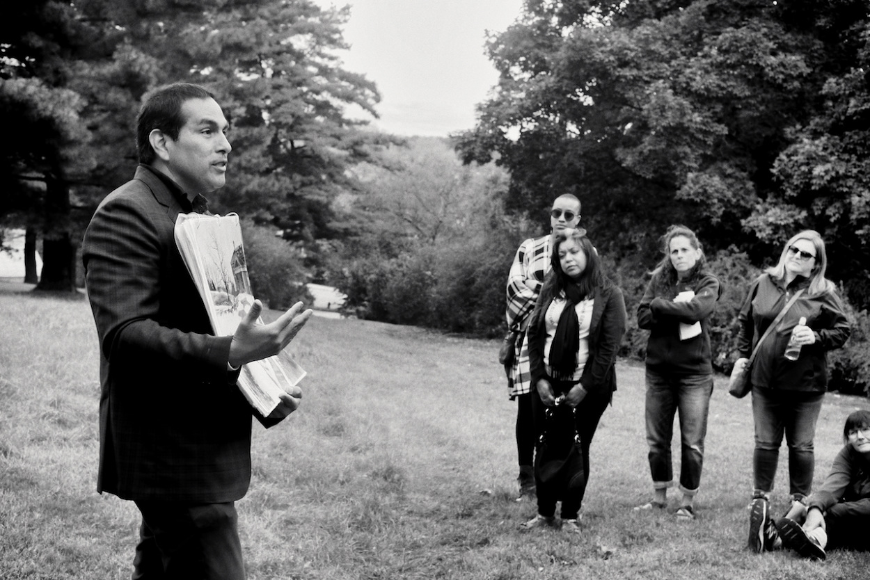 Photos of Aaron Bird Bear and Omar Poler as they lead a UW-Madison First Nations Cultural Landscape Tour.