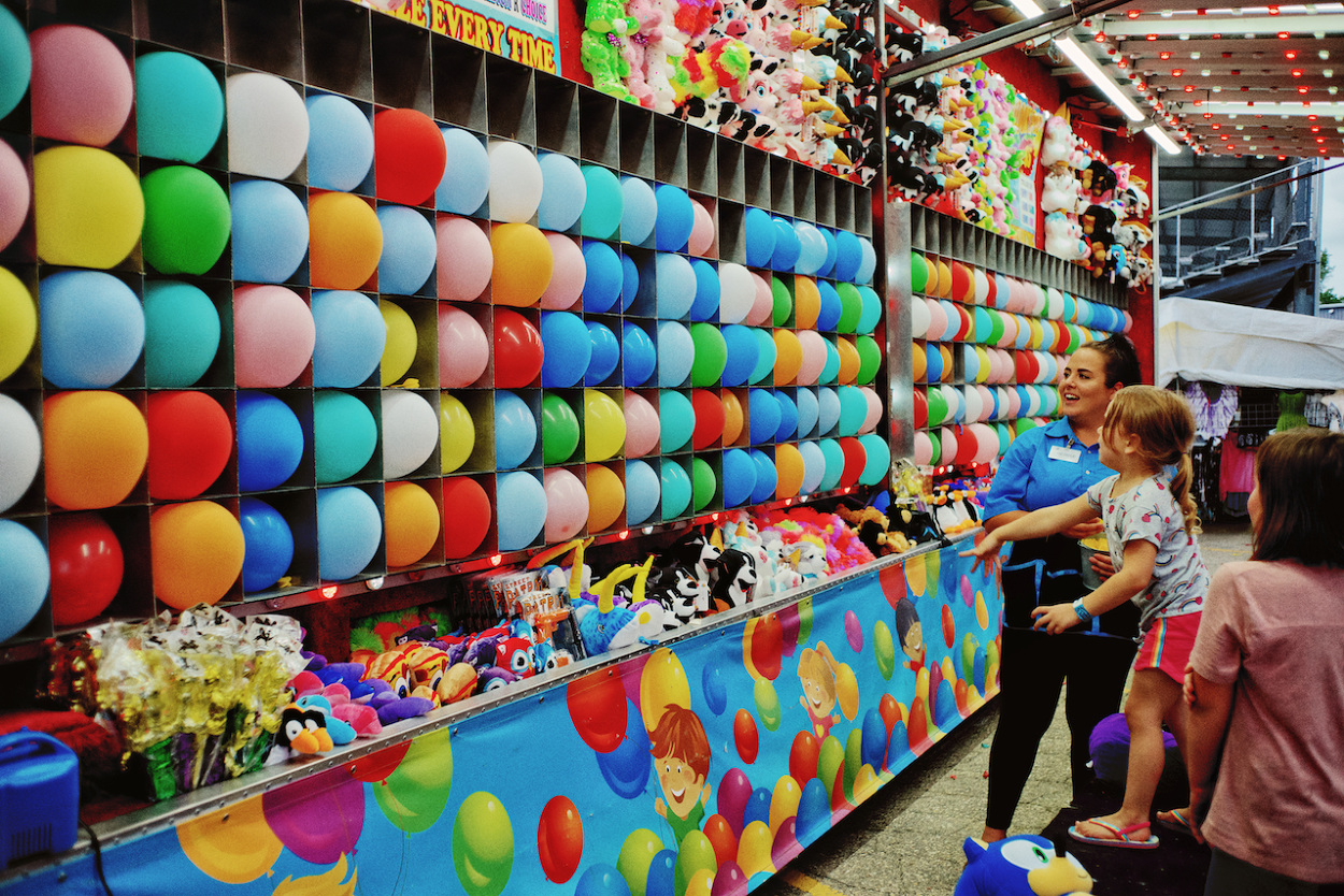 The highlight of my visit was meeting Cherise, who was running the Balloon Darts game of chance. It was very slow the first night and Cherise was able to chat a bit with me: she is from South Africa and started with the carnival four months ago in Miami, and is doing it as a way to travel and make money. Cherise said she has met a lot of interesting characters thus far. I plan to catch up with her later in the season to see how things are going.