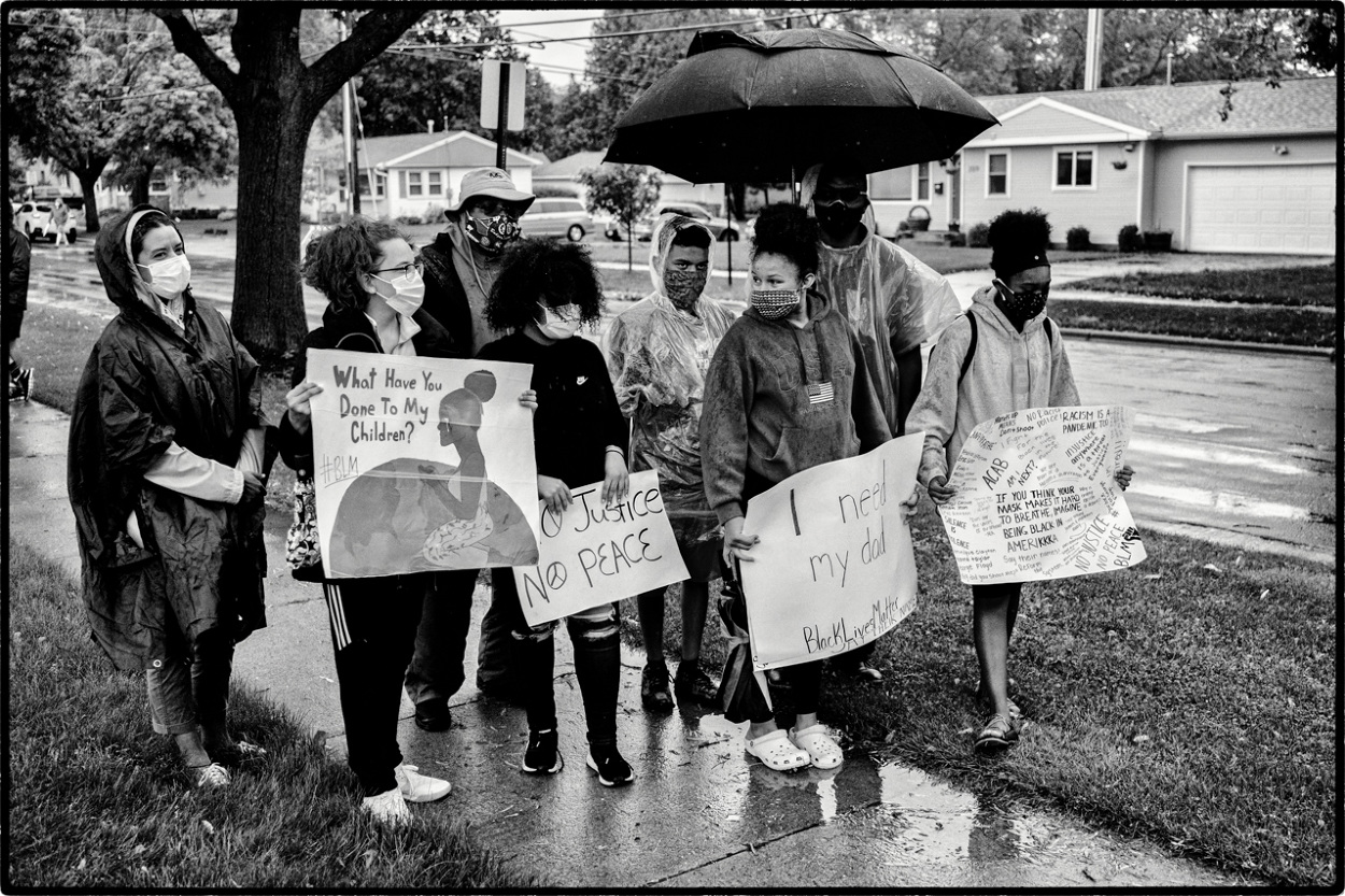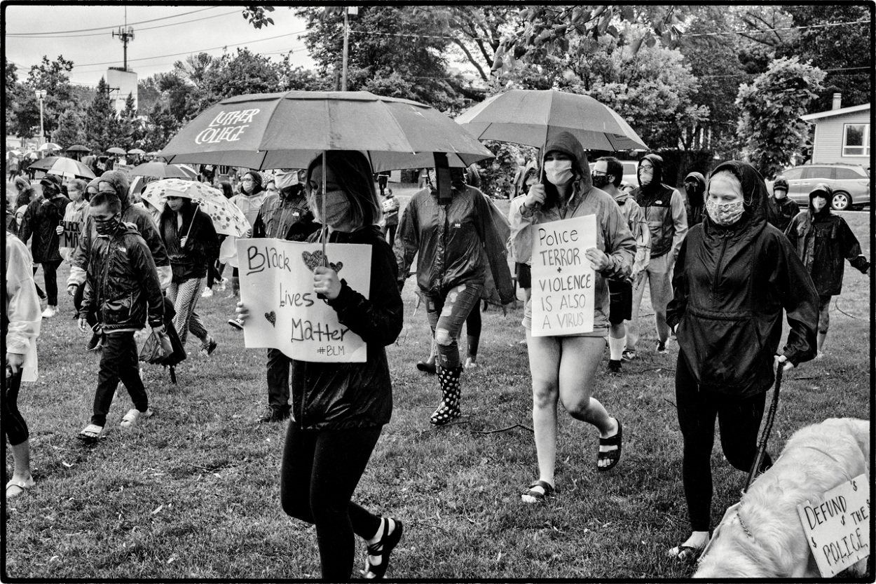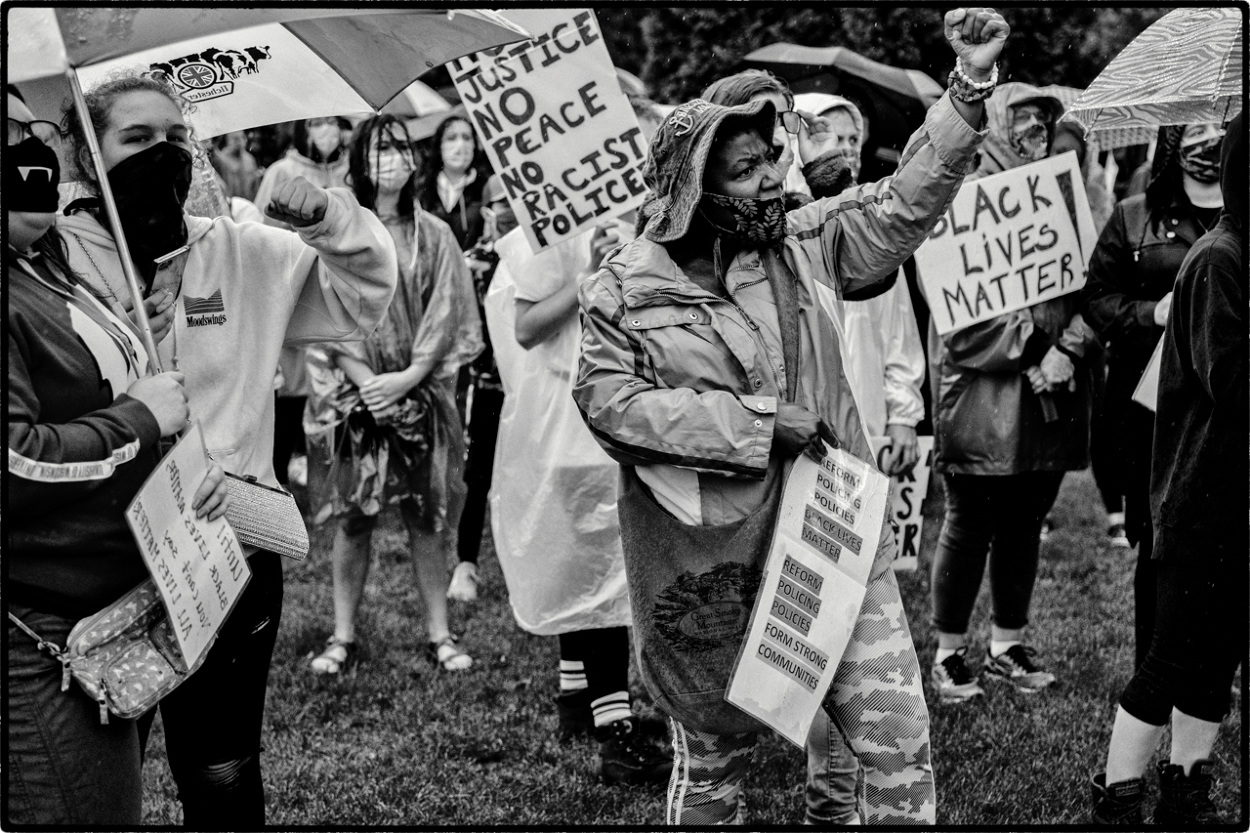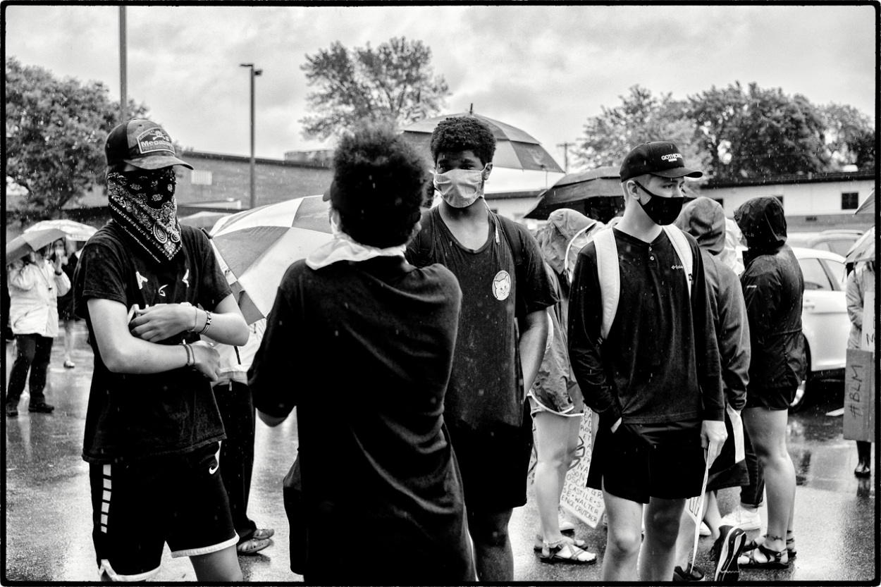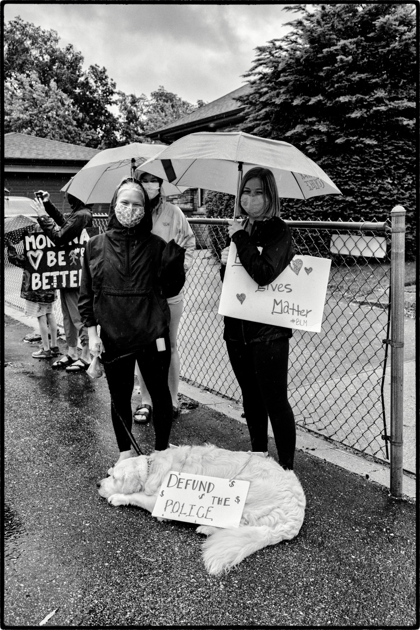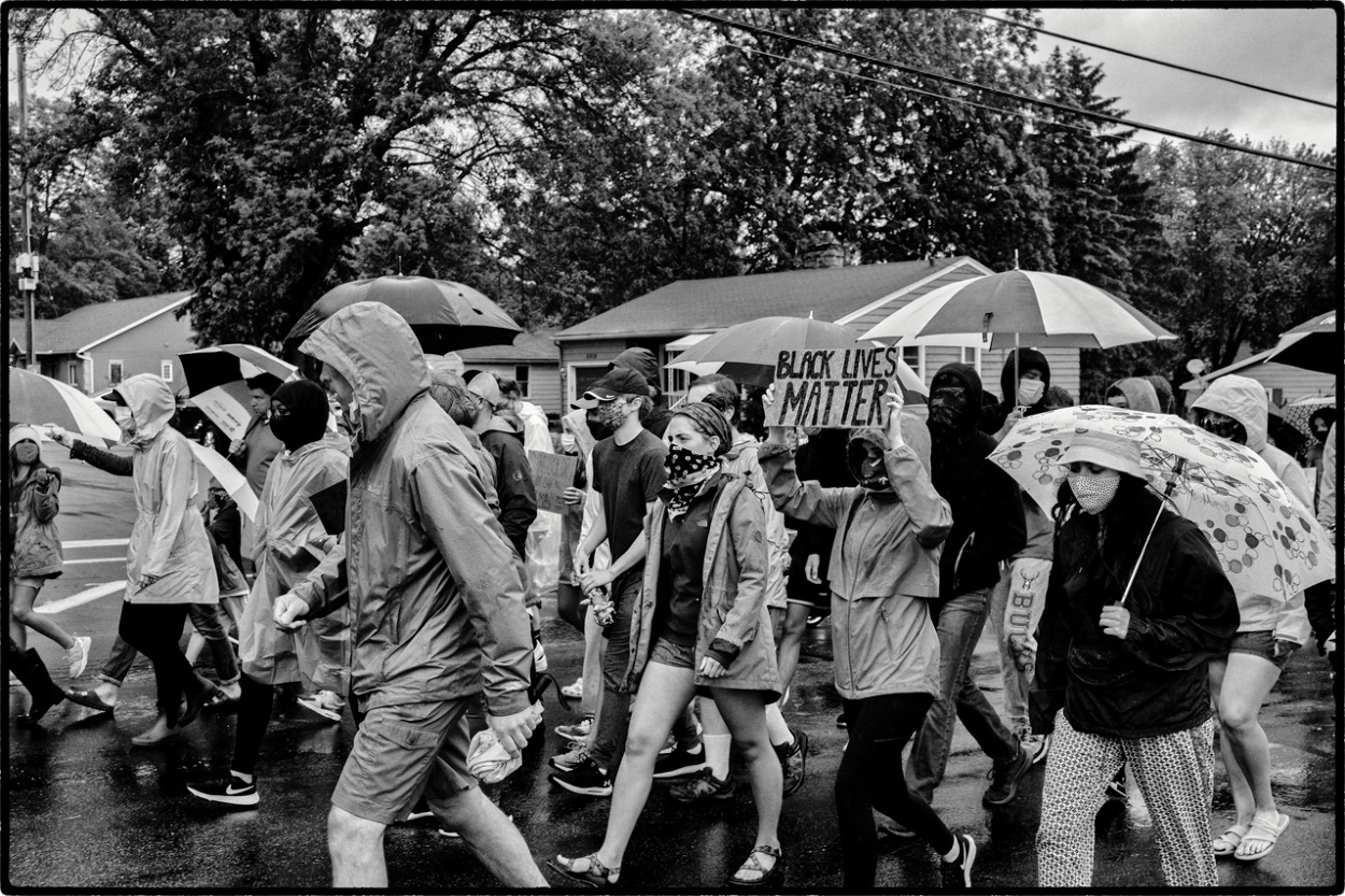 A post on Facebook earlier in the day said the protest walk was on rain or shine… Rain it was and walk they did! A crowd of several hundred gathered at the Monona Grove school district building and then proceeded to march down Nichols Road to Winnequah Park, where an eight minute 46 second moment of silence was held in remembrance of George Floyd and how long it took Derek Chauvin to murder Mr. Floyd on May 25th 2020 in Minneapolis, MN.