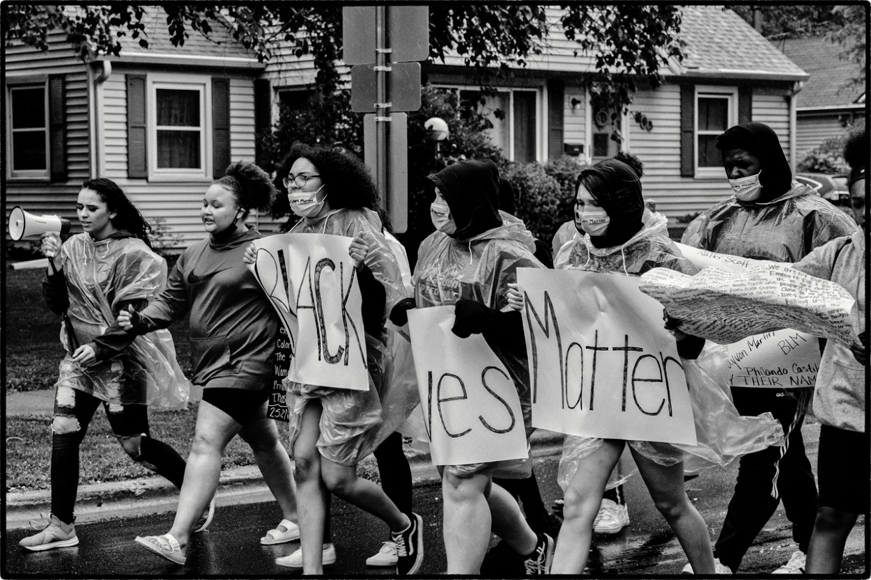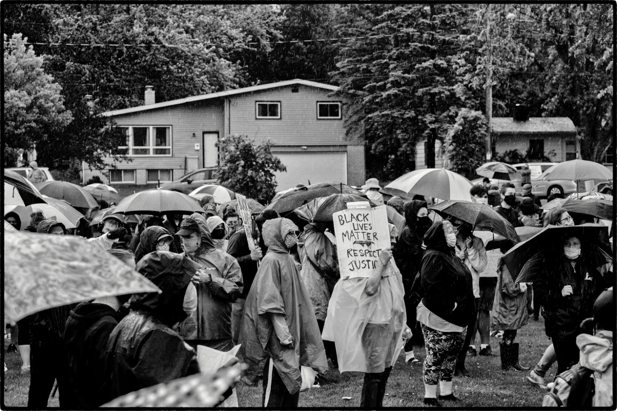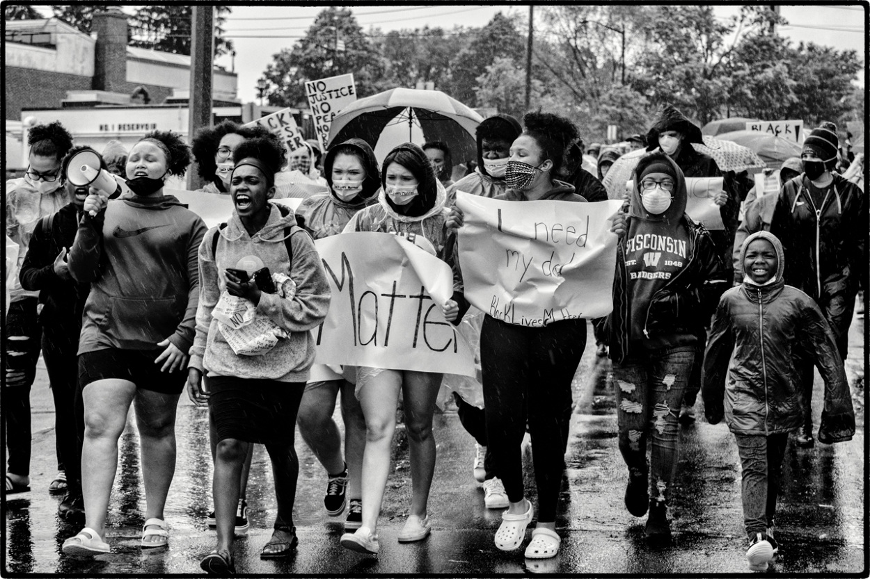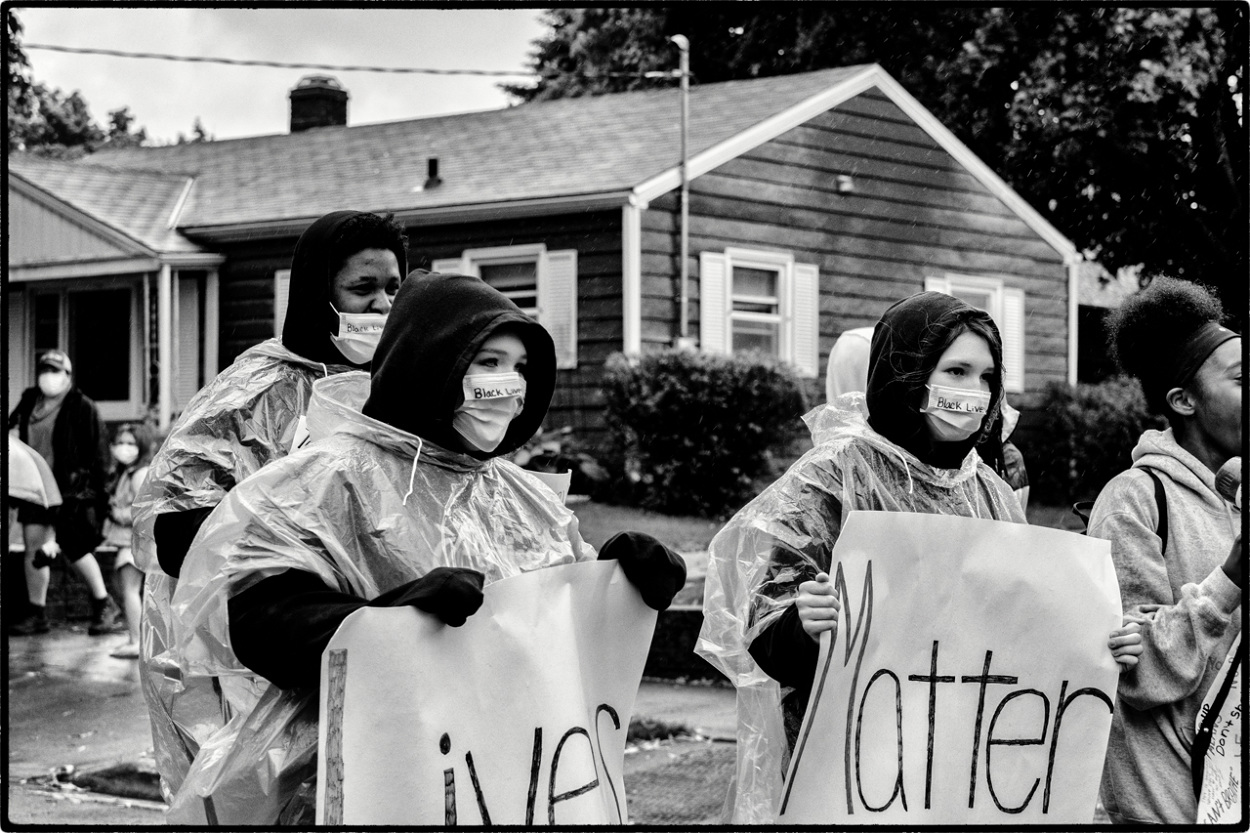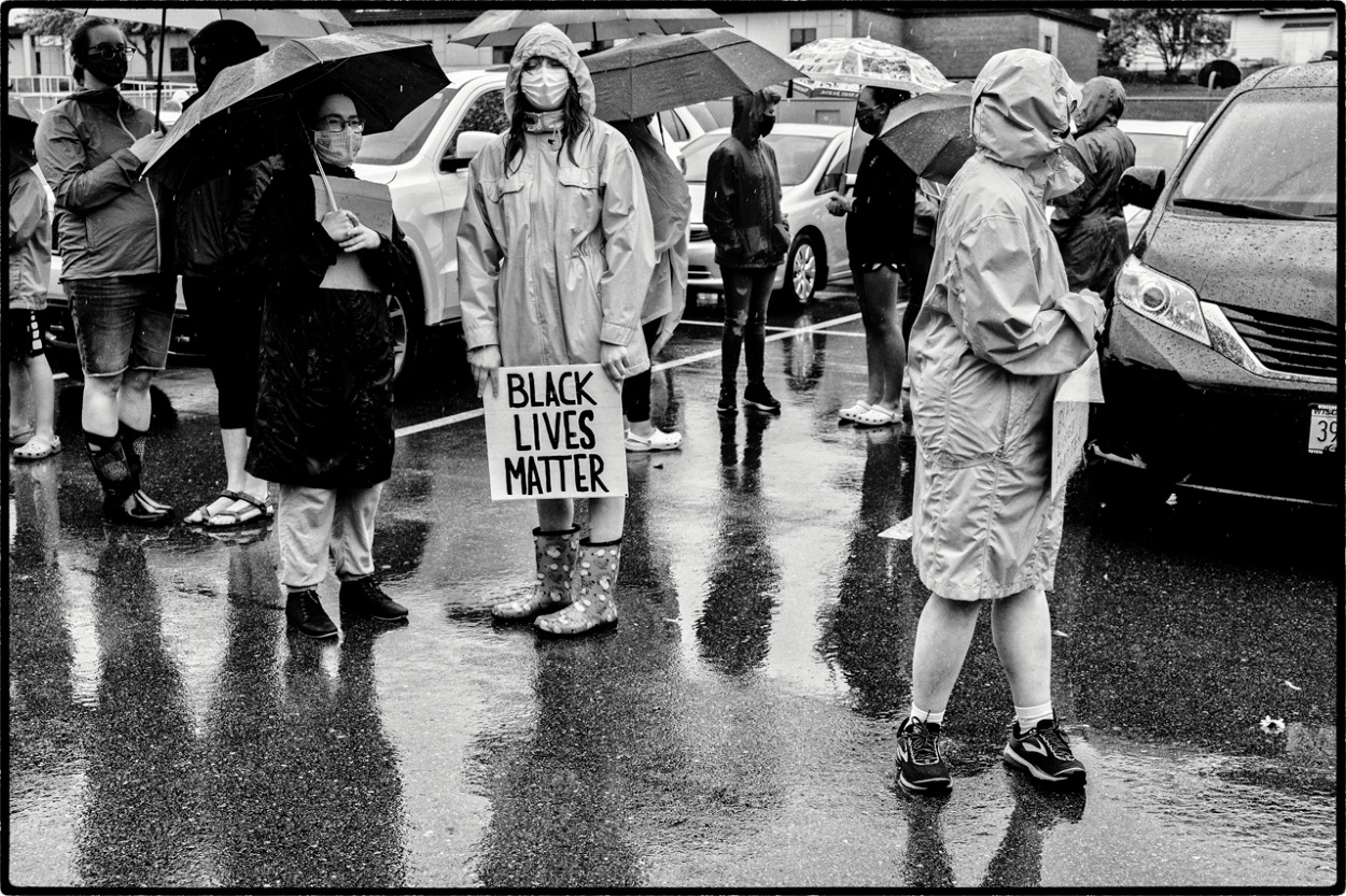A post on Facebook earlier in the day said the protest walk was on rain or shine… Rain it was and walk they did! A crowd of several hundred gathered at the Monona Grove school district building and then proceeded to march down Nichols Road to Winnequah Park, where an eight minute 46 second moment of silence was held in remembrance of George Floyd and how long it took Derek Chauvin to murder Mr. Floyd on May 25th 2020 in Minneapolis, MN.