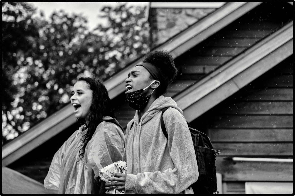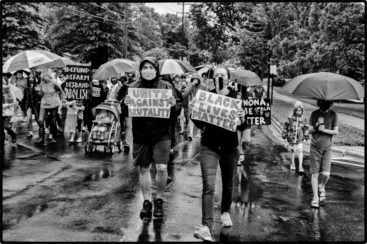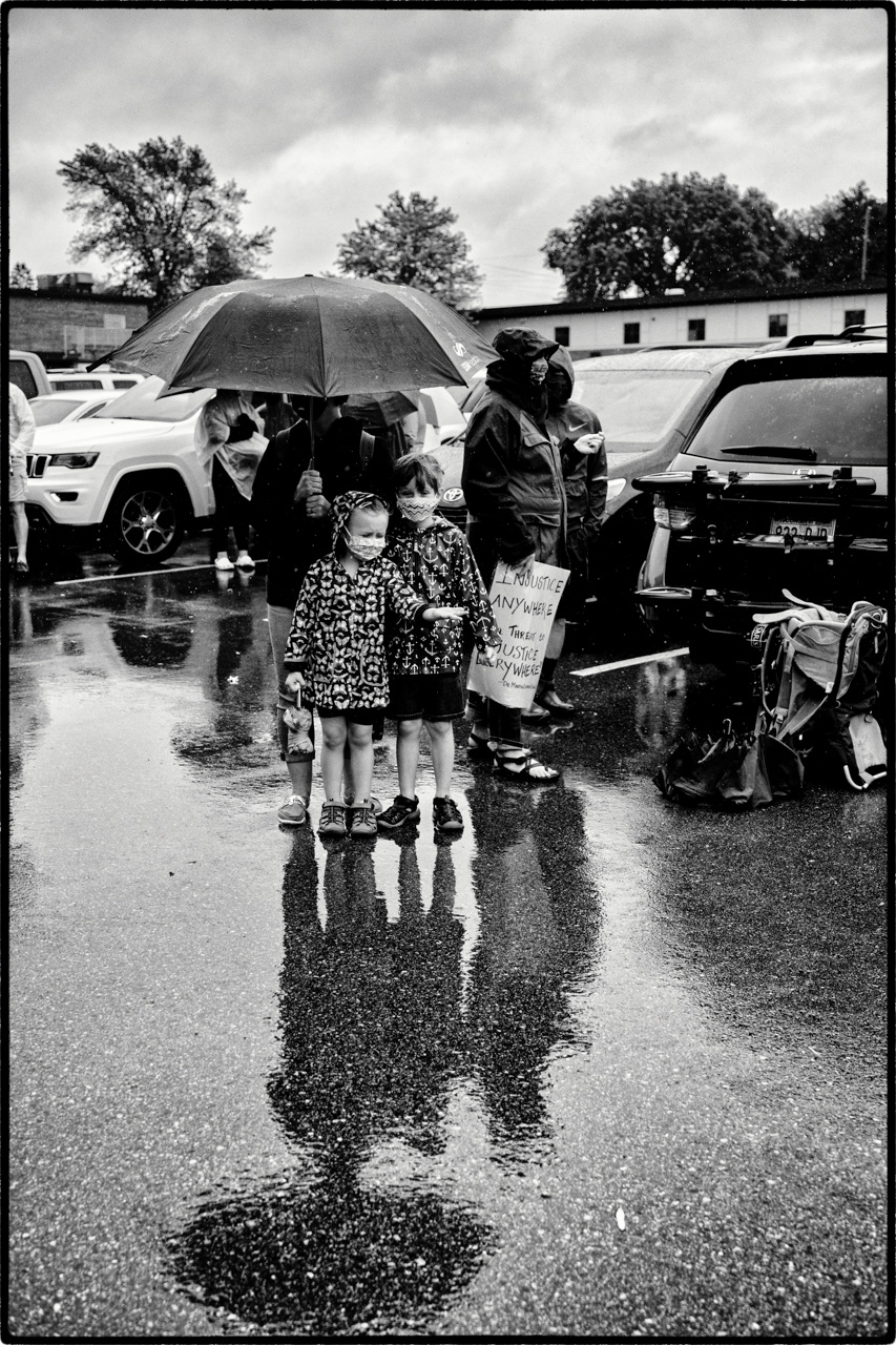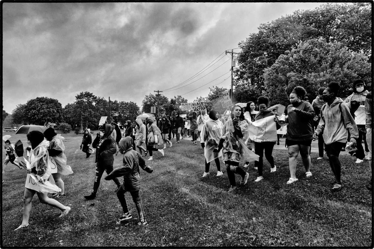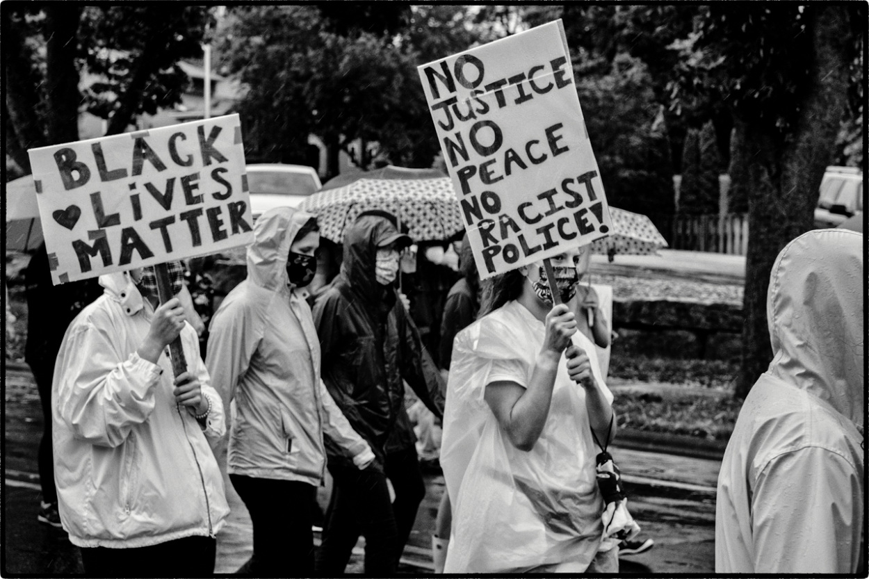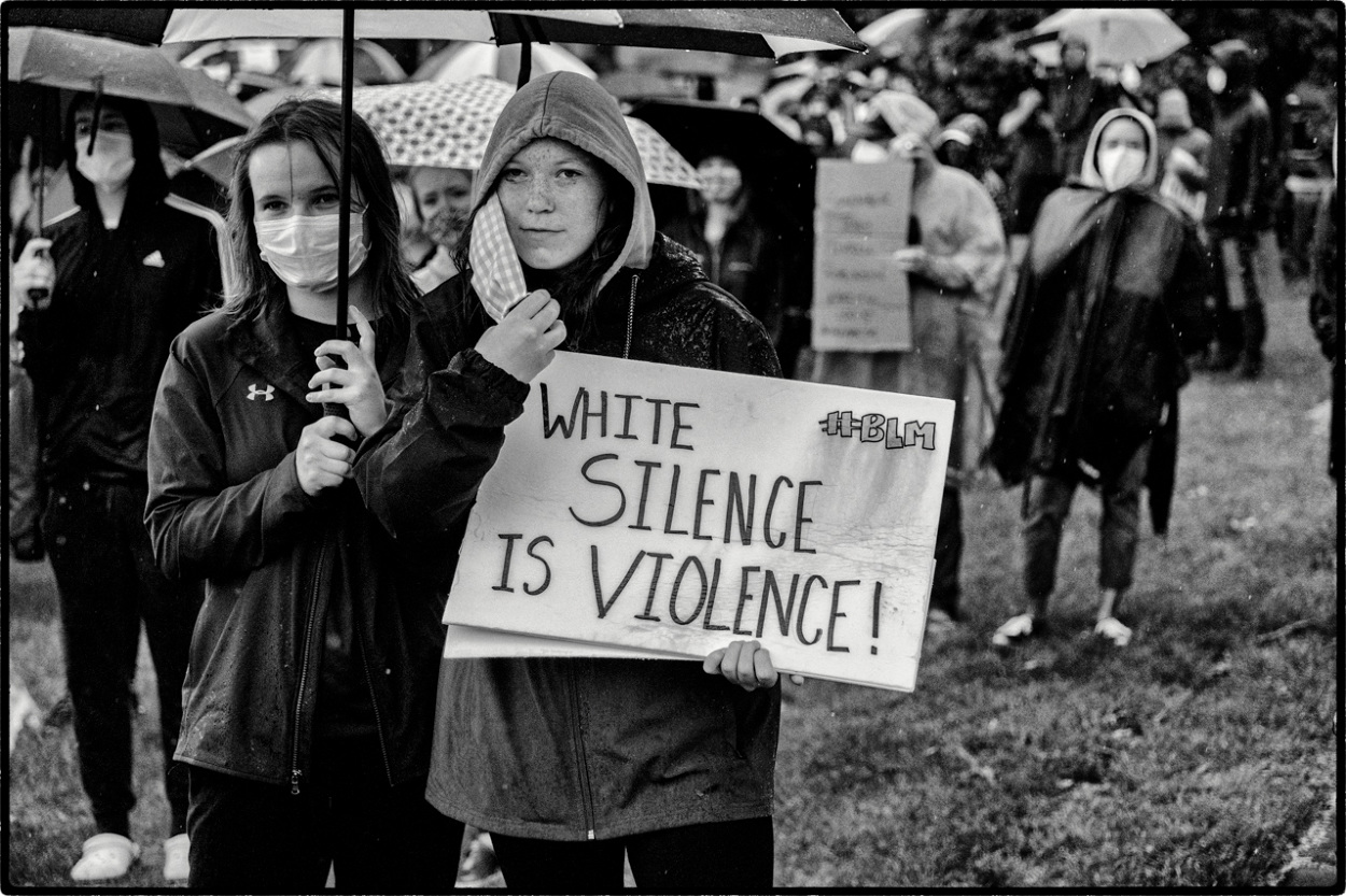 A post on Facebook earlier in the day said the protest walk was on rain or shine… Rain it was and walk they did! A crowd of several hundred gathered at the Monona Grove school district building and then proceeded to march down Nichols Road to Winnequah Park, where an eight minute 46 second moment of silence was held in remembrance of George Floyd and how long it took Derek Chauvin to murder Mr. Floyd on May 25th 2020 in Minneapolis, MN.