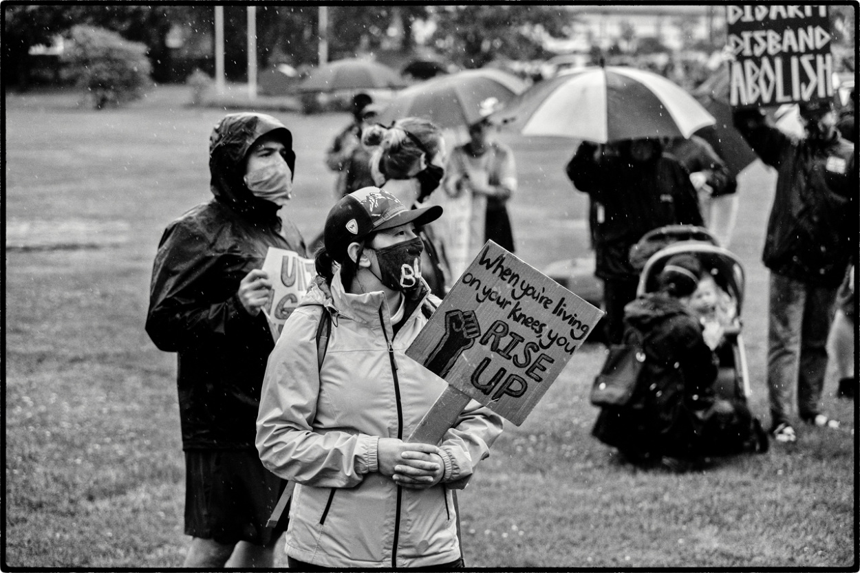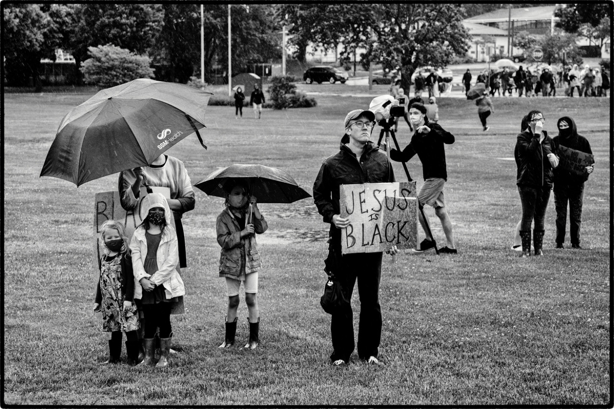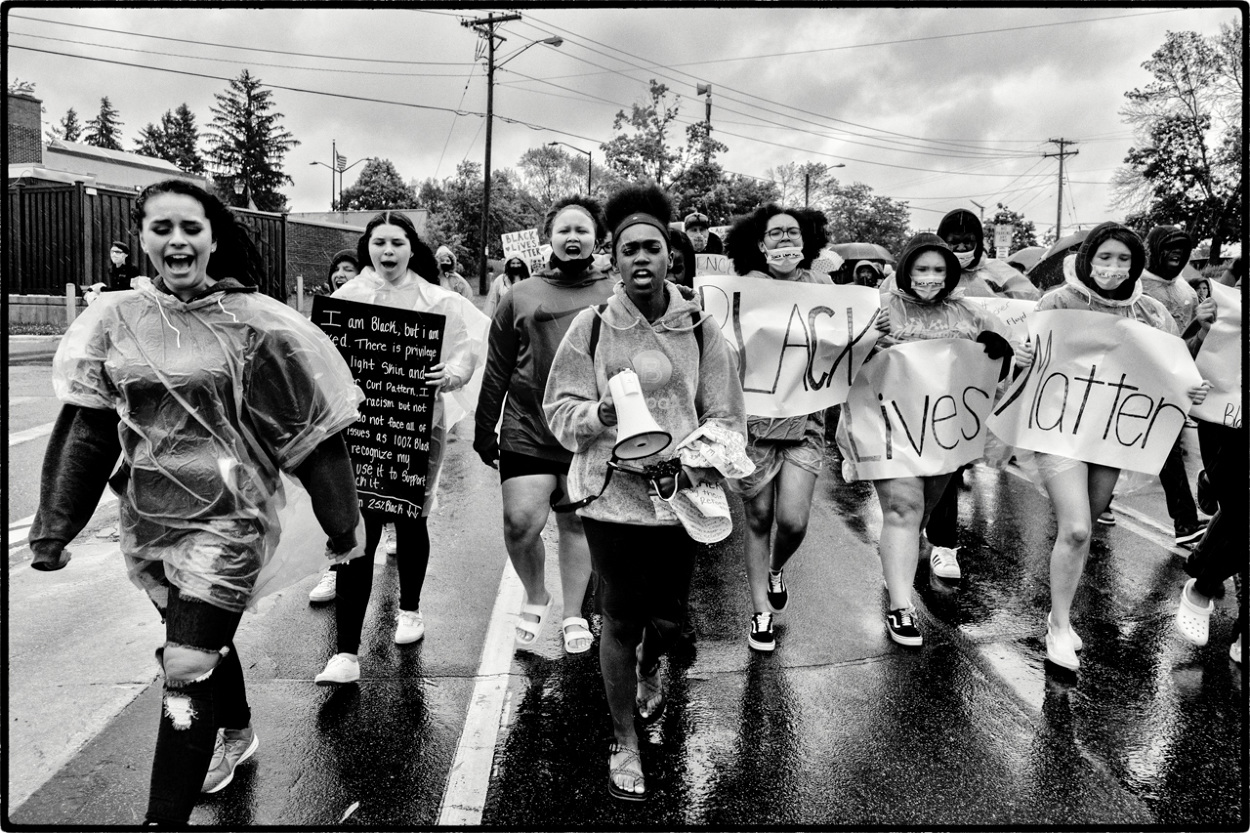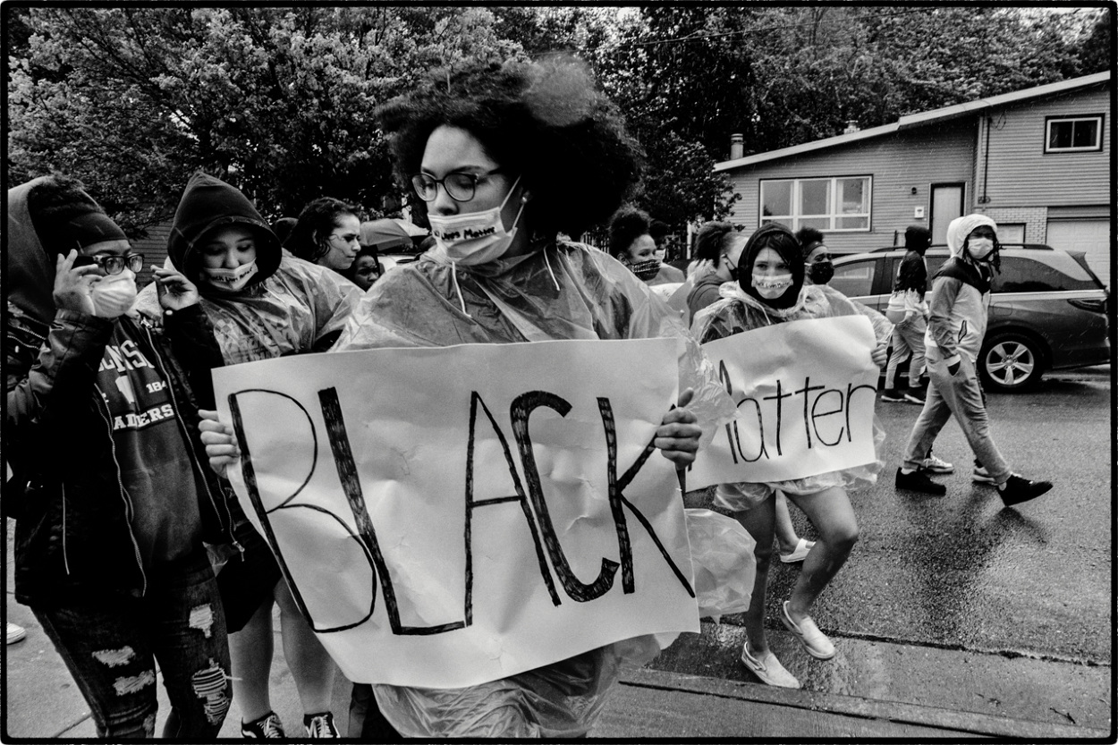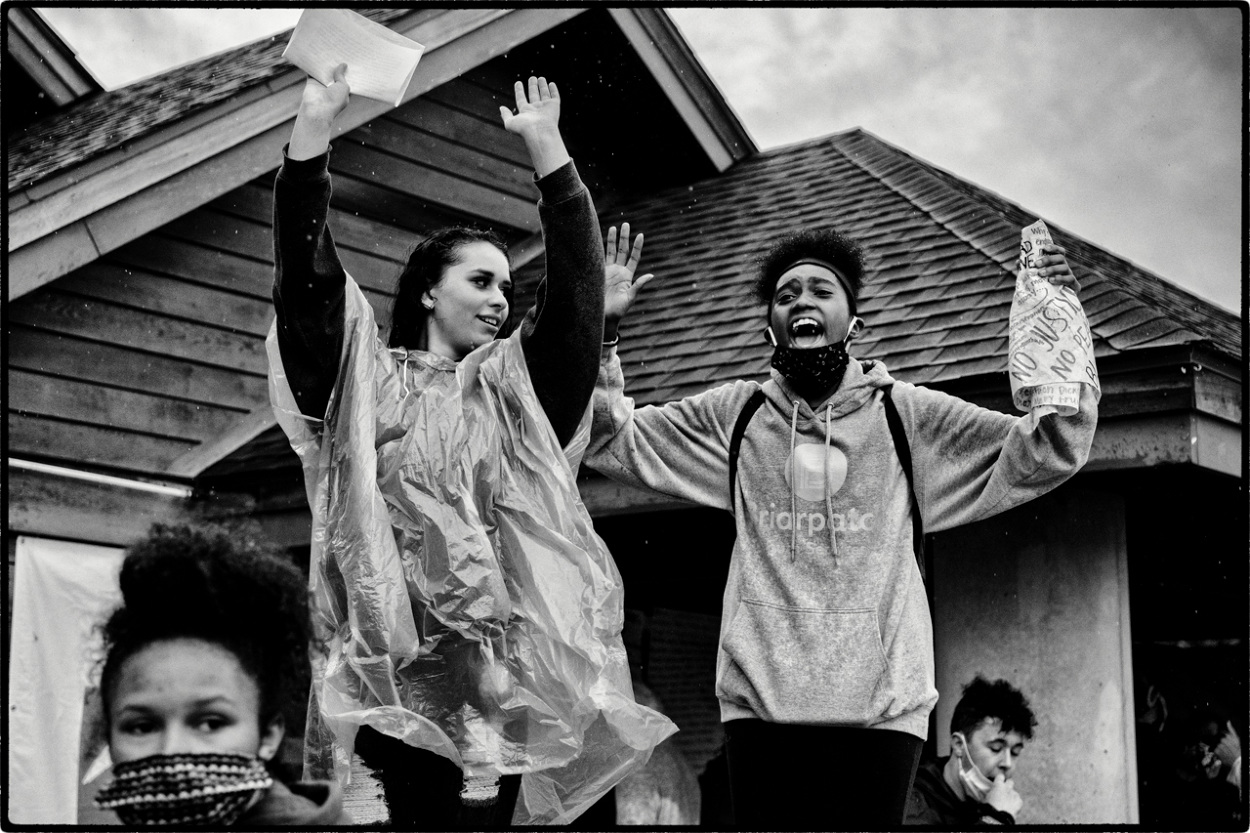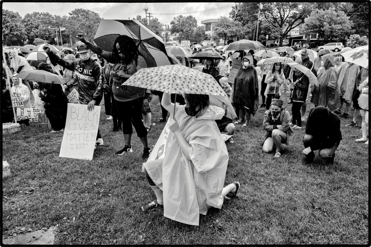 A post on Facebook earlier in the day said the protest walk was on rain or shine… Rain it was and walk they did! A crowd of several hundred gathered at the Monona Grove school district building and then proceeded to march down Nichols Road to Winnequah Park, where an eight minute 46 second moment of silence was held in remembrance of George Floyd and how long it took Derek Chauvin to murder Mr. Floyd on May 25th 2020 in Minneapolis, MN.
