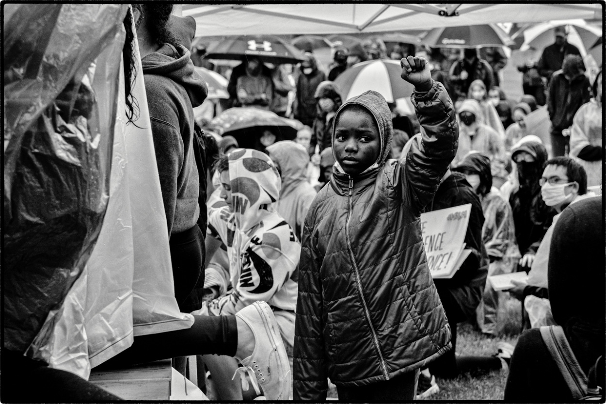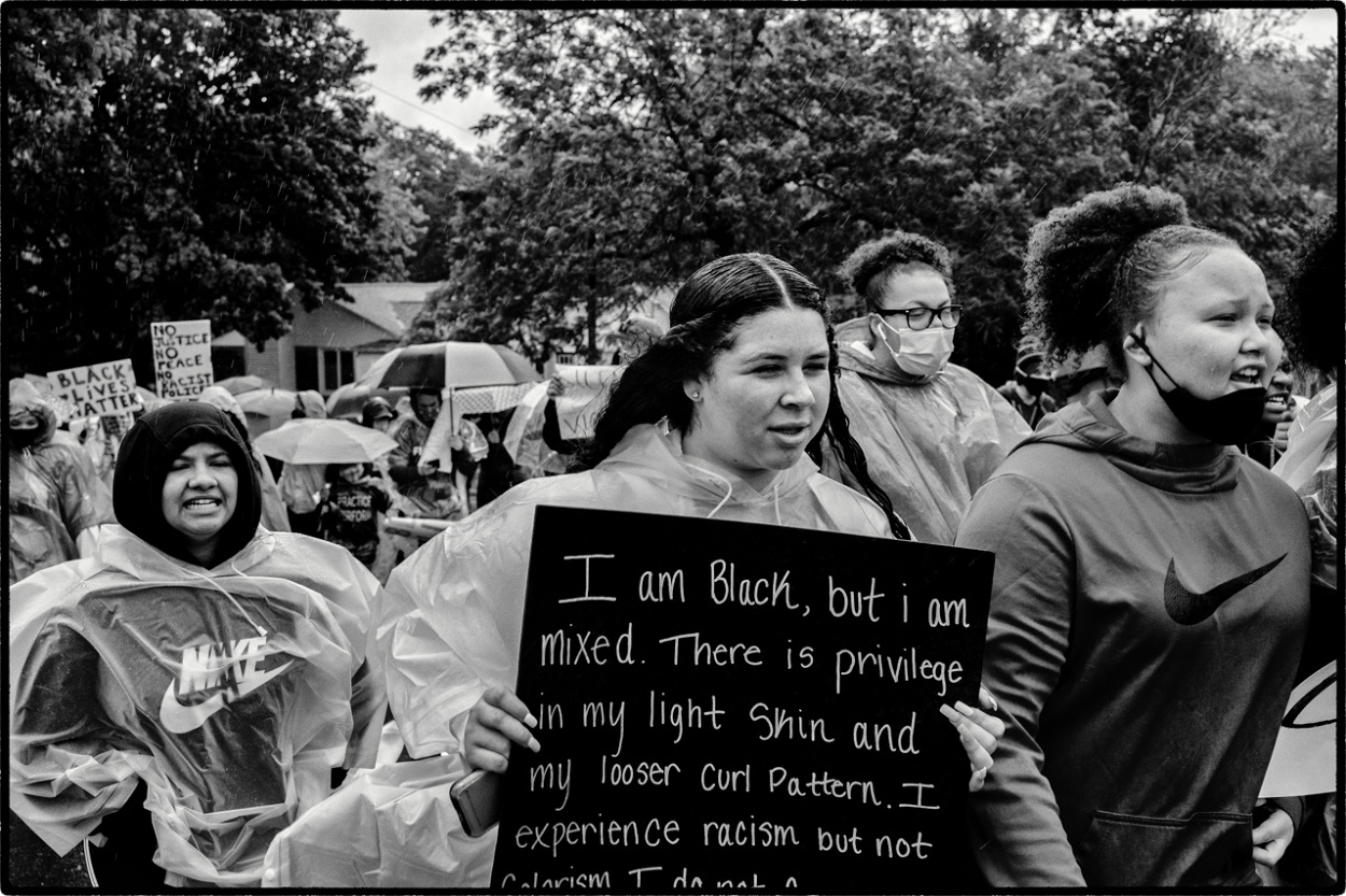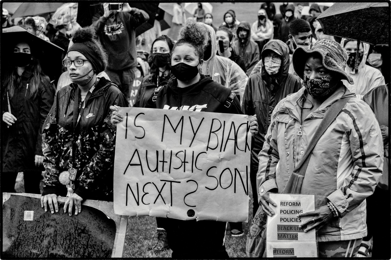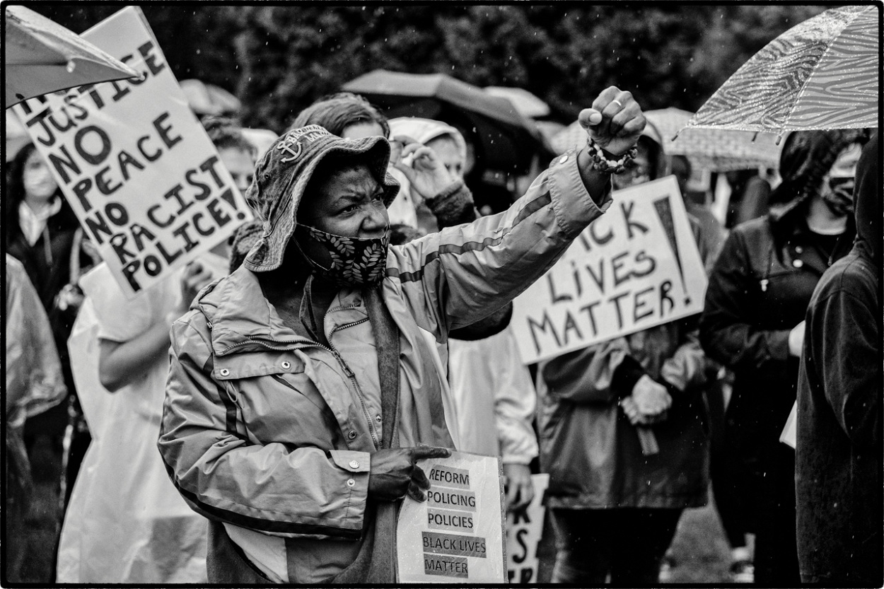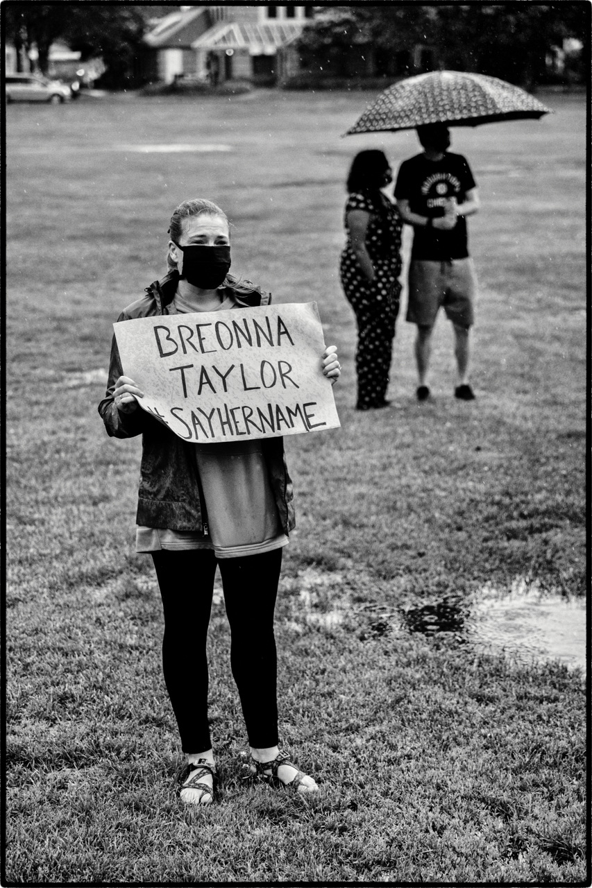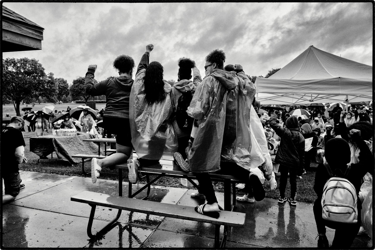 A post on Facebook earlier in the day said the protest walk was on rain or shine… Rain it was and walk they did! A crowd of several hundred gathered at the Monona Grove school district building and then proceeded to march down Nichols Road to Winnequah Park, where an eight minute 46 second moment of silence was held in remembrance of George Floyd and how long it took Derek Chauvin to murder Mr. Floyd on May 25th 2020 in Minneapolis, MN.