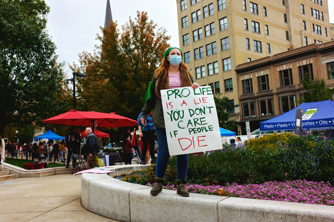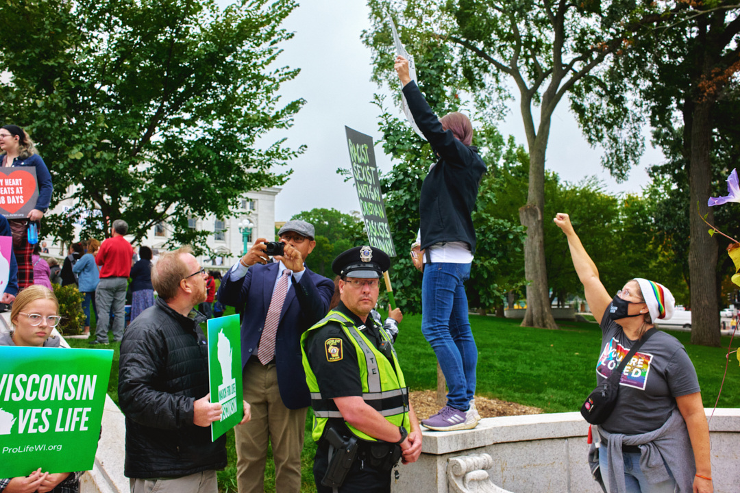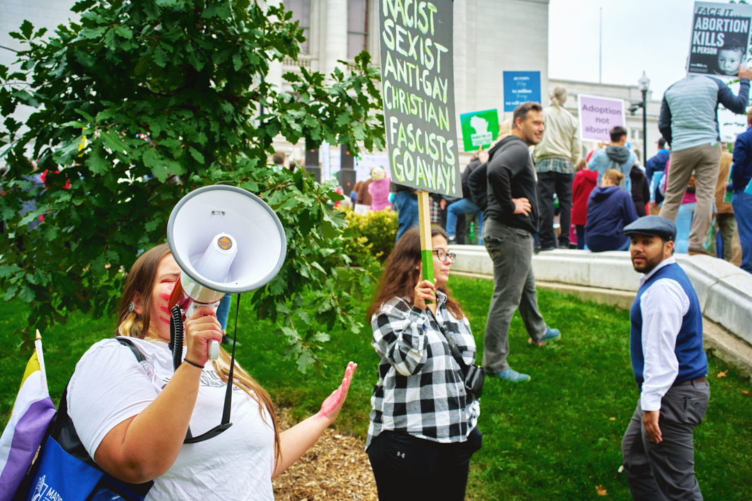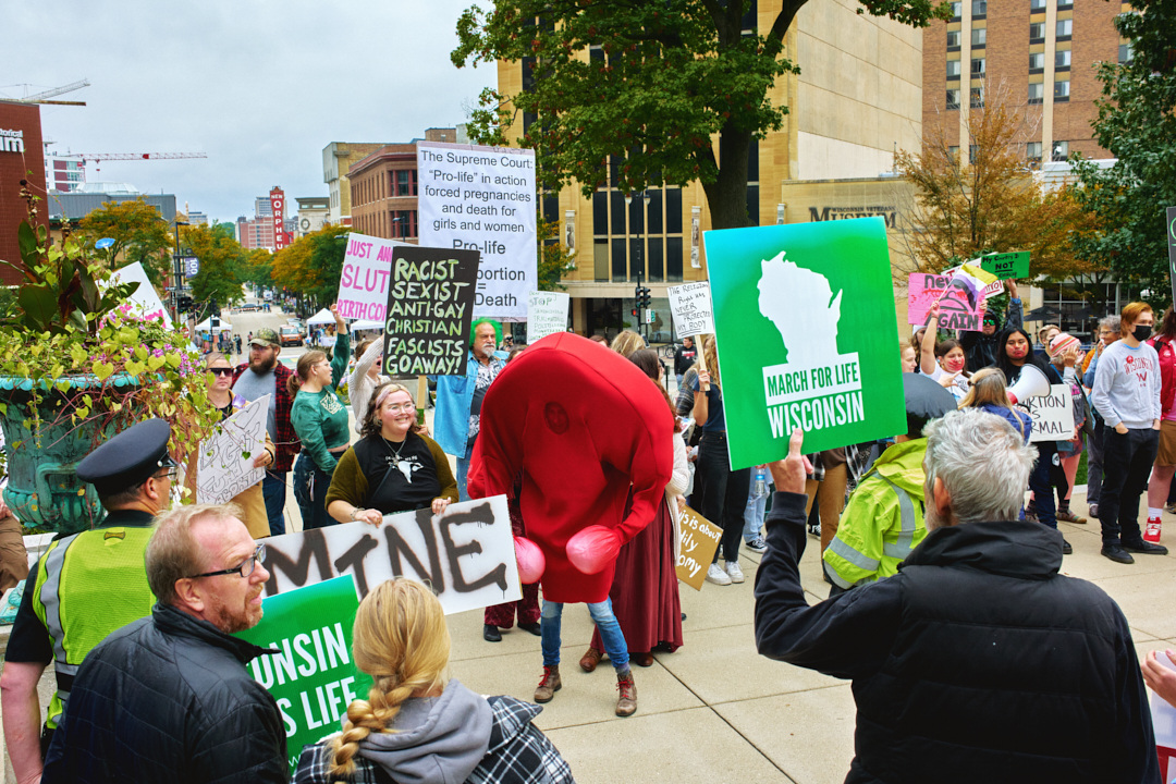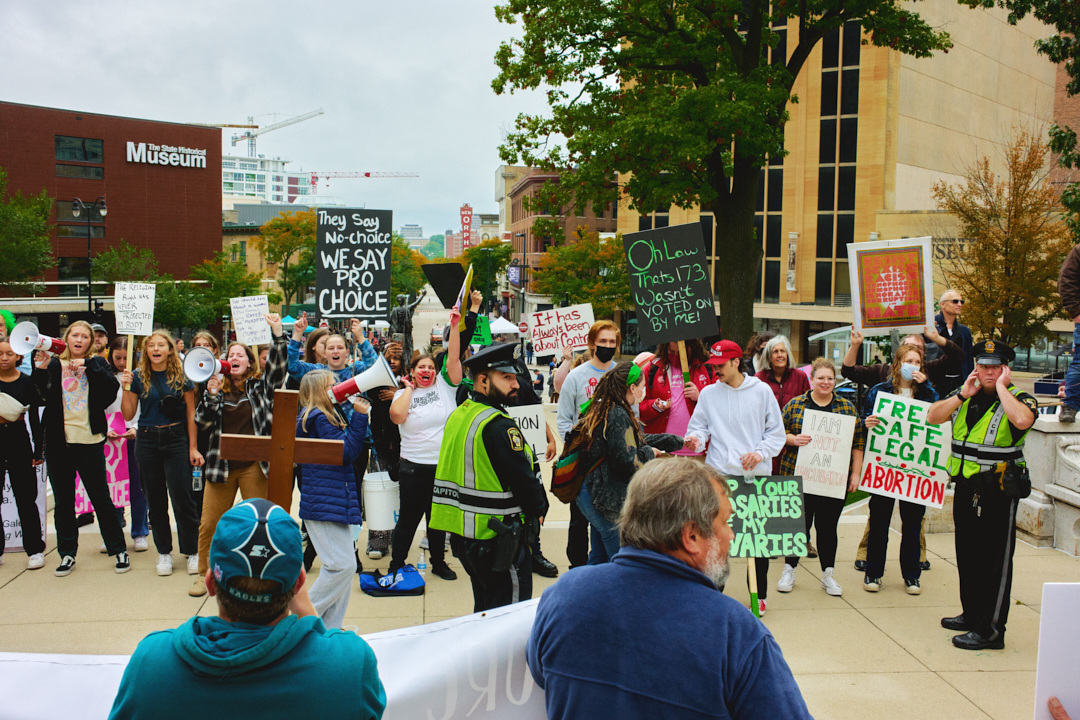 Madison Abortion and Reproductive Rights Coalition for Health (MARRCH) held a peaceful rally and counter-protest for abortion rights in response to the Wisconsin March for Life, sponsored by Pro-Life Wisconsin.