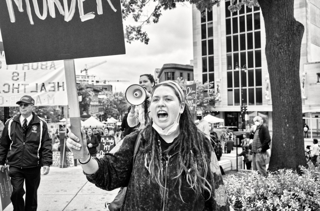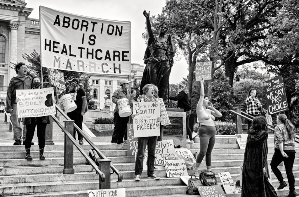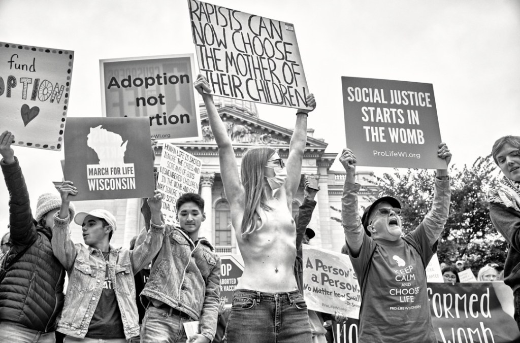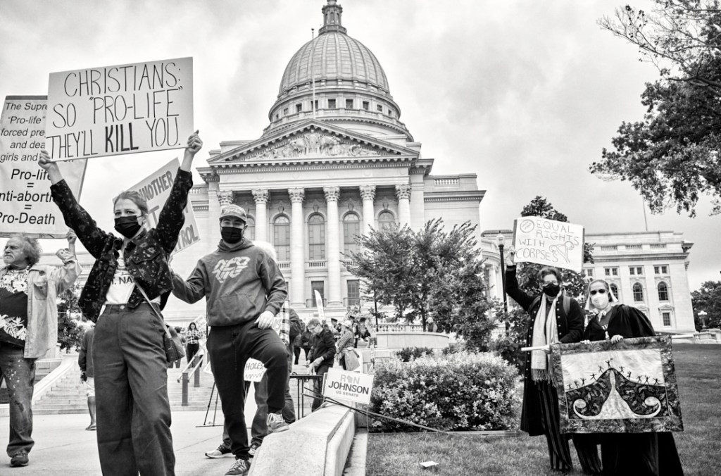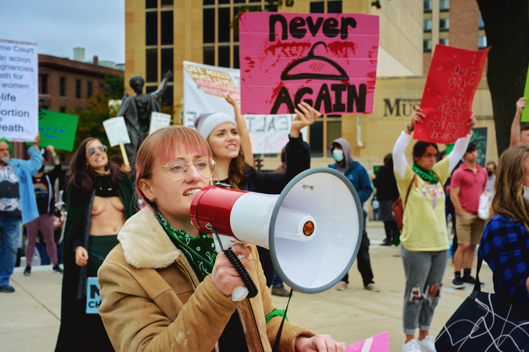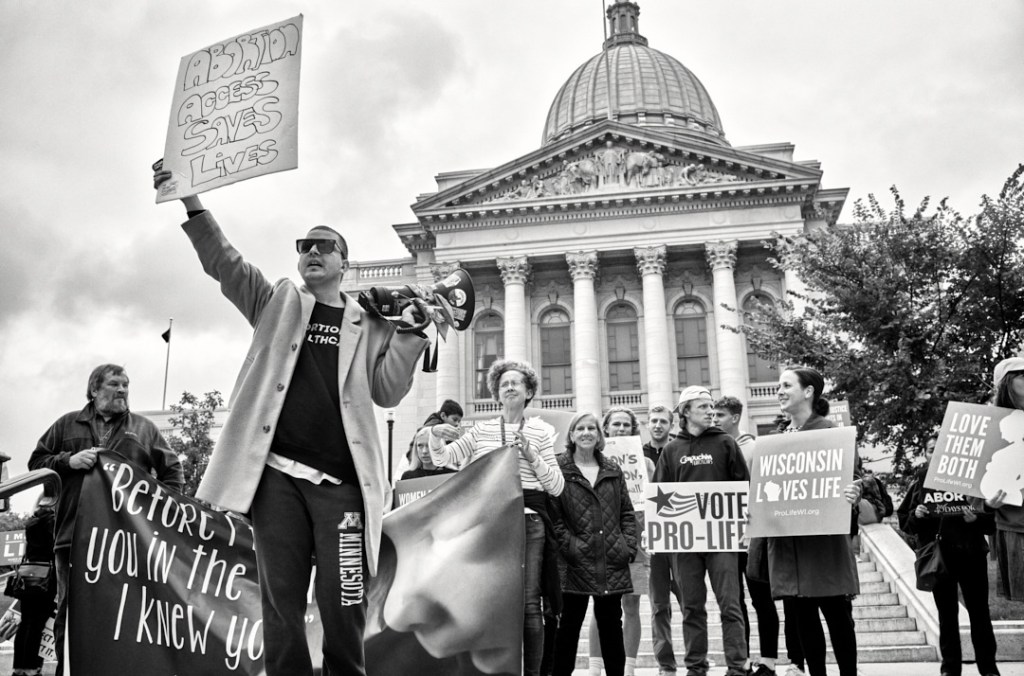 Madison Abortion and Reproductive Rights Coalition for Health (MARRCH) held a peaceful rally and counter-protest for abortion rights in response to the Wisconsin March for Life, sponsored by Pro-Life Wisconsin.