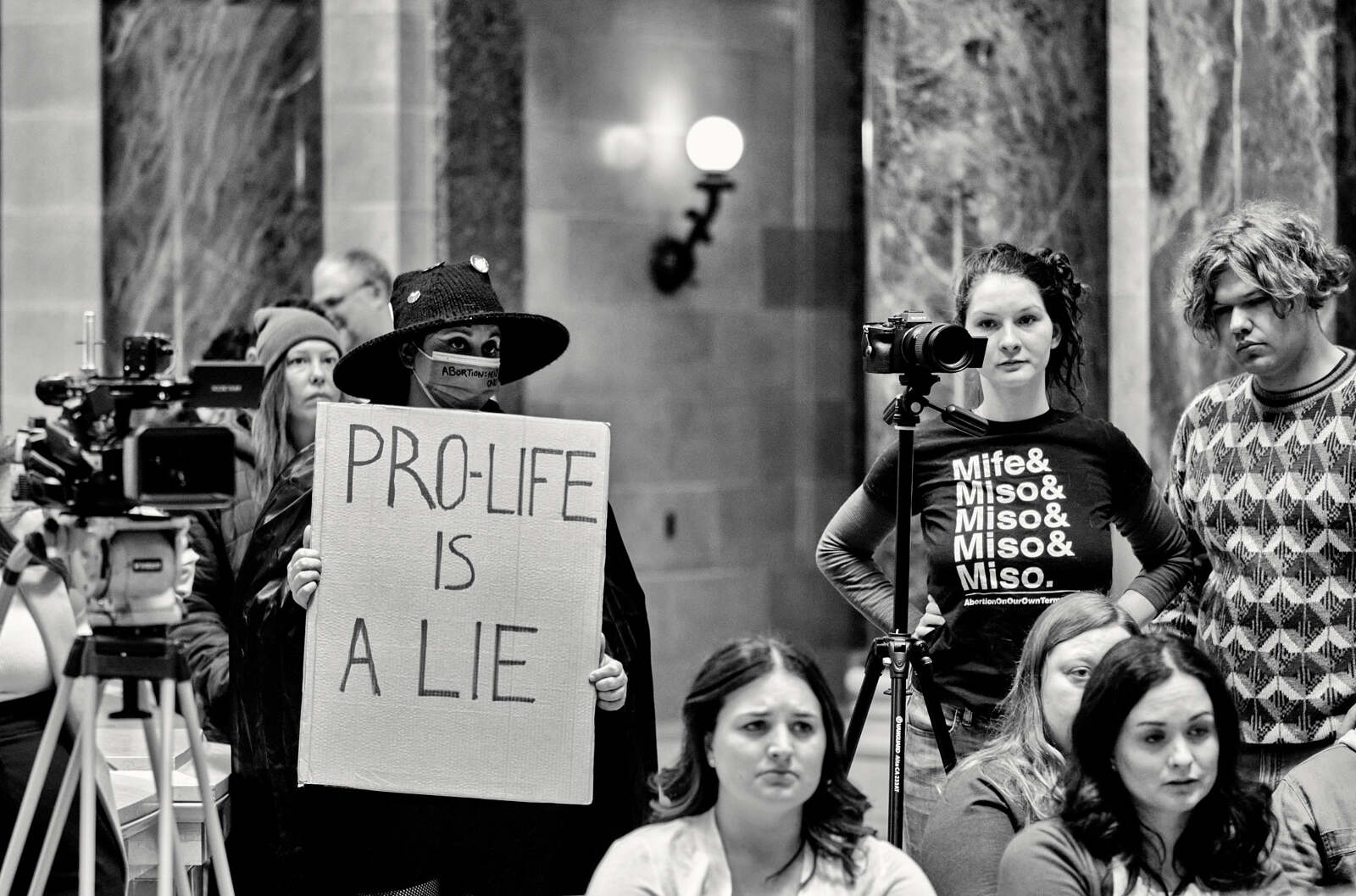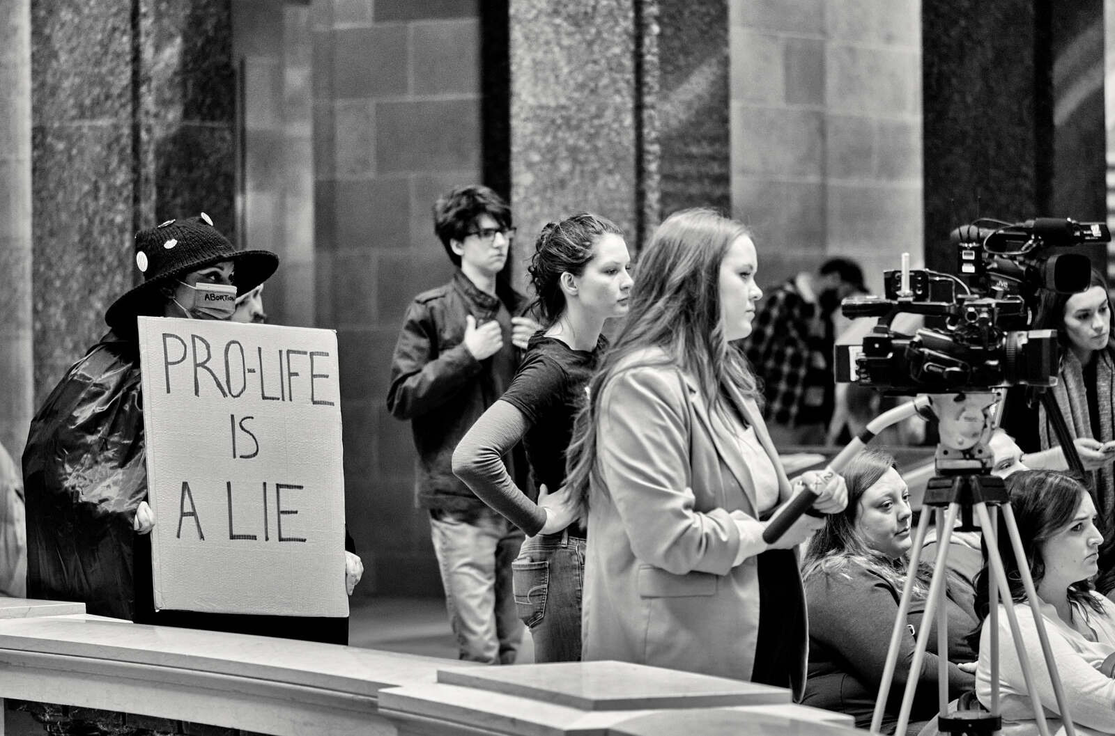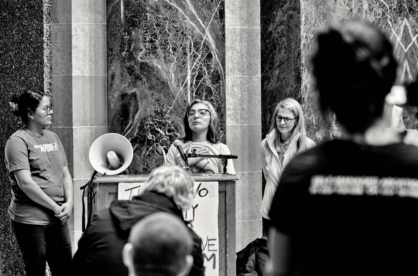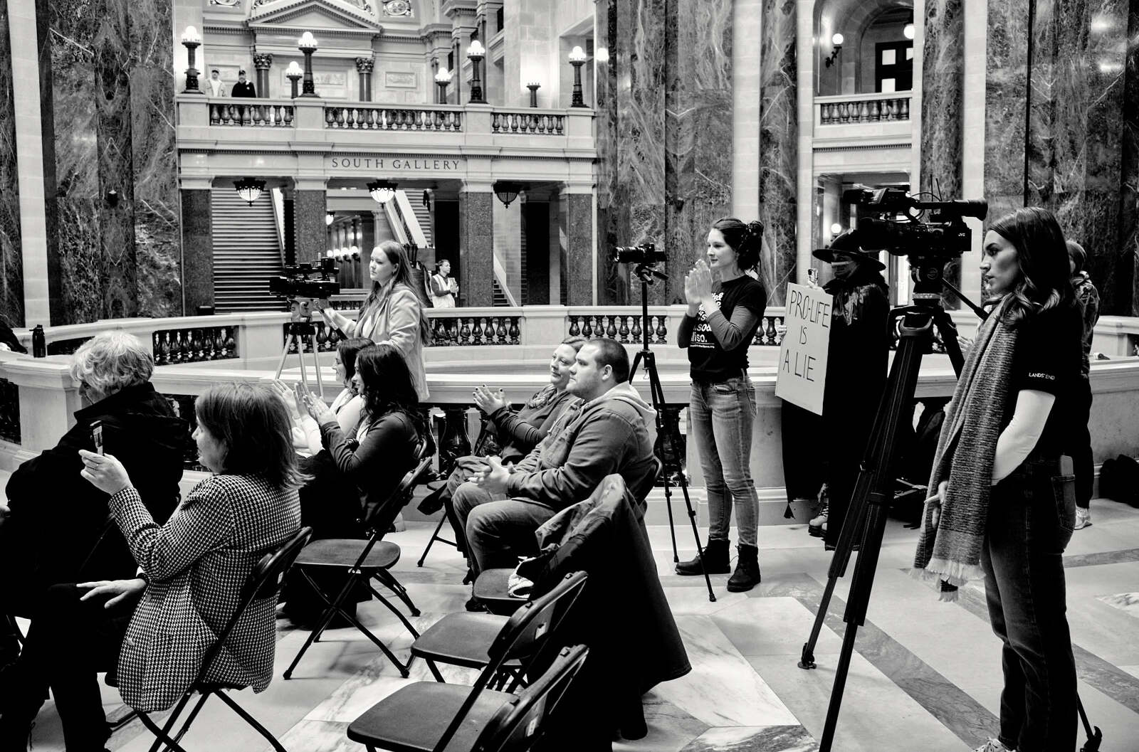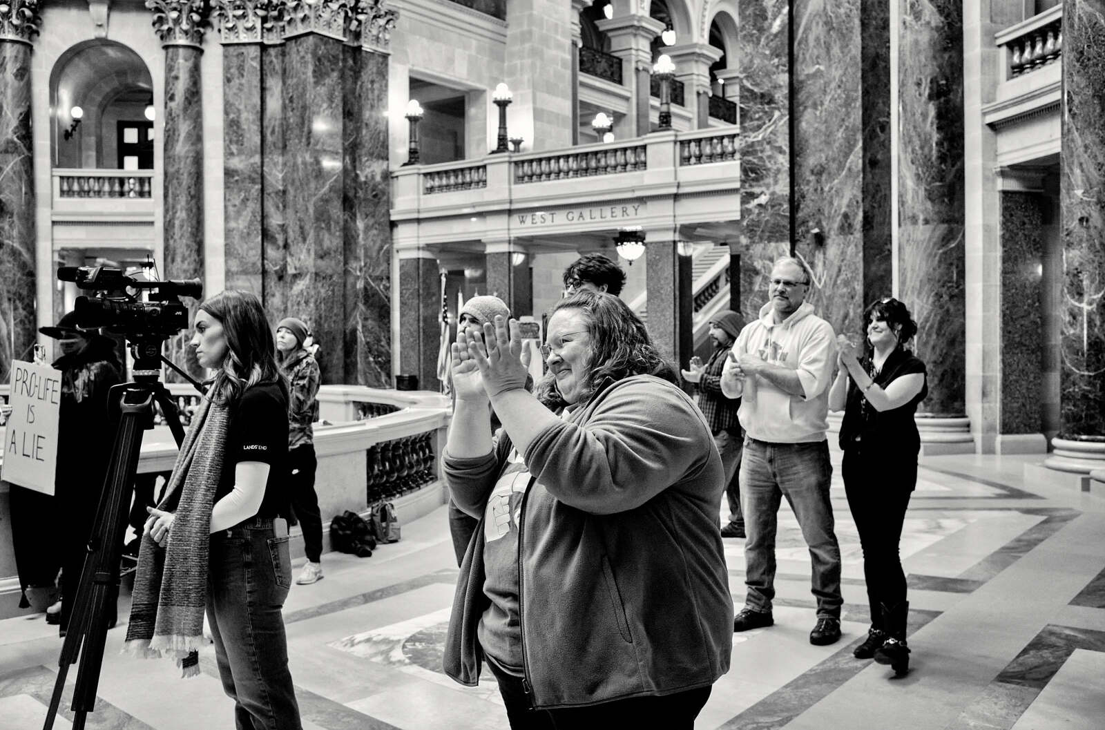 A small but committed group came out to support Madison Abortion & Reproductive Rights Coalition for Healthcare (MARRCH) as they delivered a press conference to highlight the importance of the upcoming spring primary Tuesday, February 21, 2023.