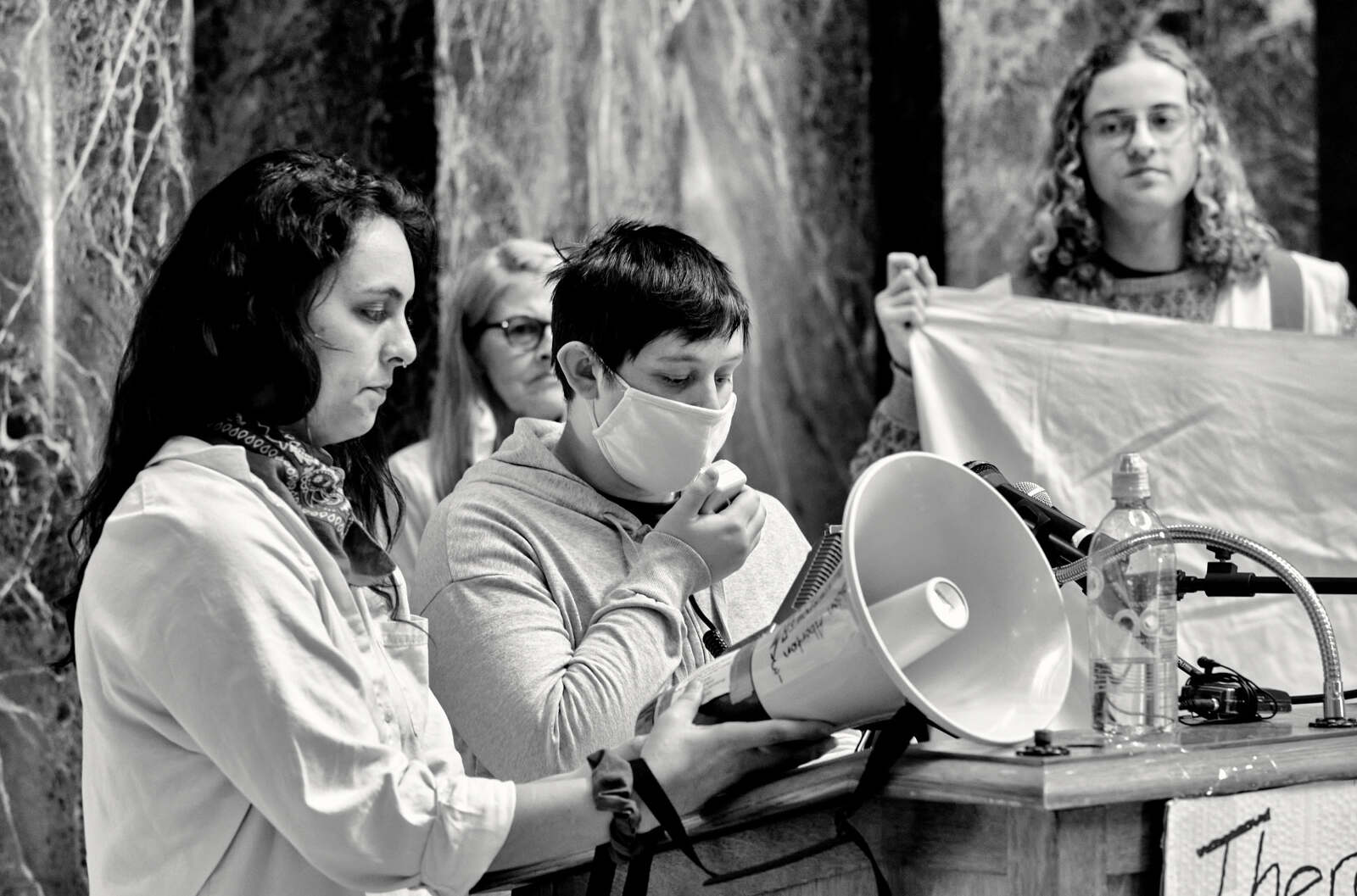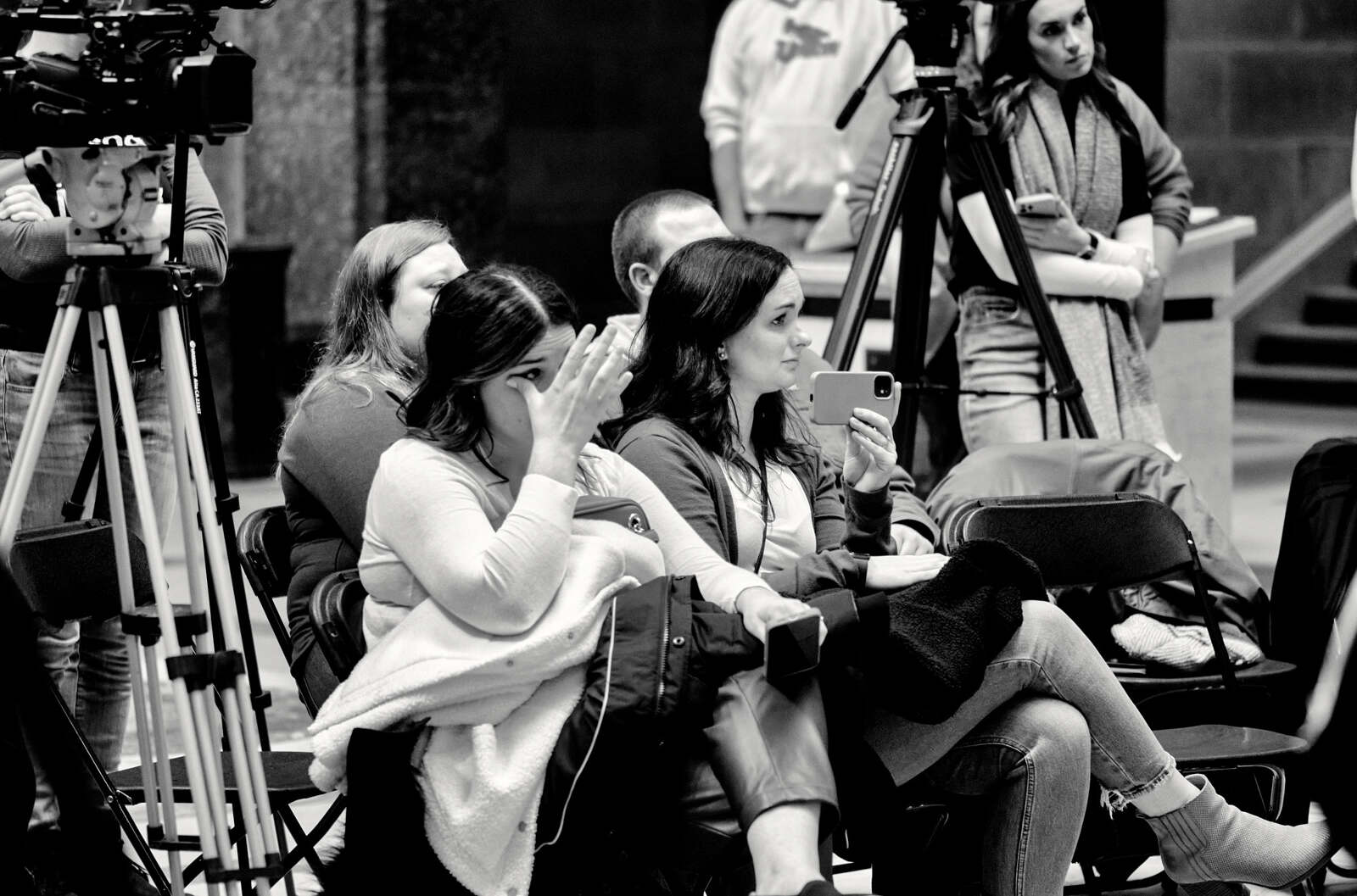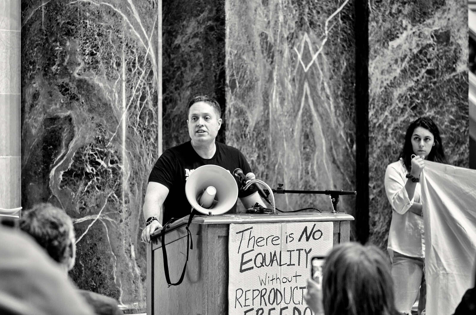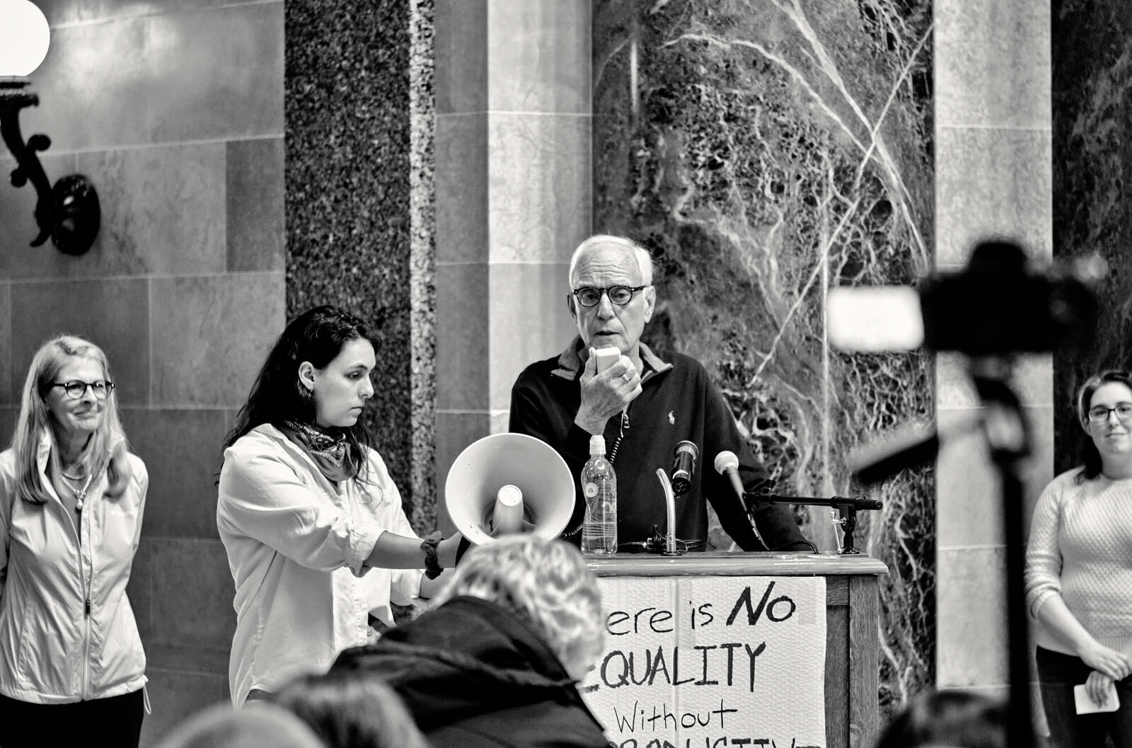 A small but committed group came out to support Madison Abortion & Reproductive Rights Coalition for Healthcare (MARRCH) as they delivered a press conference to highlight the importance of the upcoming spring primary Tuesday, February 21, 2023.