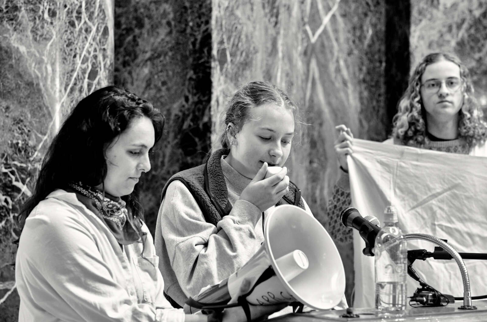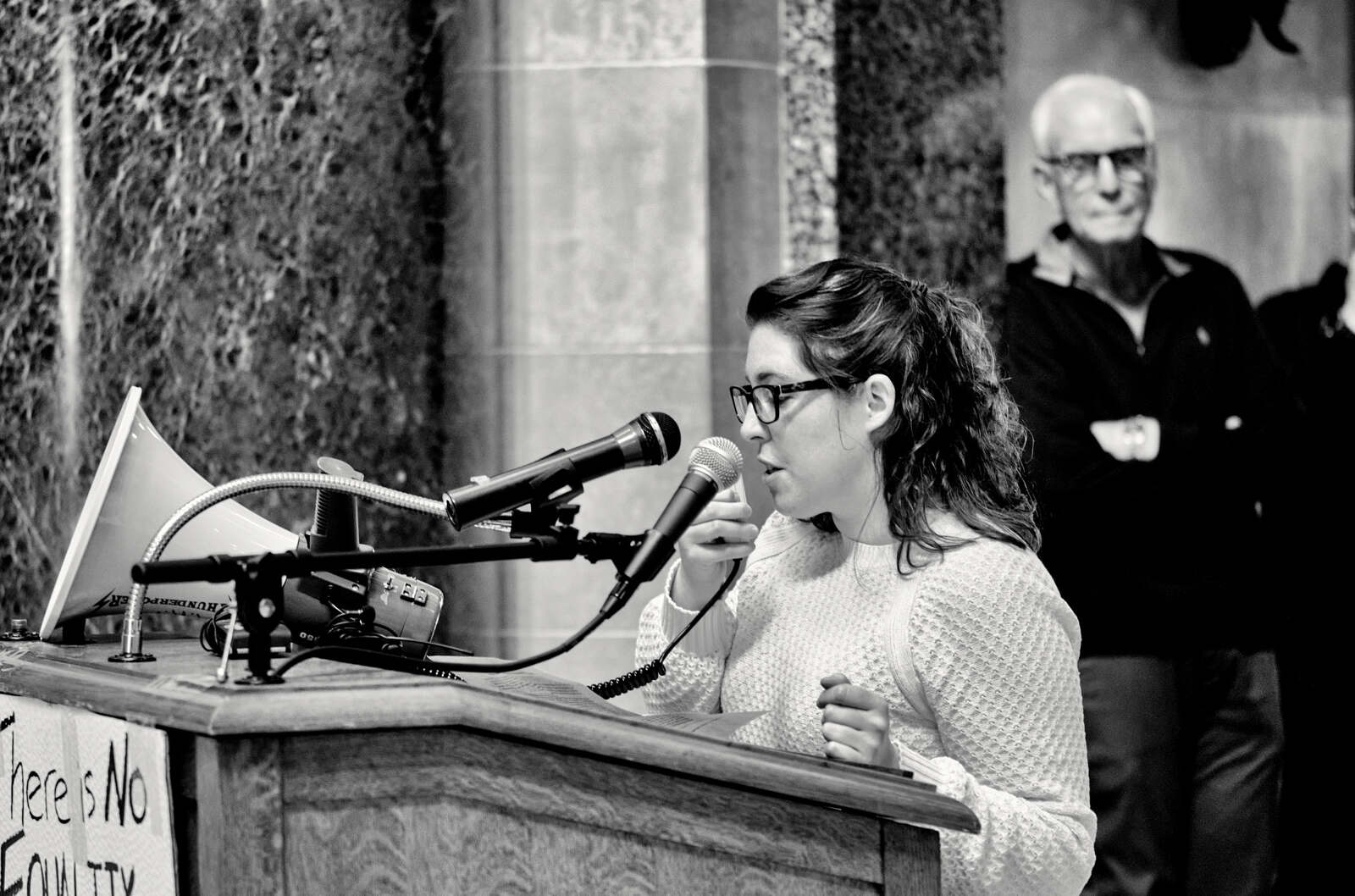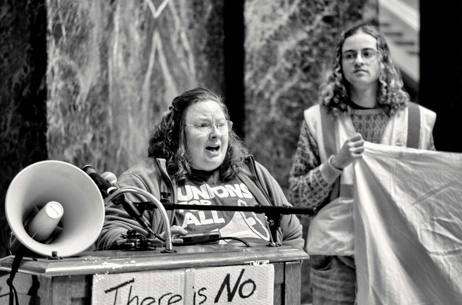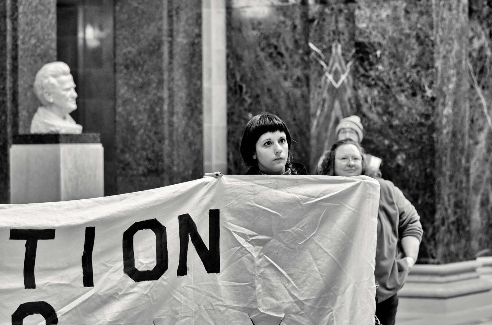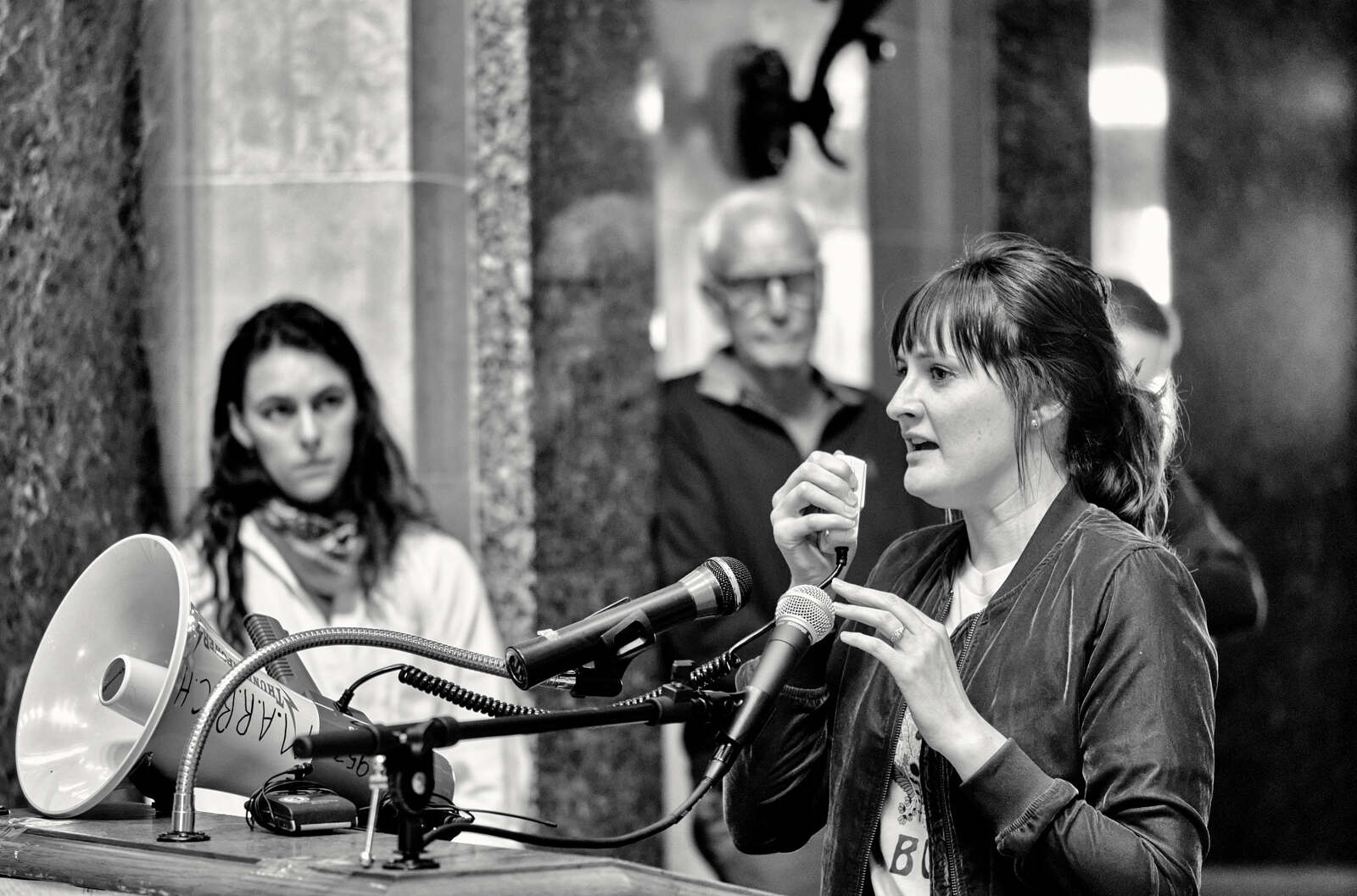 A small but committed group came out to support Madison Abortion & Reproductive Rights Coalition for Healthcare (MARRCH) as they delivered a press conference to highlight the importance of the upcoming spring primary Tuesday, February 21, 2023.