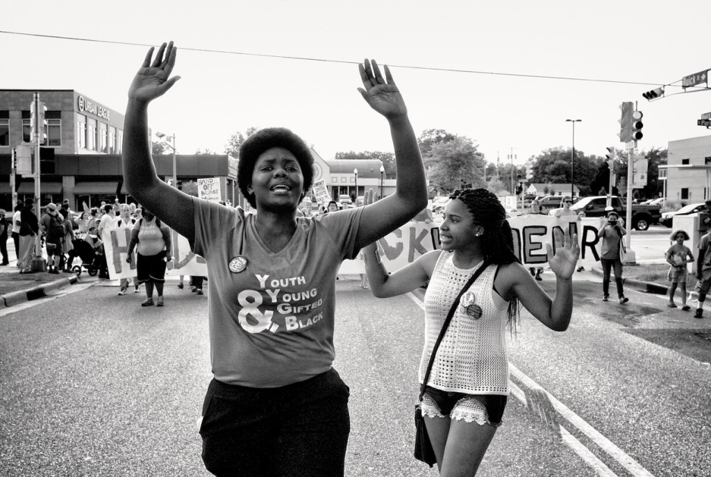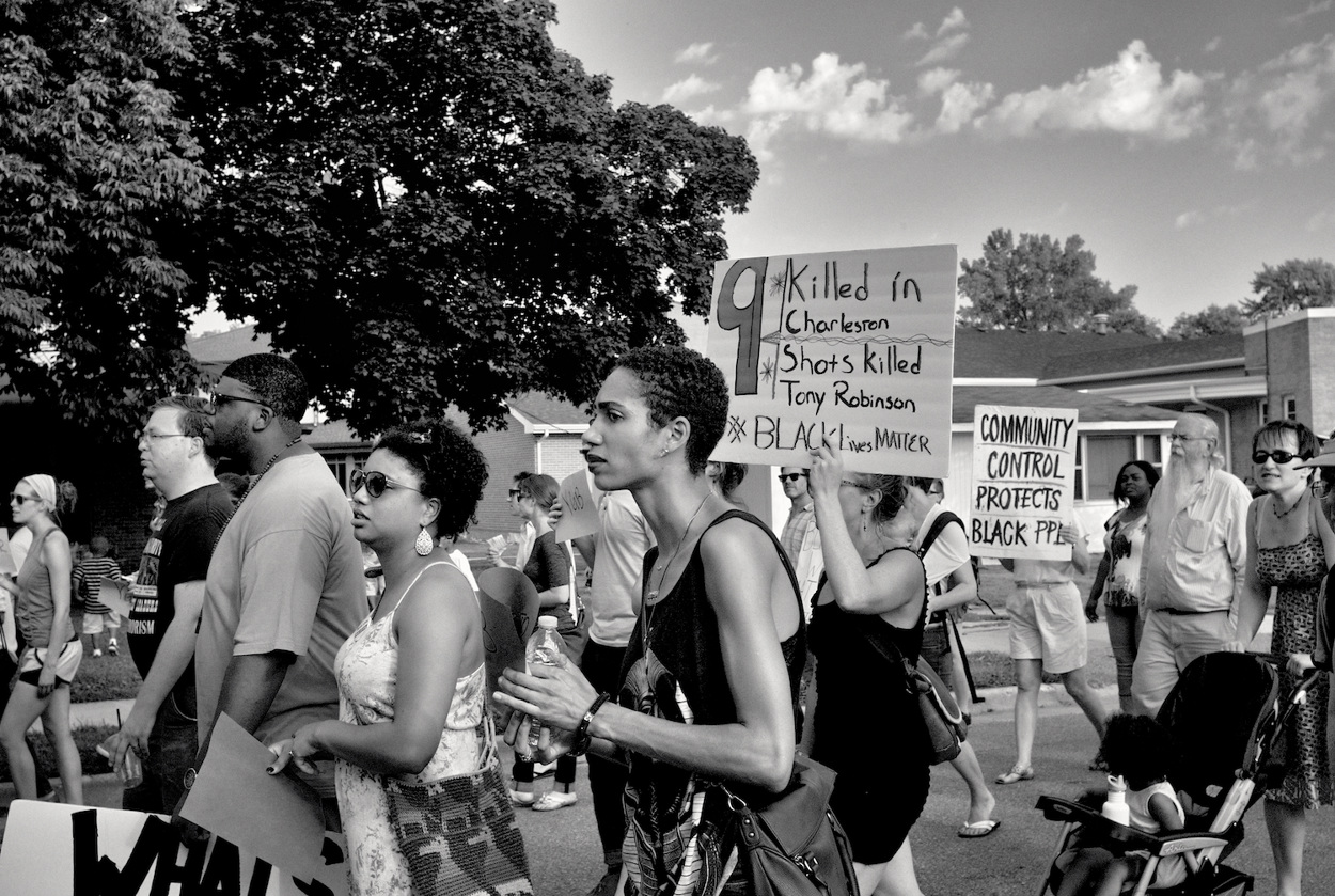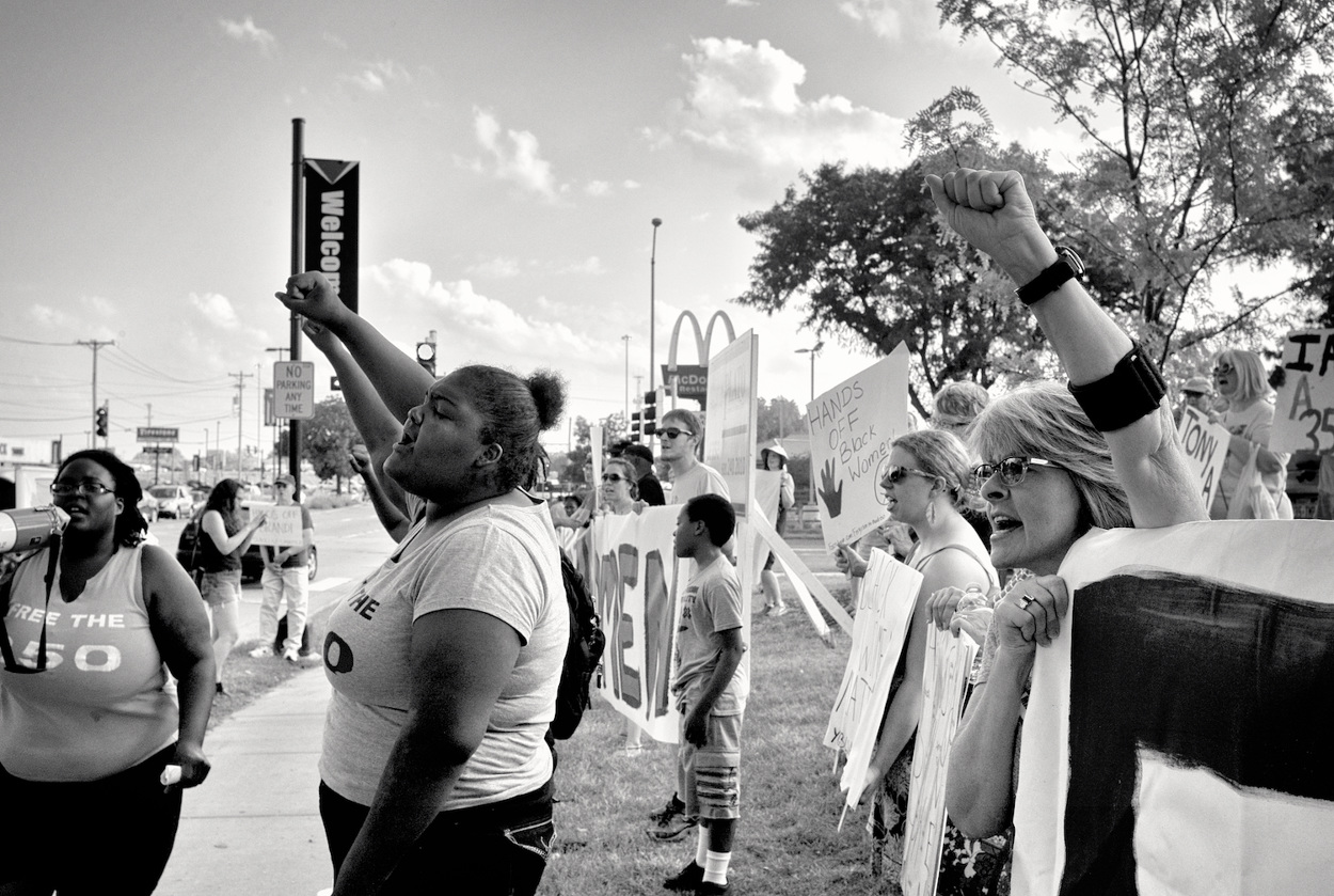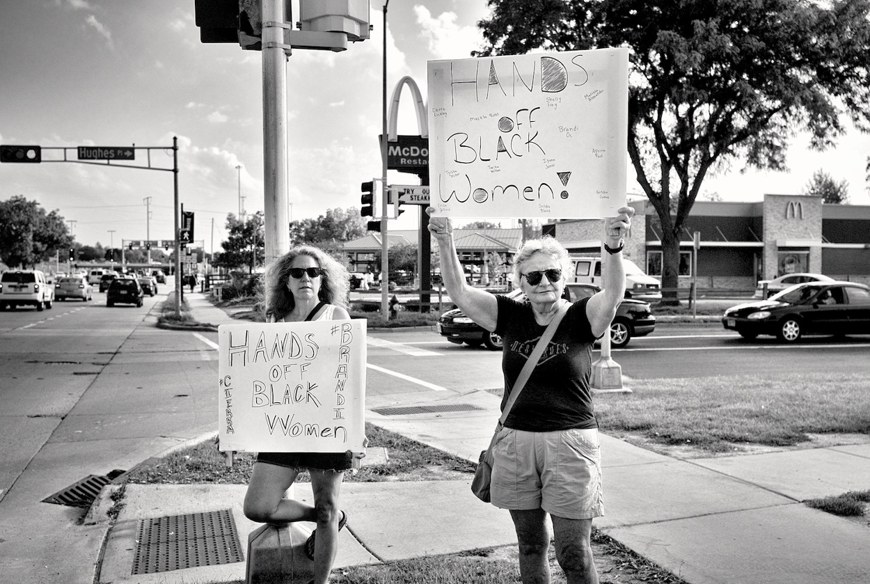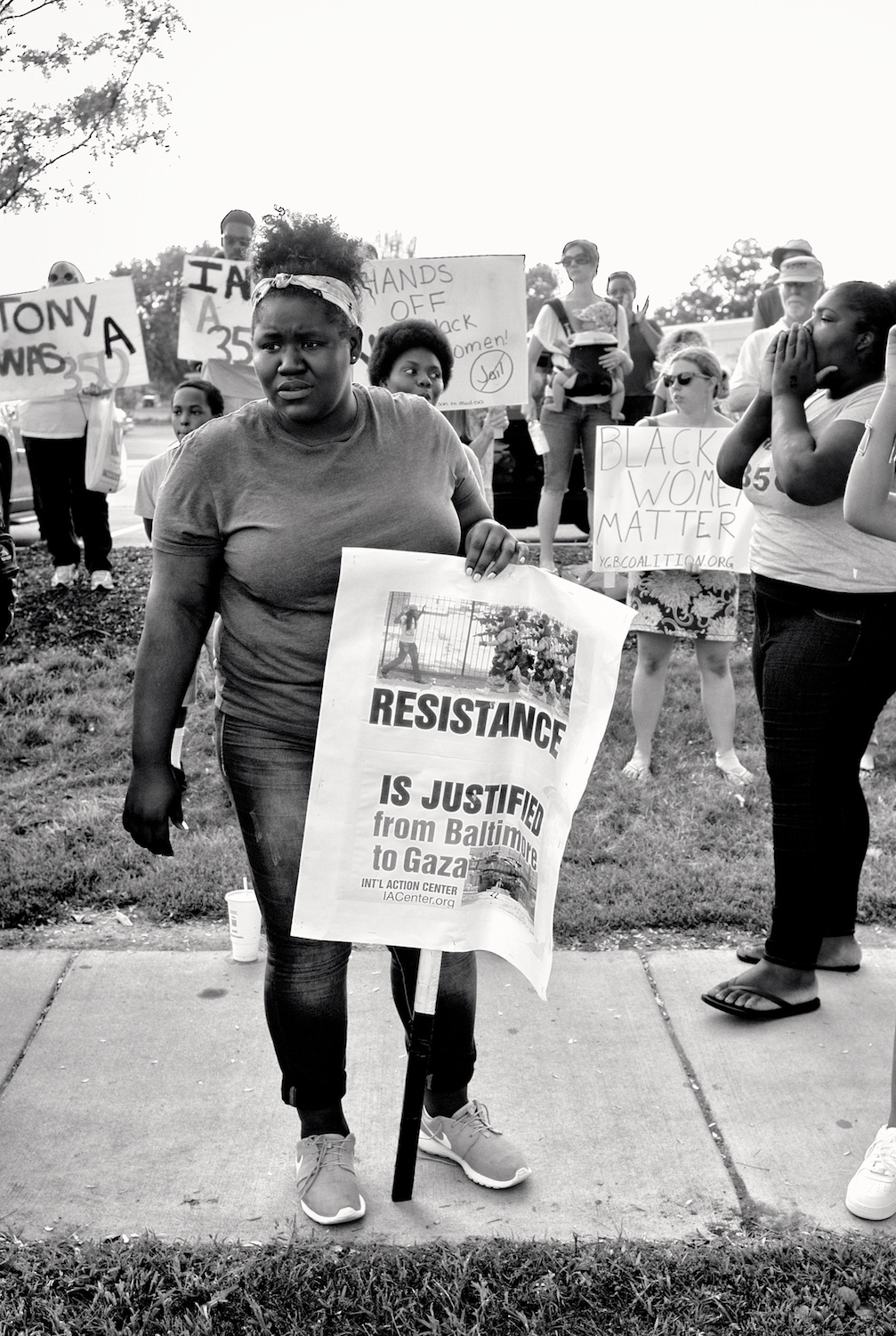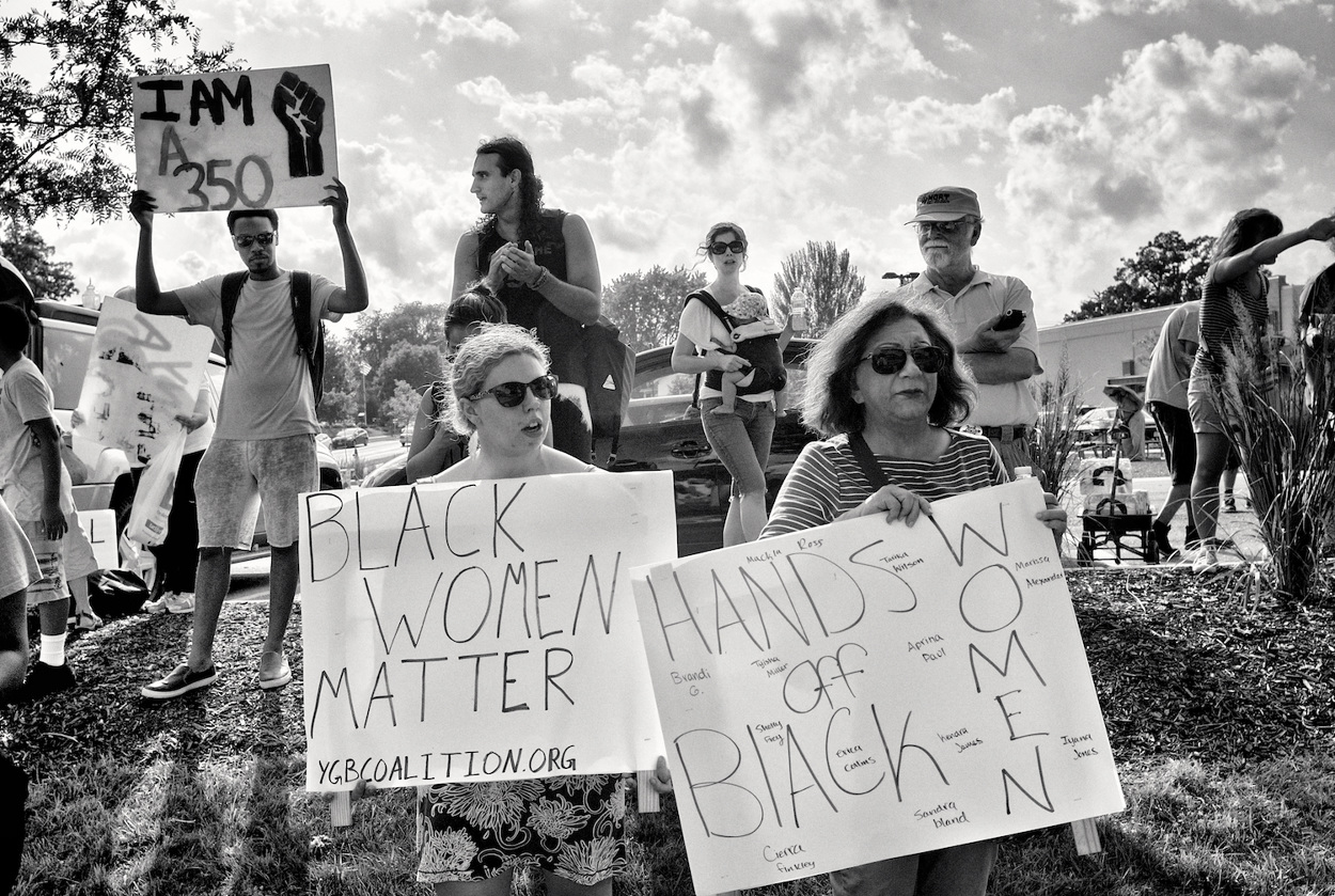 Images captured at a protest to support Brandi Grayson, an activist with the Young Gifted and Black Coalition.