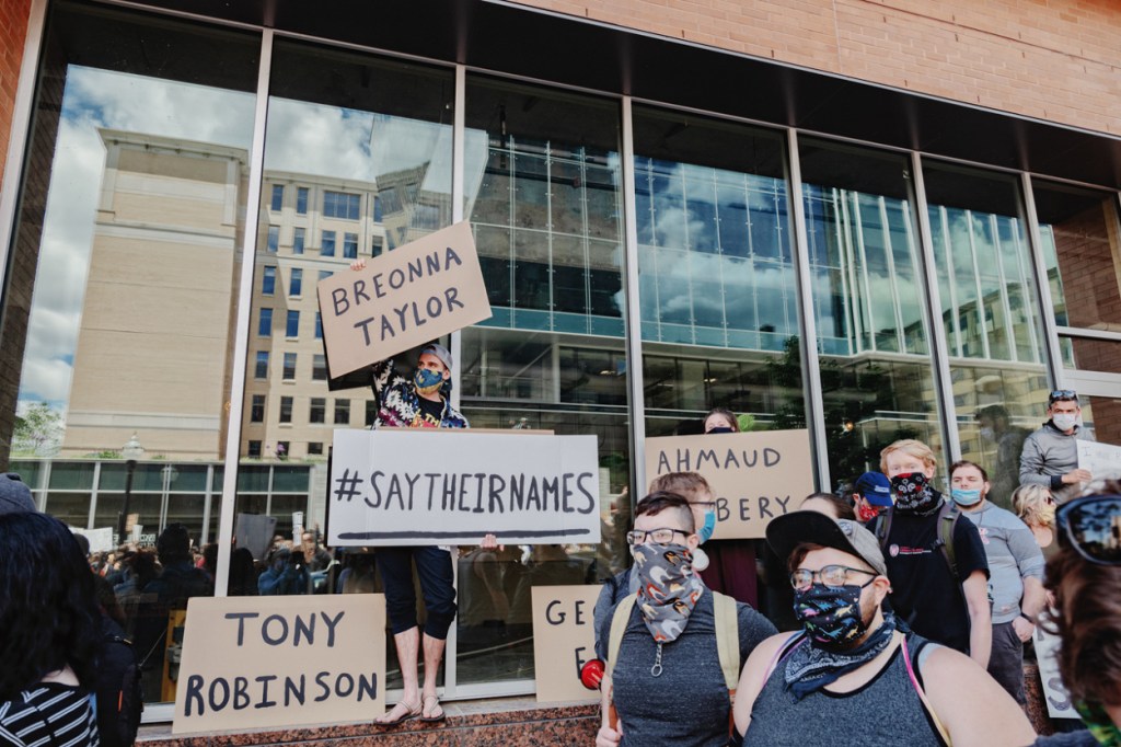 Protest in response to the murder of George Floyd by Minneapolis, MN police officer, Derek Chauvin, while three other police officers did nothing to stop the murder.