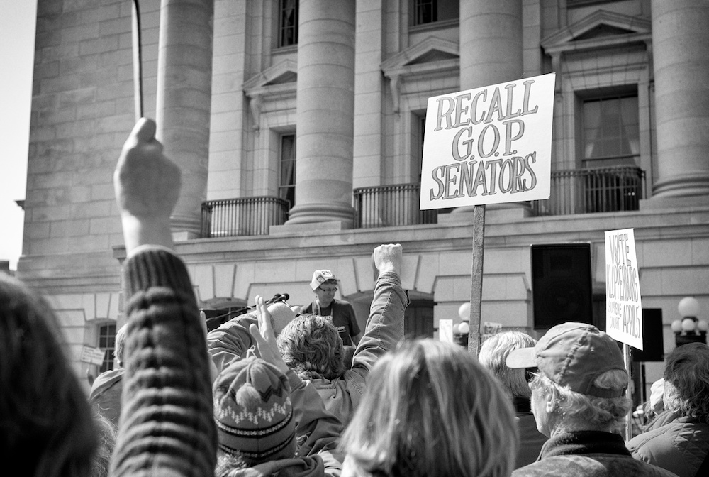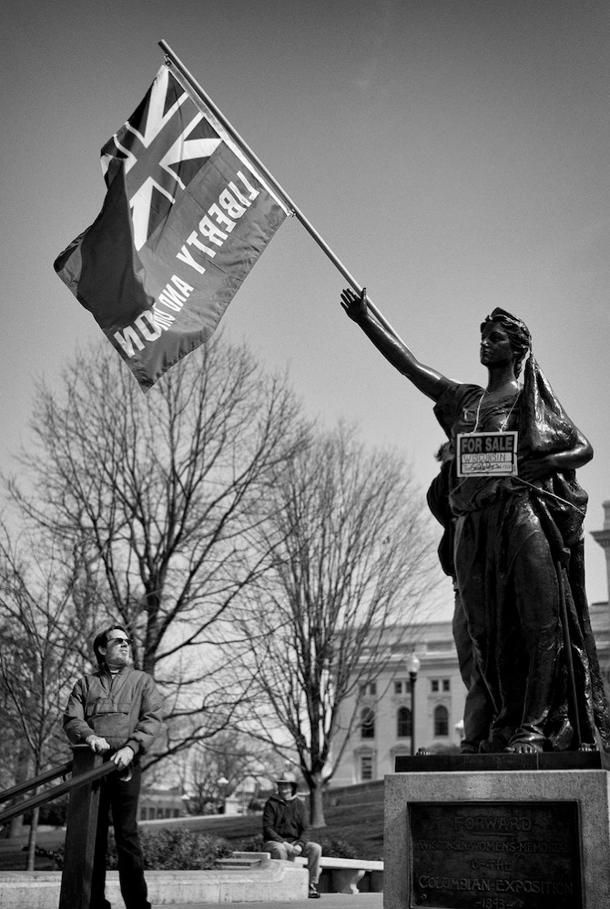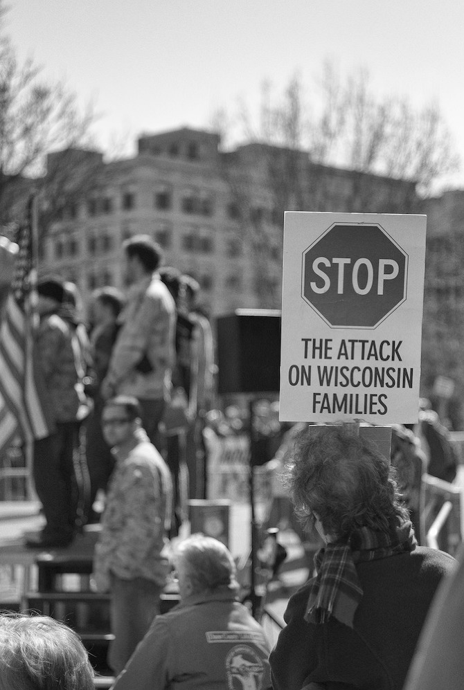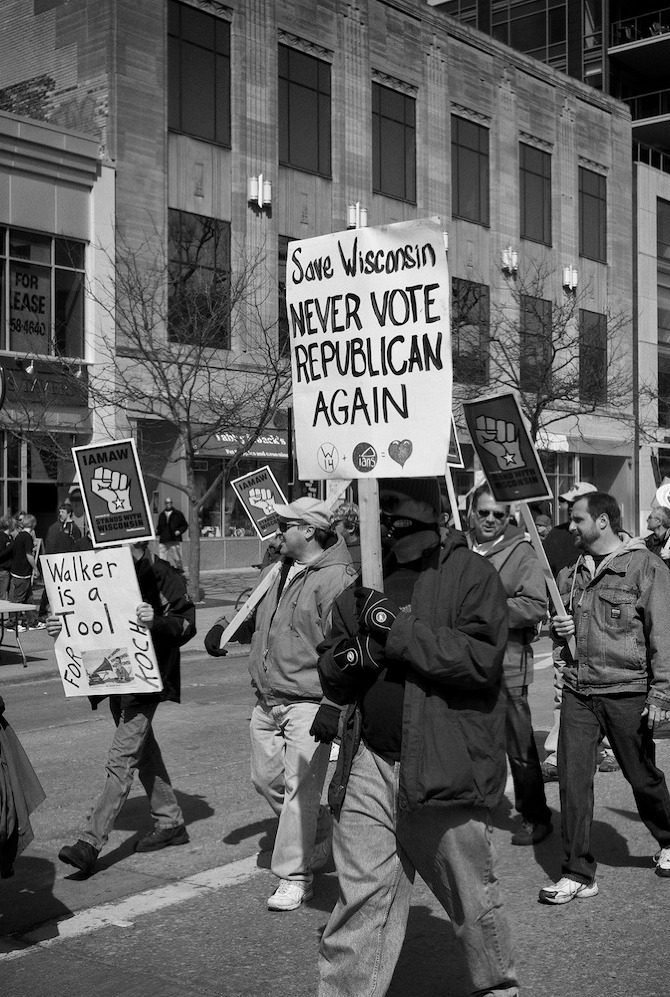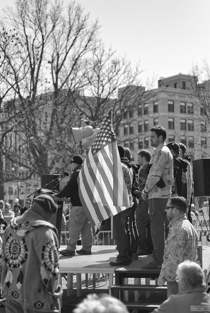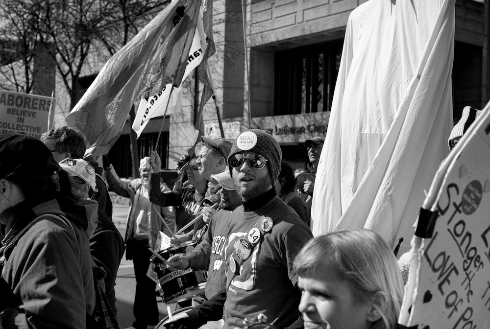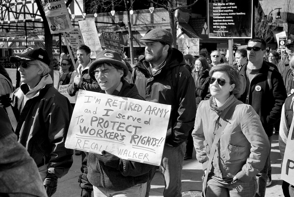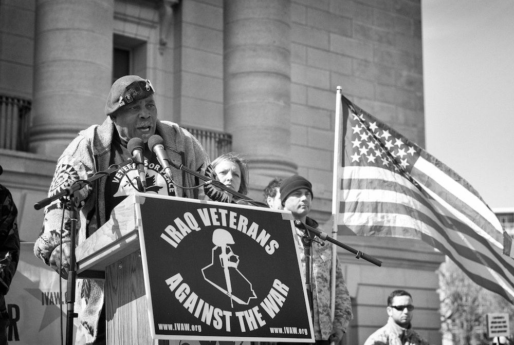 A protest rally and march against war. People gathered at UW-Madison Library Mall and marched up State Street to the Wisconsin State Capital.